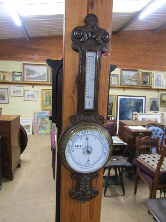 ANEROID WALL BAROMETER WITH THERMOMETER GAUGE