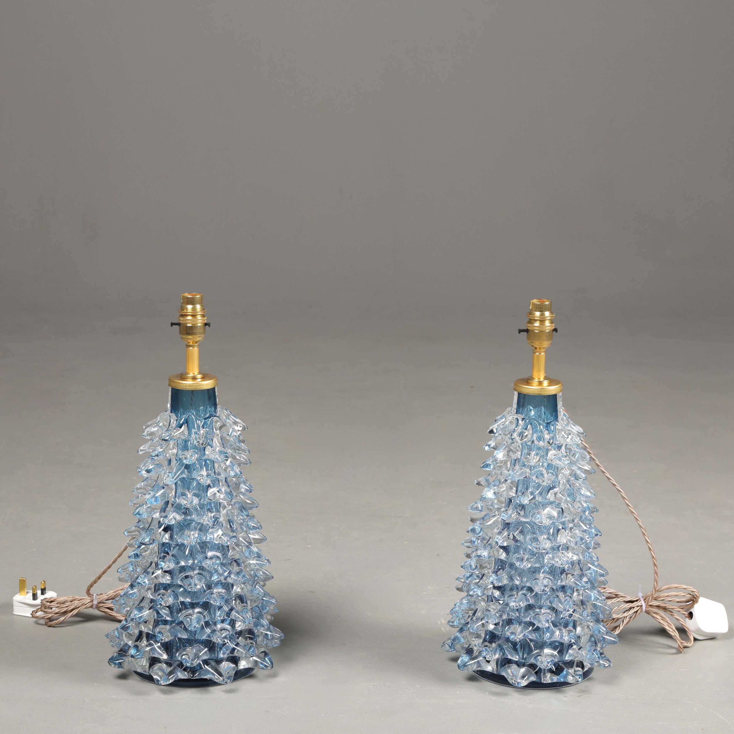 MURANO ROSTRATO GLASS TABLE LAMPS, A PAIR. 45cm H approx. (2).