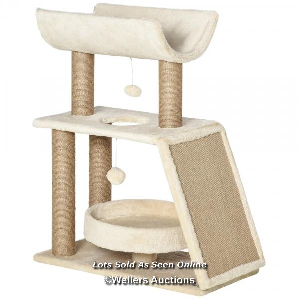 RRP: 39.99 - PAWHUT CAT TREE TOWER, WITH SCRATCHING POSTS, PAD, BED, PERCH, TOY BALL - LIGHT BROWN / 1 BOX