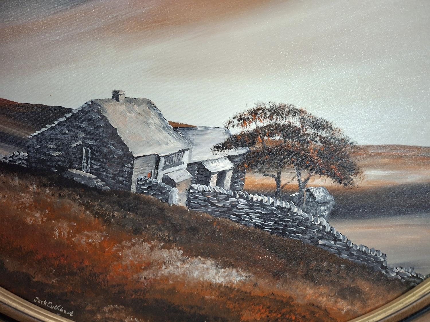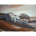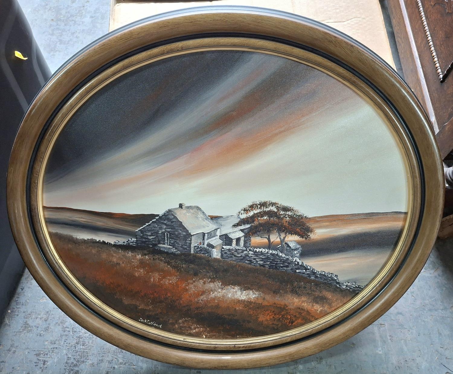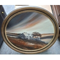 Terry Withens, oval oil on board painting of "Top Withens" (Wuthering Heights), wood framed