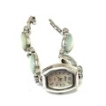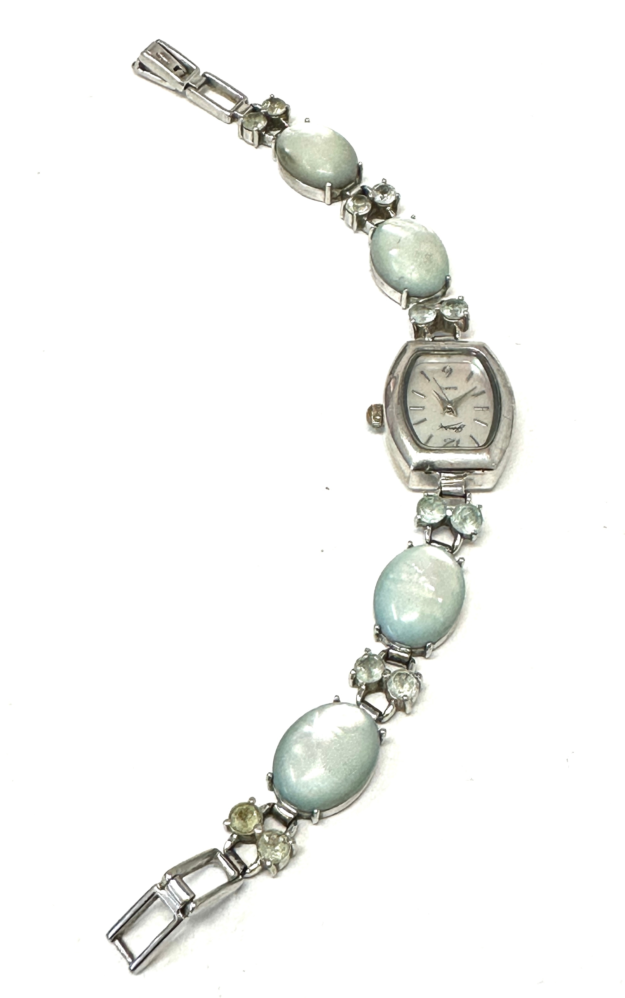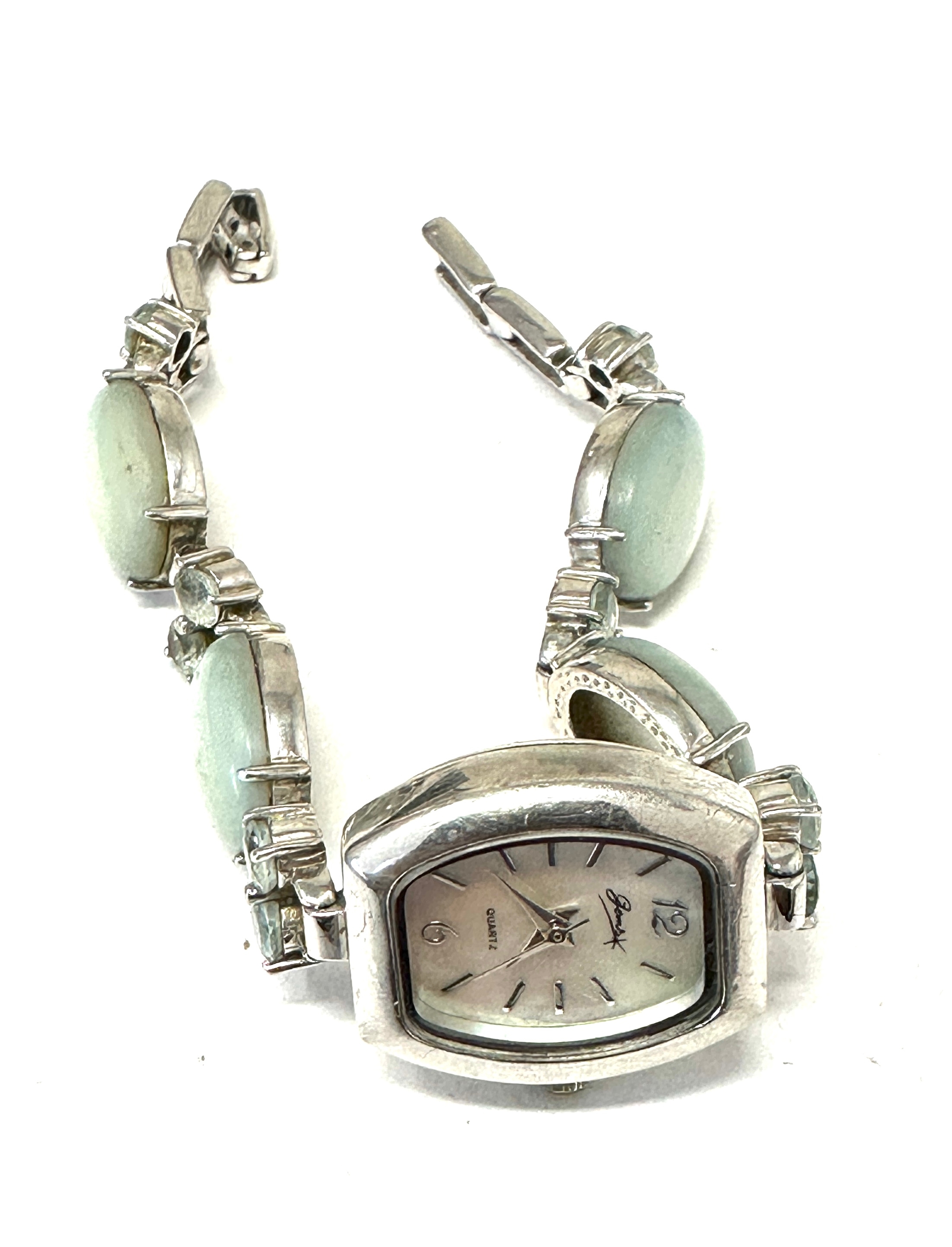 GEMS TV 925 Sterling Silver Gem Stone Wrist watch Mother of Pearl Face quartz movement not ticking needs new battery weight 32g