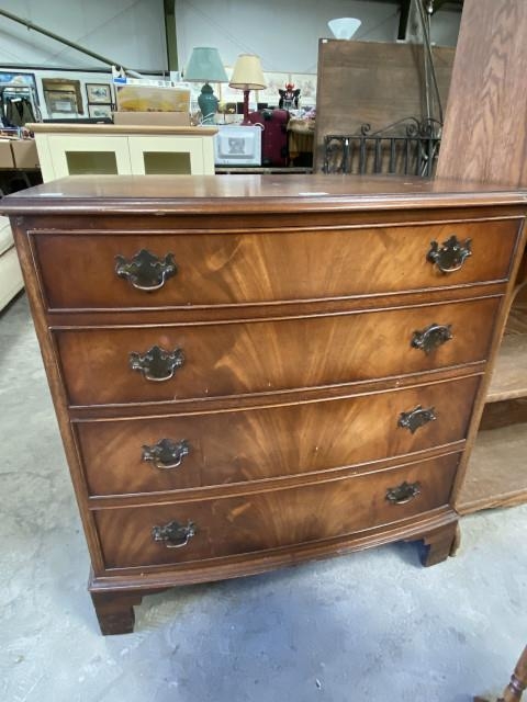 Mahogany Reprodux bow fronted 4 drawer chest (86H 78W 50D cm)