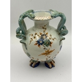 A Polychrome Glazed Earthenware Vase with Serpent Handles and Claw Feet