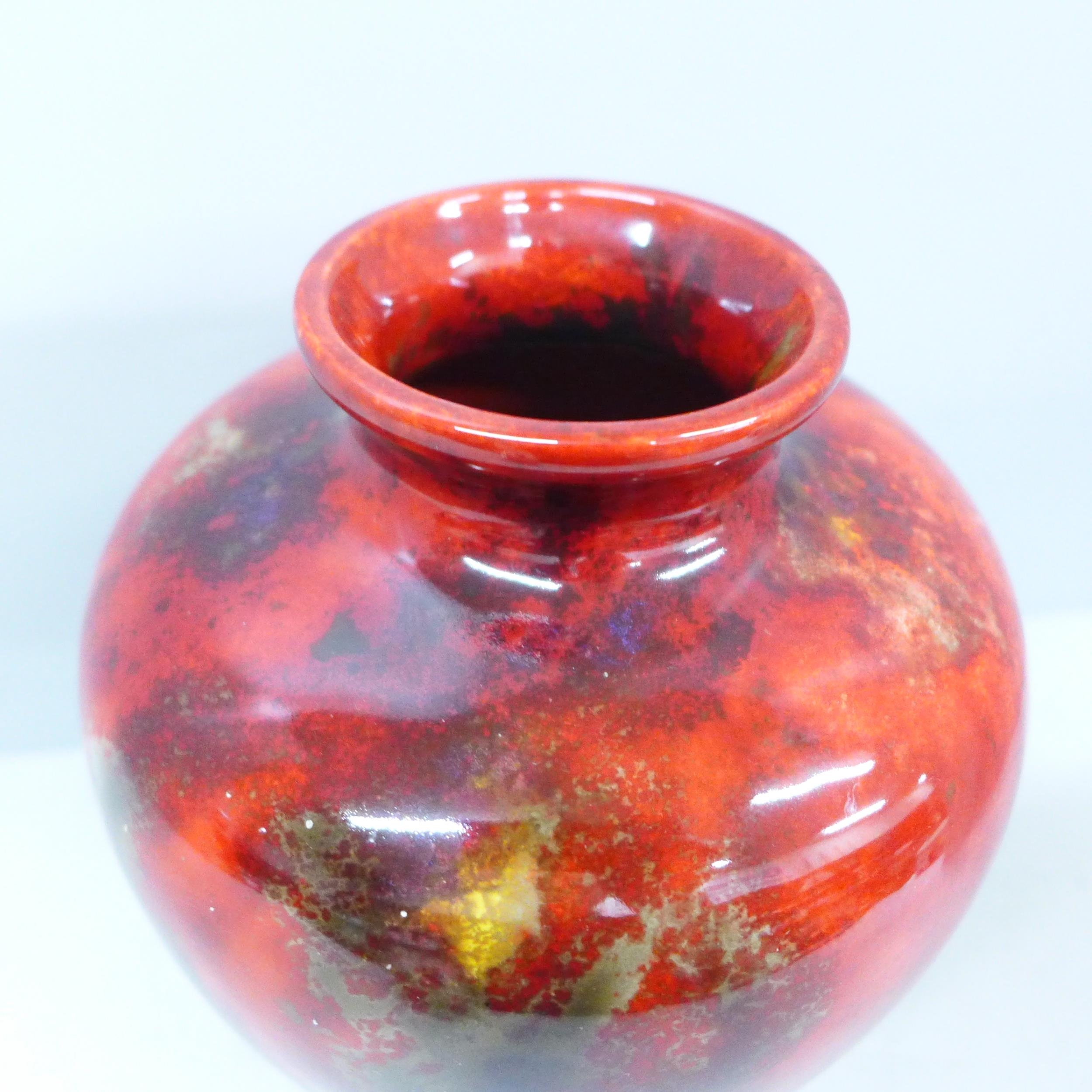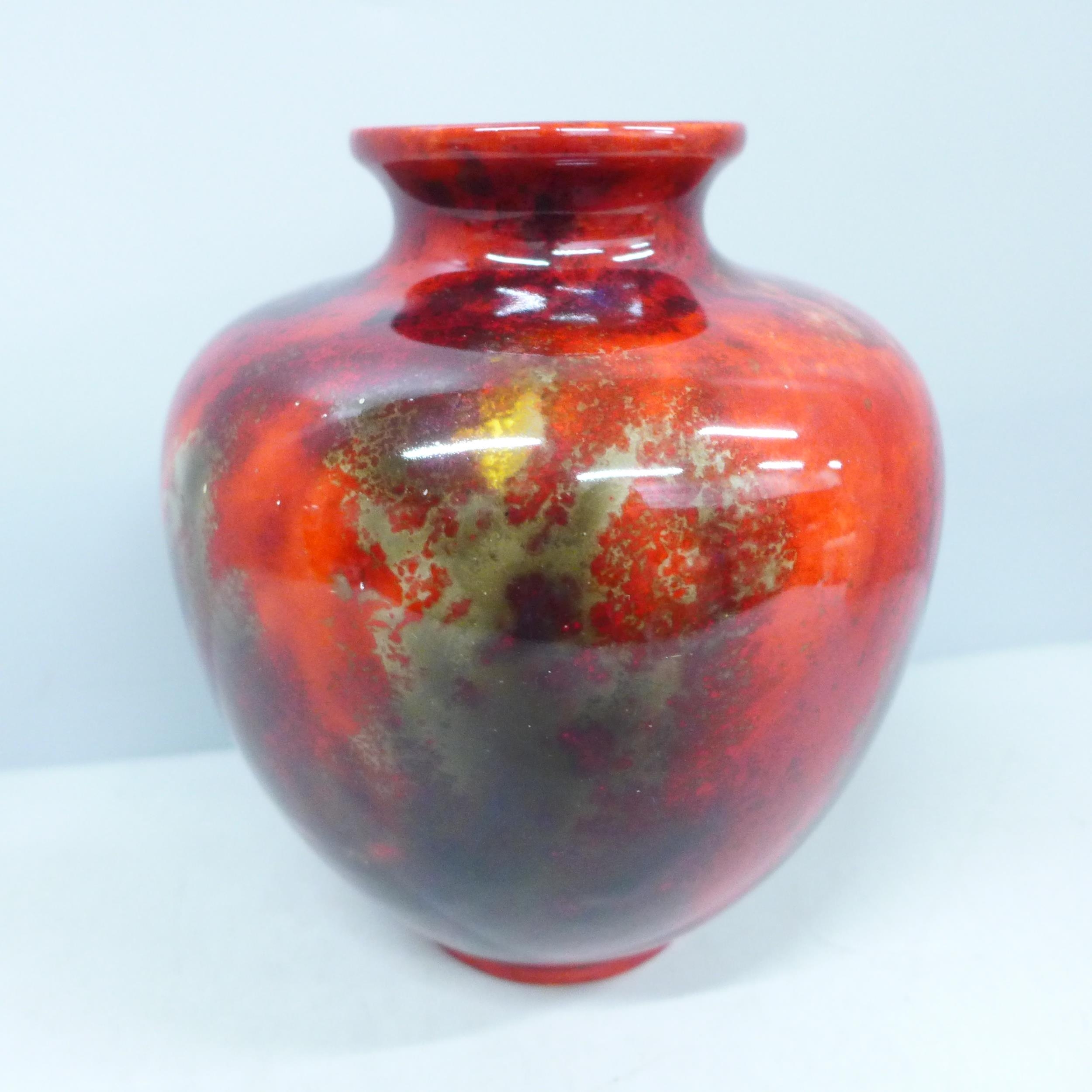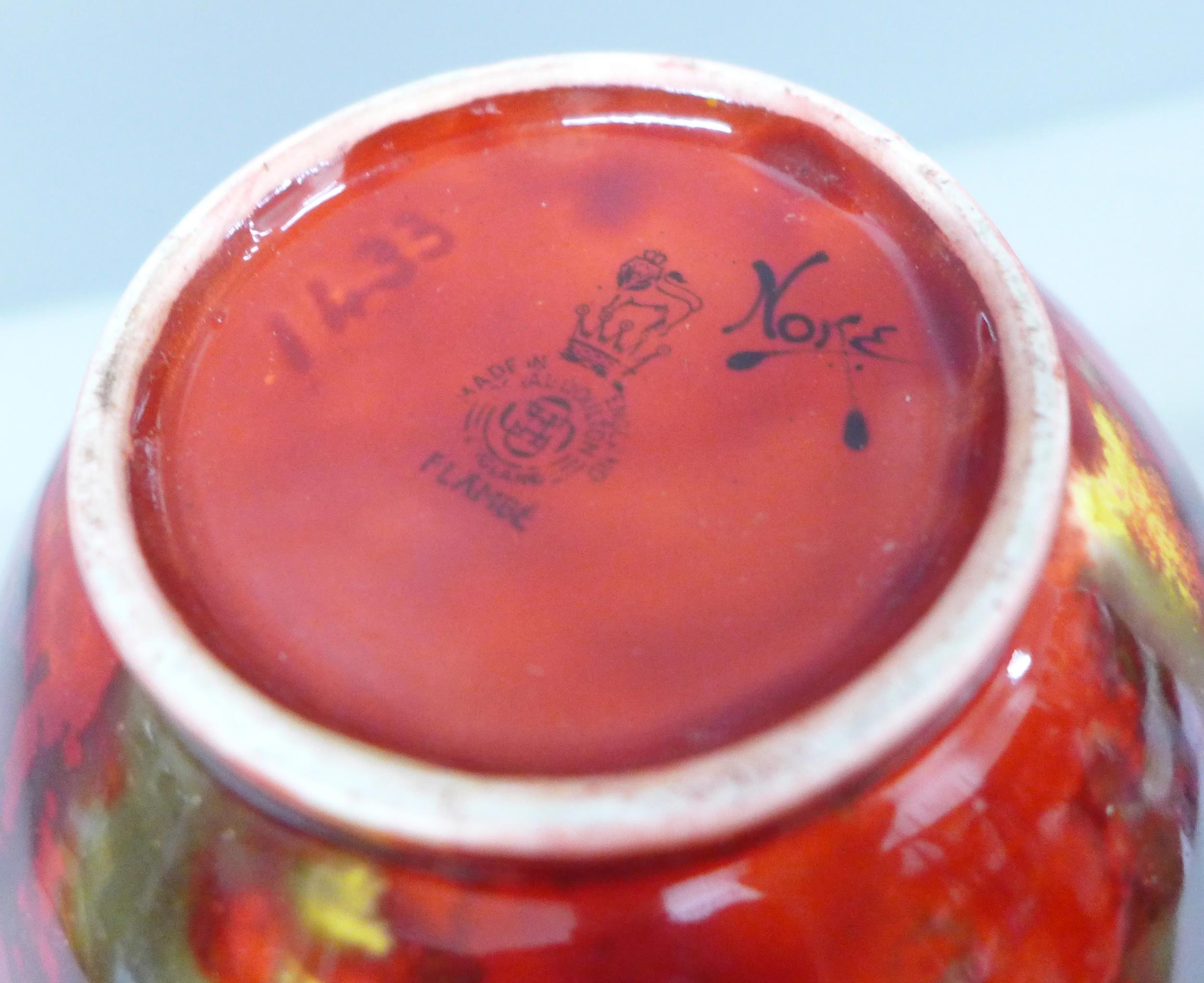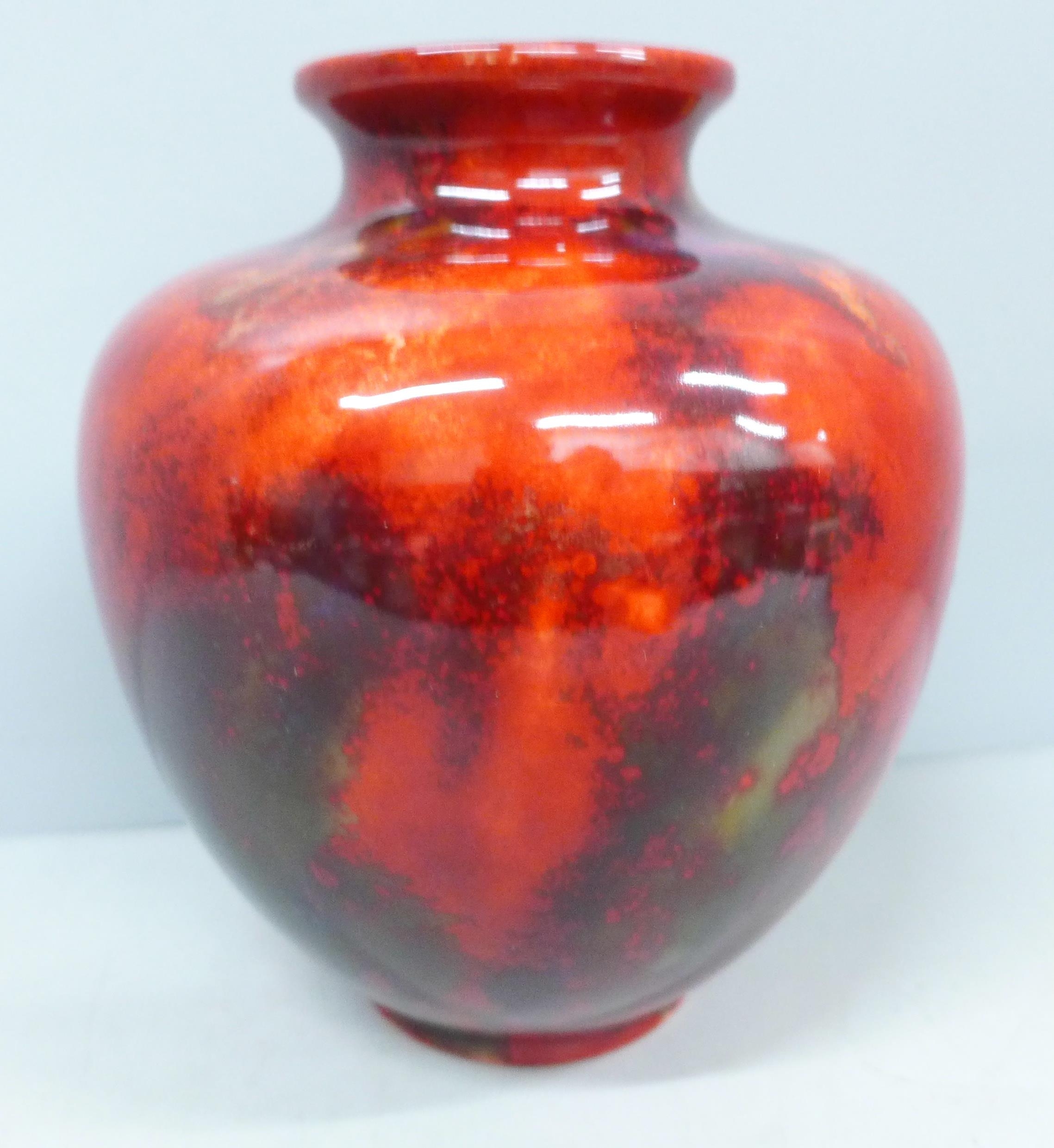 A Royal Doulton ovoid shape Flambé vase, signed Noke to the base and imprinted 1433, 17cm