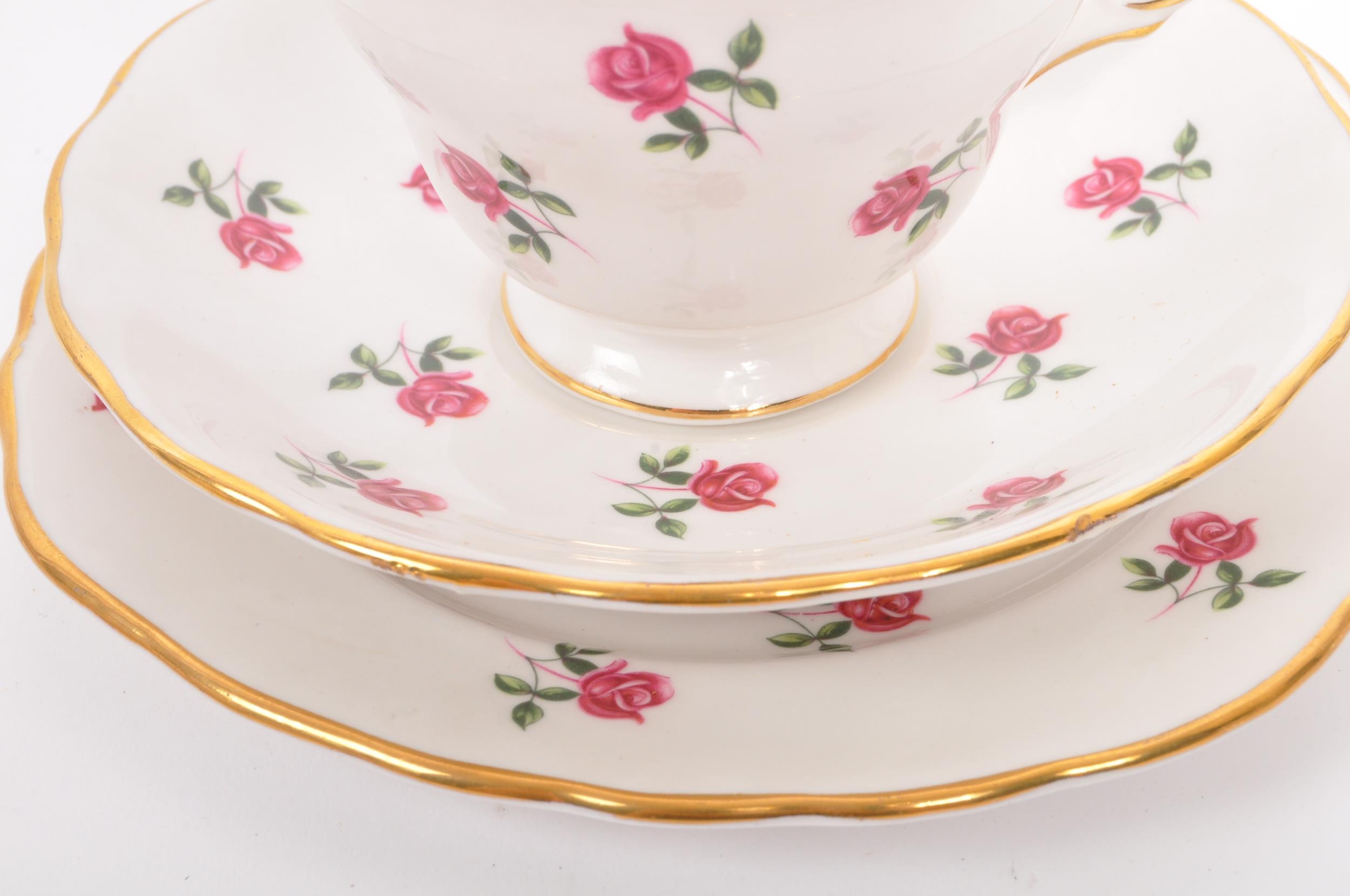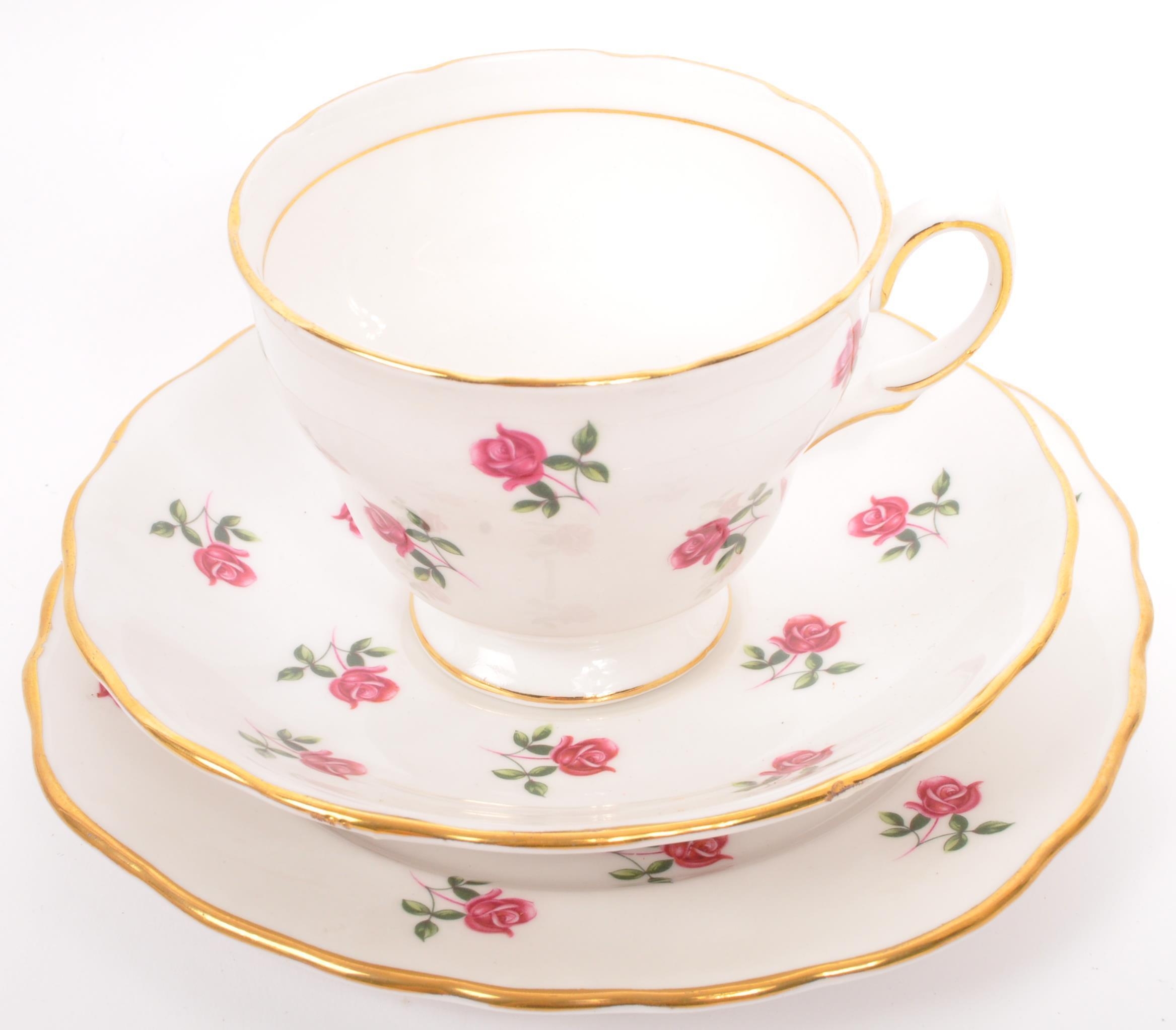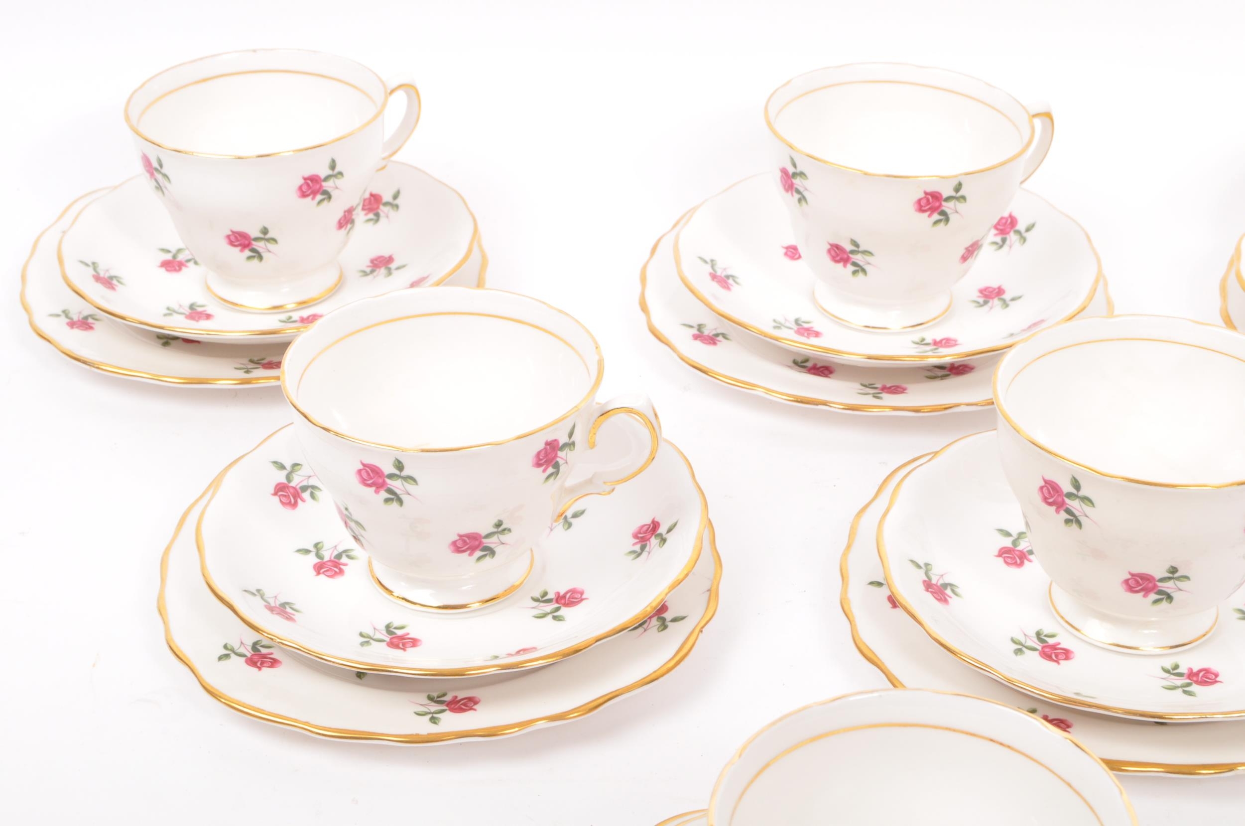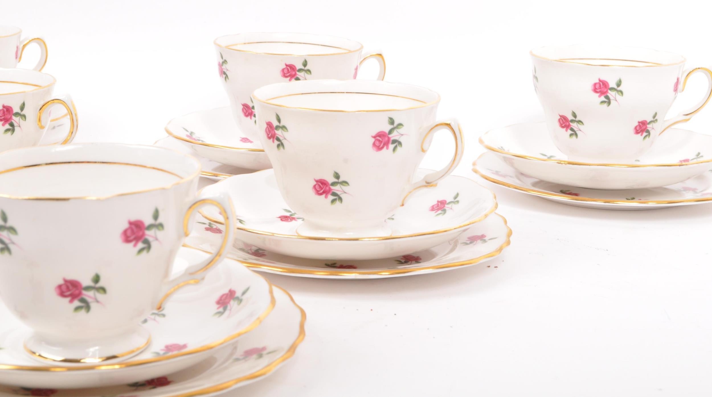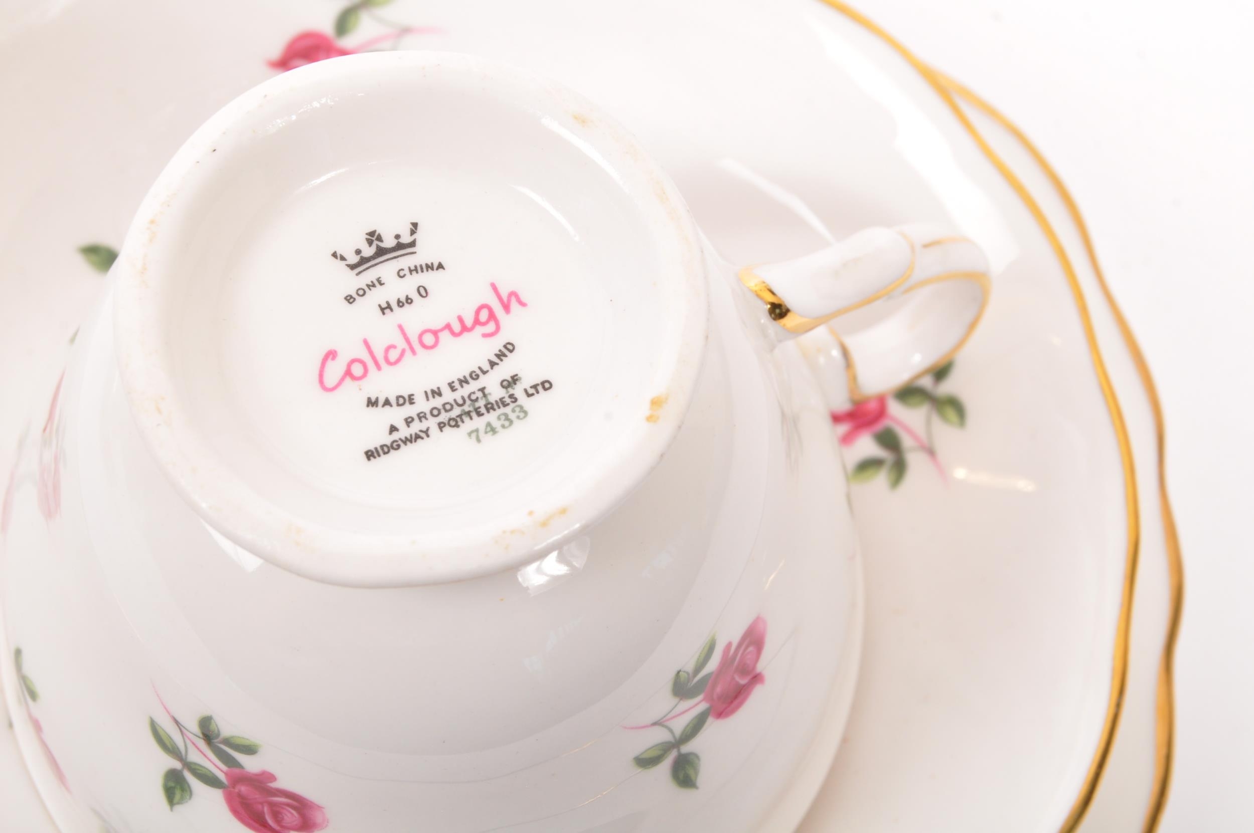 A vintage 20th century bone china tea service to include a fine bone china service in the 'Colclough' design by Ridgway Potteries. Comprising of 6 x teacups, 6 x saucers, 6 x side plates (trios) with milk jug.