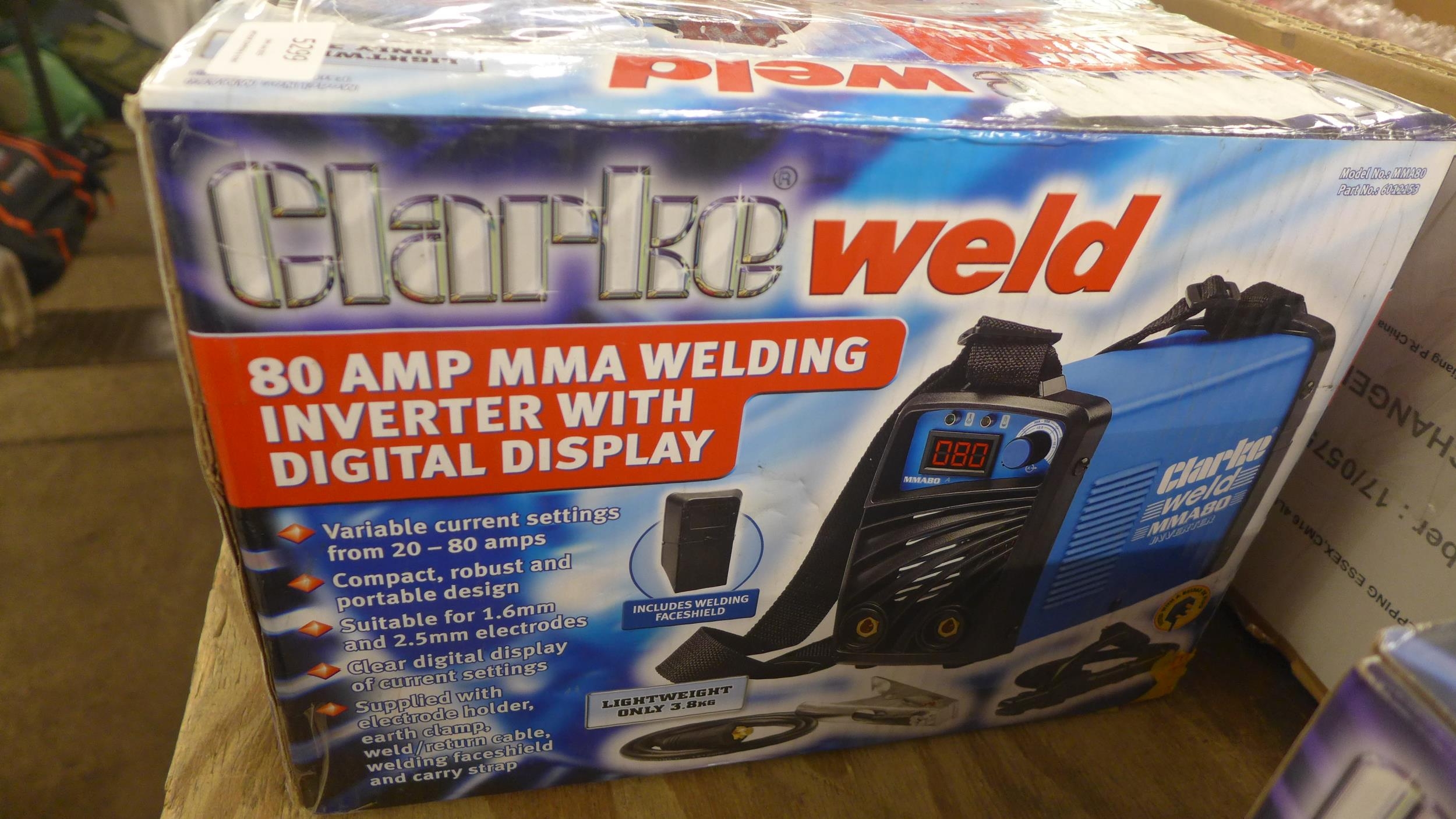 A boxed Clarke weld MMA80 80 amp MMA welding inverter with digital display *This lot is subject to VAT