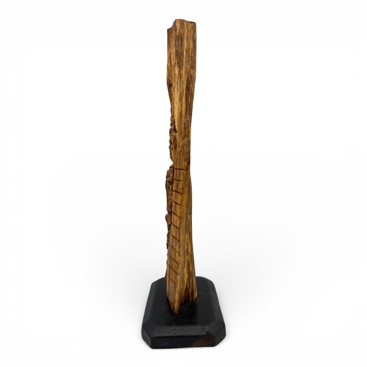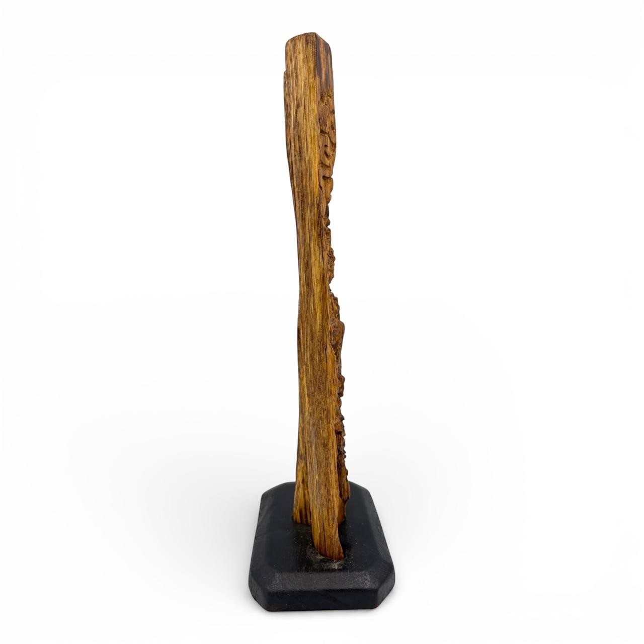 Solid natural wood with natural formation, wood grain variations and organic contours. Approximately 24cm height x 11cm width including base. Please see photos or request a condition report.