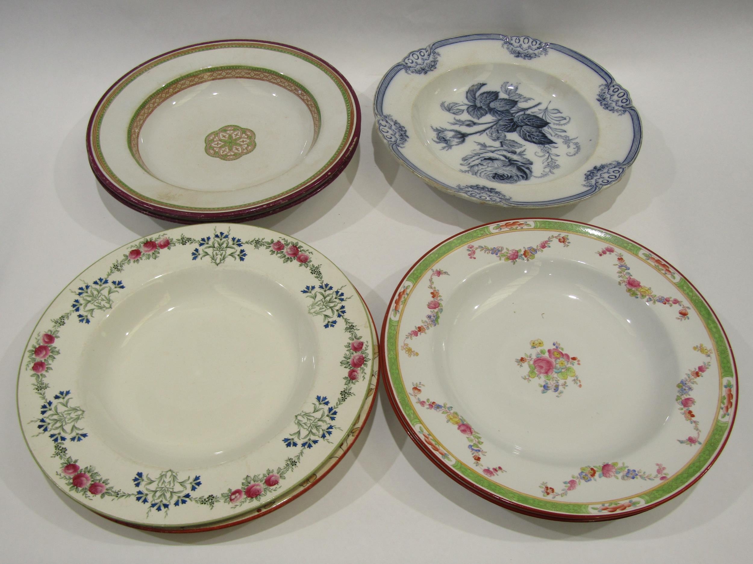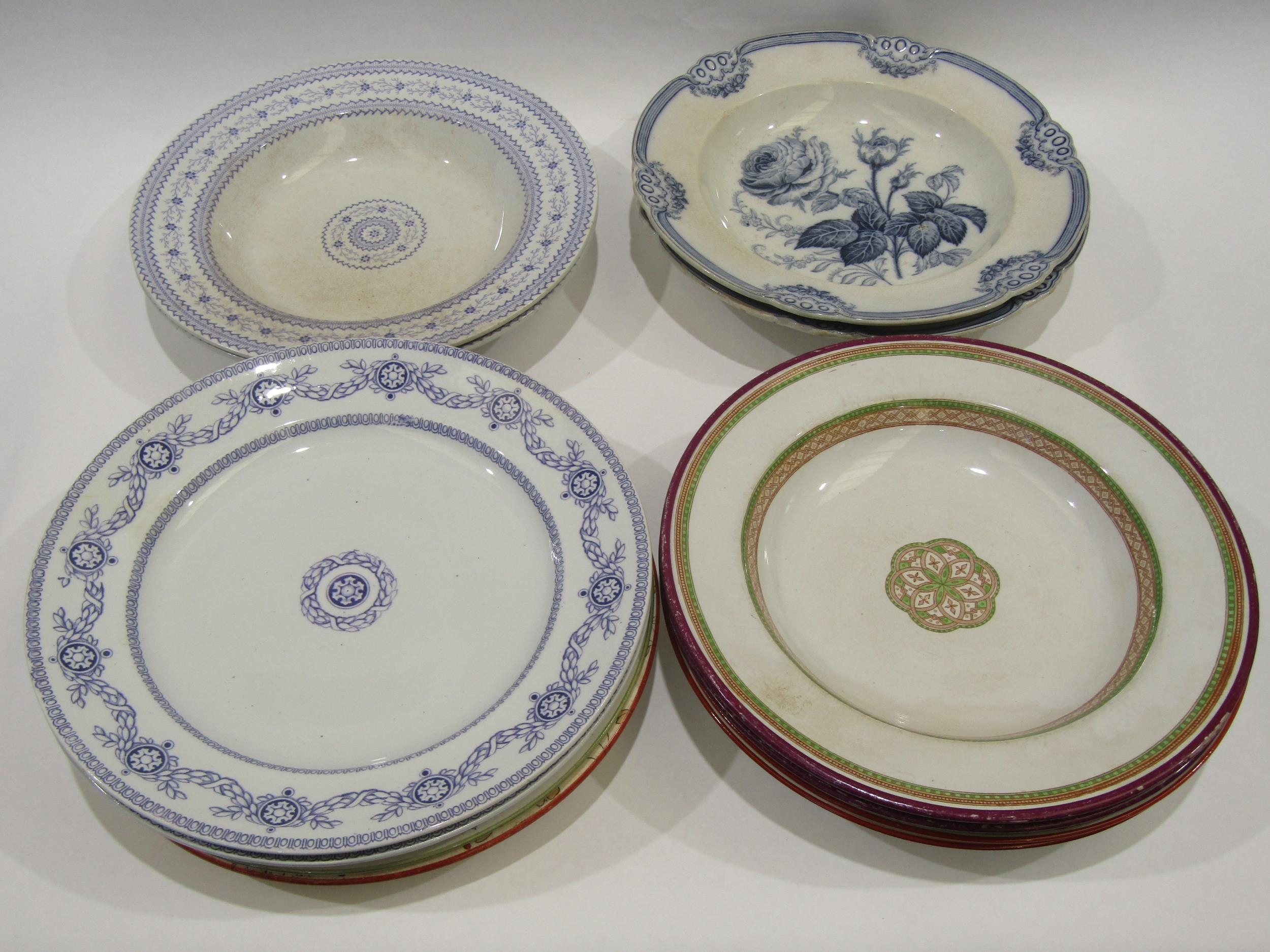 A pair of Victorian Ironstone "Ionia" pattern bowls, pair of Minton's "Finsbury" pattern bowls, pair of Ridgway "Moss Rose" pattern bowls and a pair of L.P. & Co. laurel pattern bowls etc. (12)