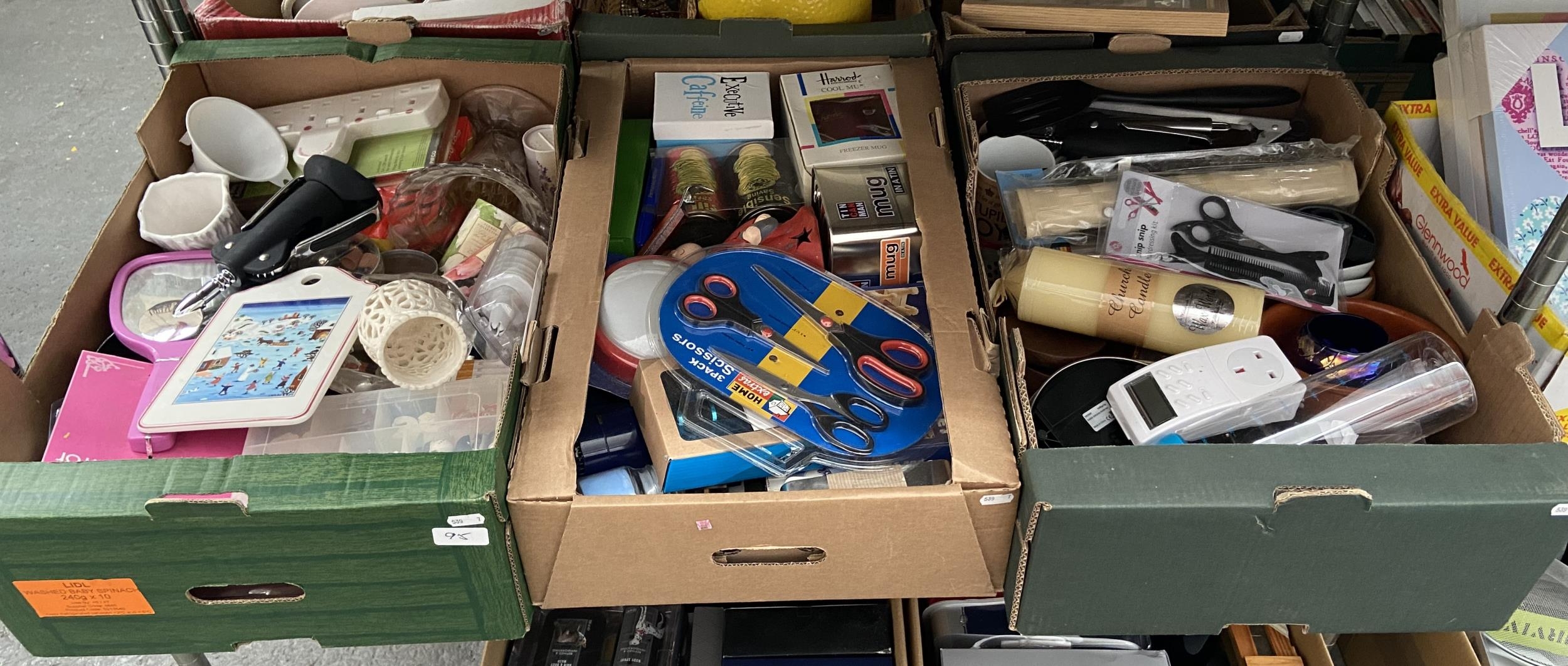 3 Boxes containing games, torches and scissors etc