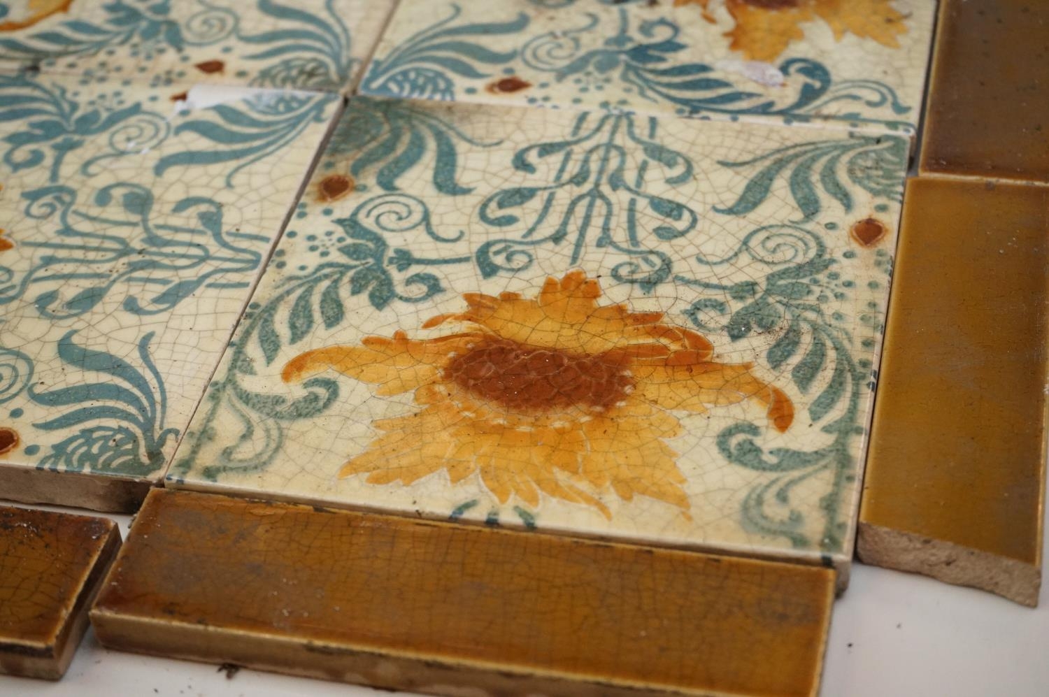 A collection of antique Art Nouveau Minton tiles.