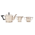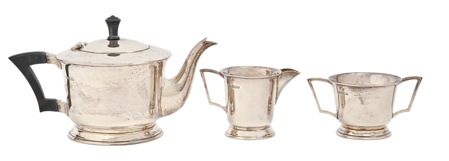 A George VI art deco silver tea service, teapot 14cm h, by Viners Ltd, Sheffield 1939, 22oz (3)