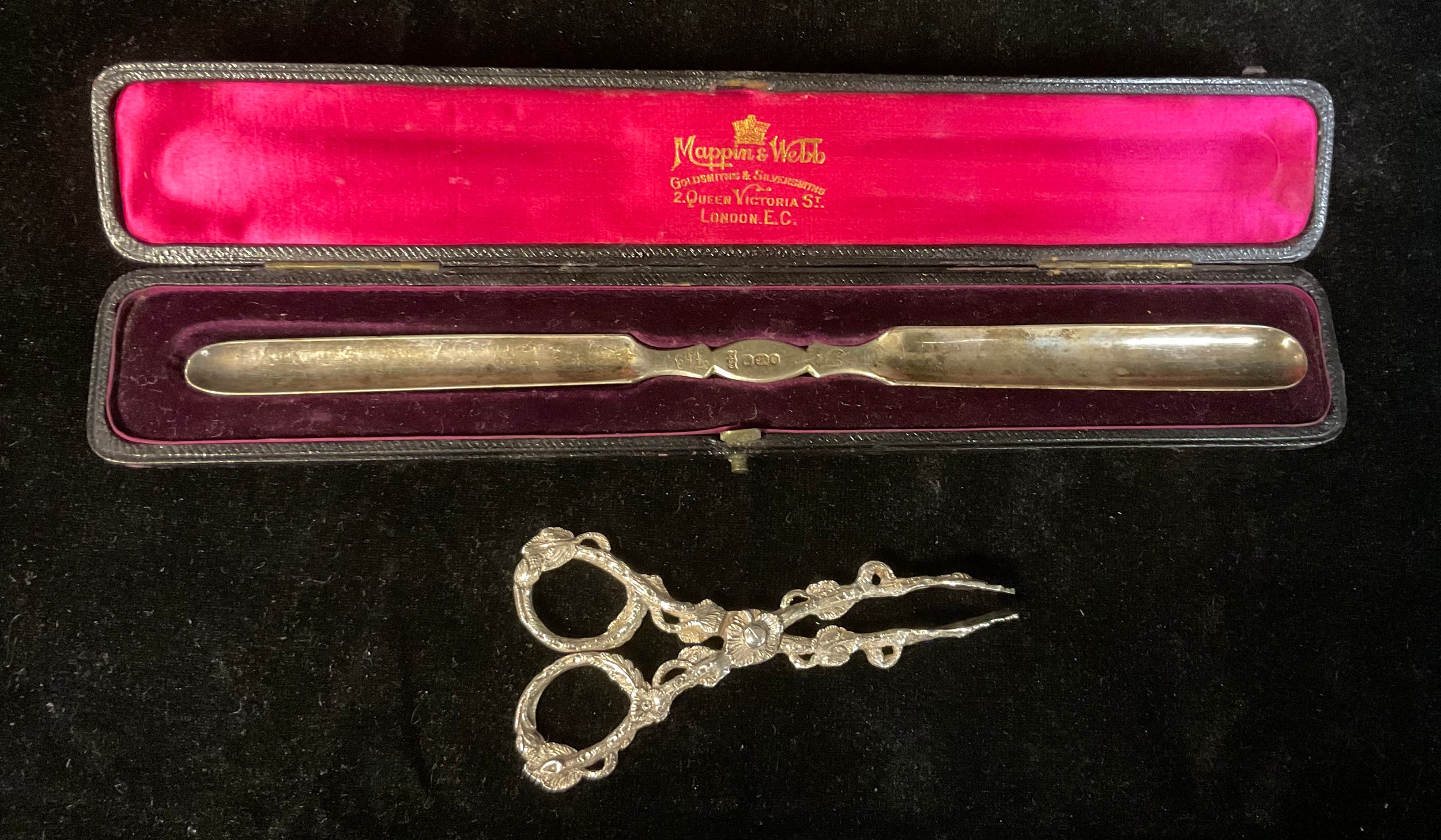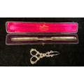 A pair of Victorian sugar bows, cast ornately with leafy branches and blossom, c.1890, 33.9g; an Edwardian silver marrow scoop, Sheffield 1909, 43g, cased