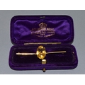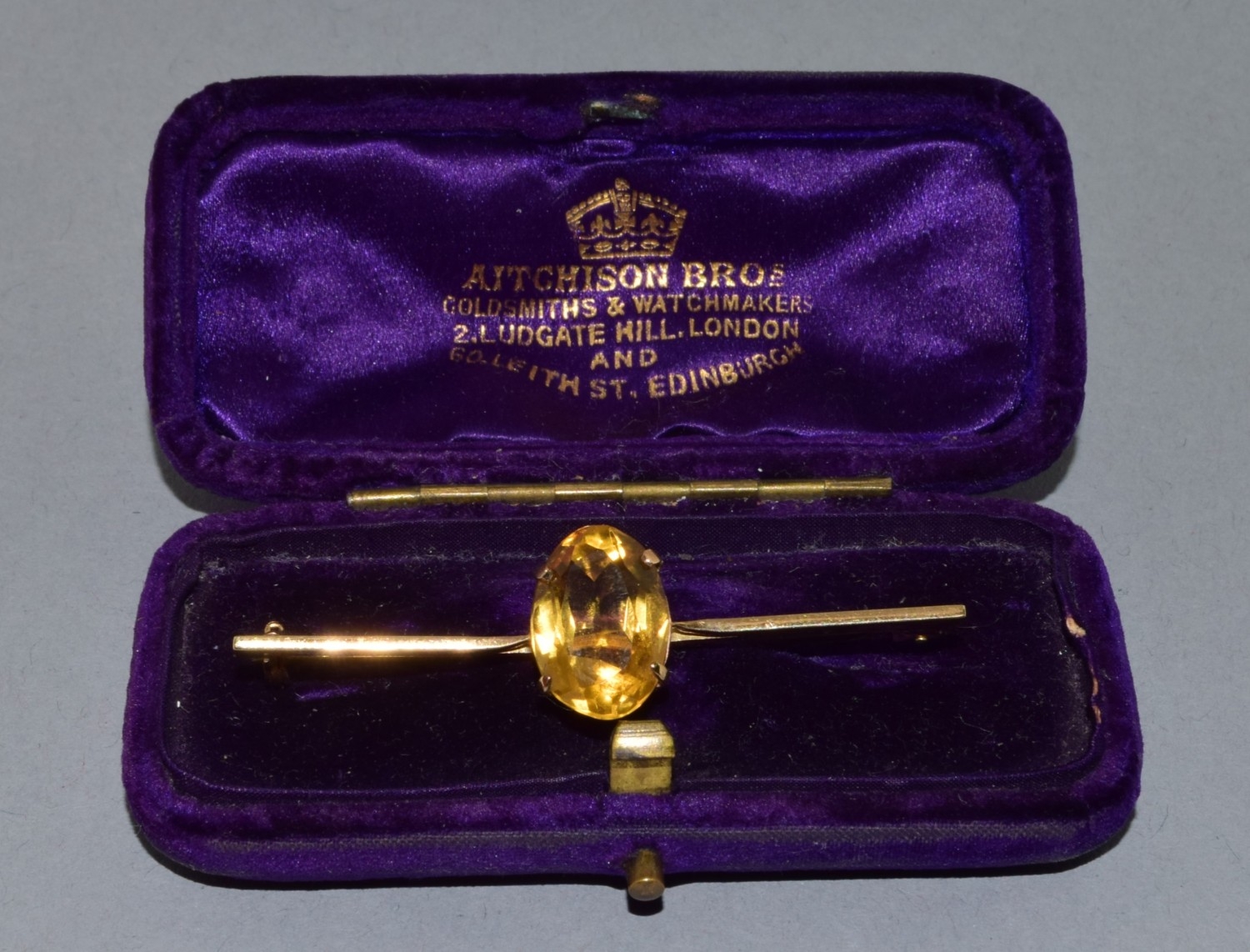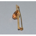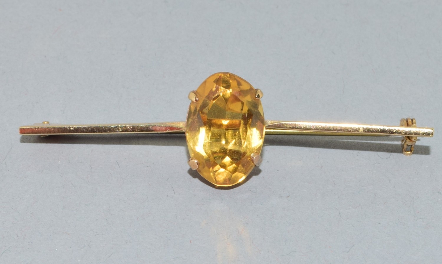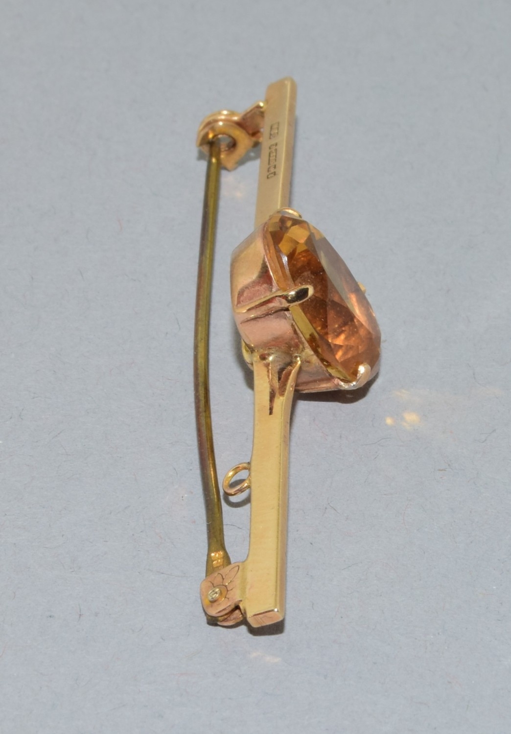 Vintage 9ct gold bar brooch set with a large single Amber stone in its fitted vintage box 3.89grams