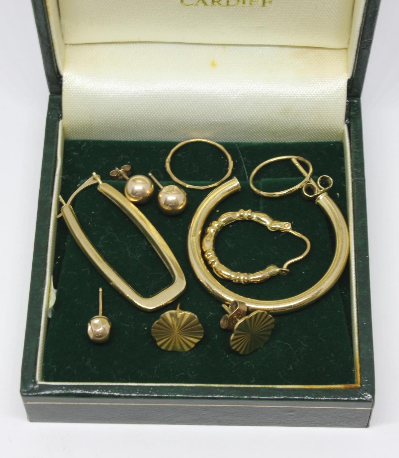 3 PAIRS EARRINGS AND 4 ODD EARRINGS ALL MARKED 375/9KT (4.7g)