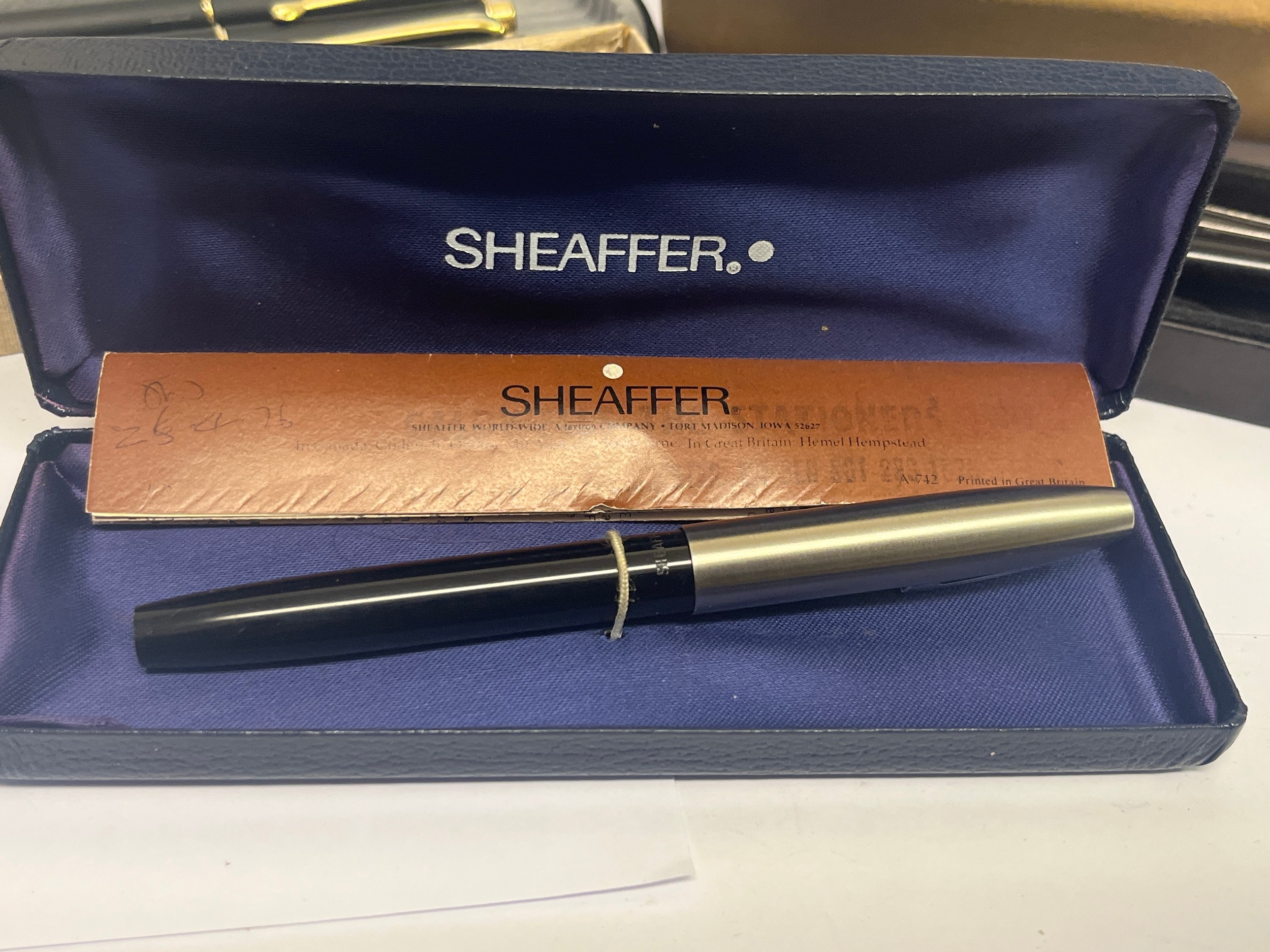 COLLECTION OF 5 FOUNTAIN PEN SETS A DUFFERIN MOTTLED , SET OF THREE, SHEAFFER TARGA