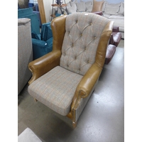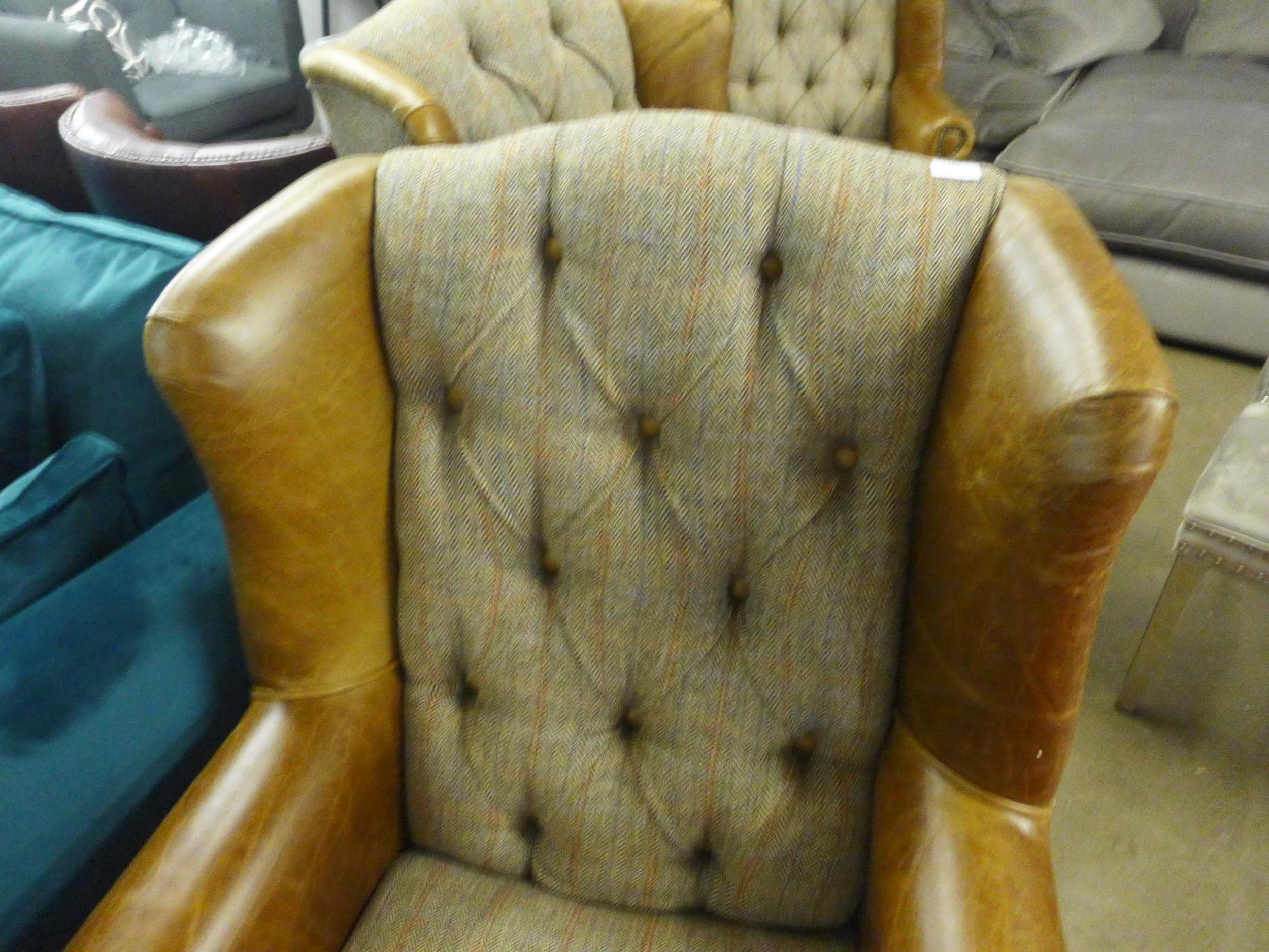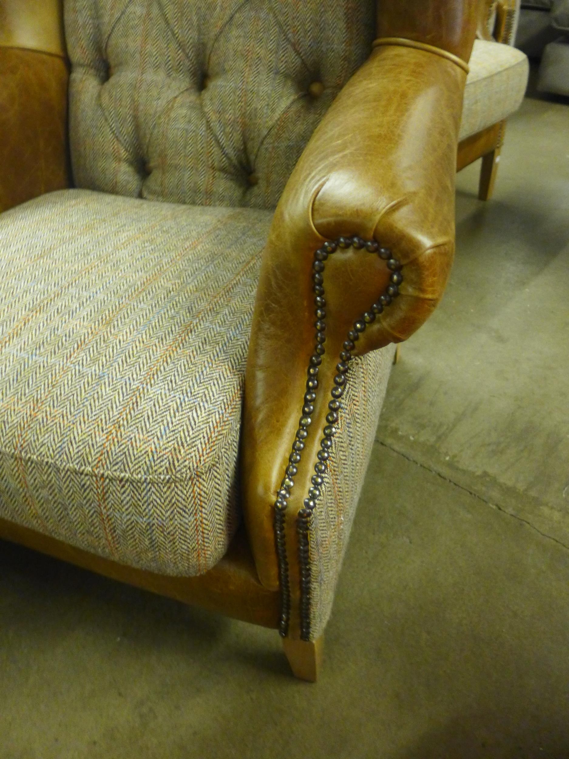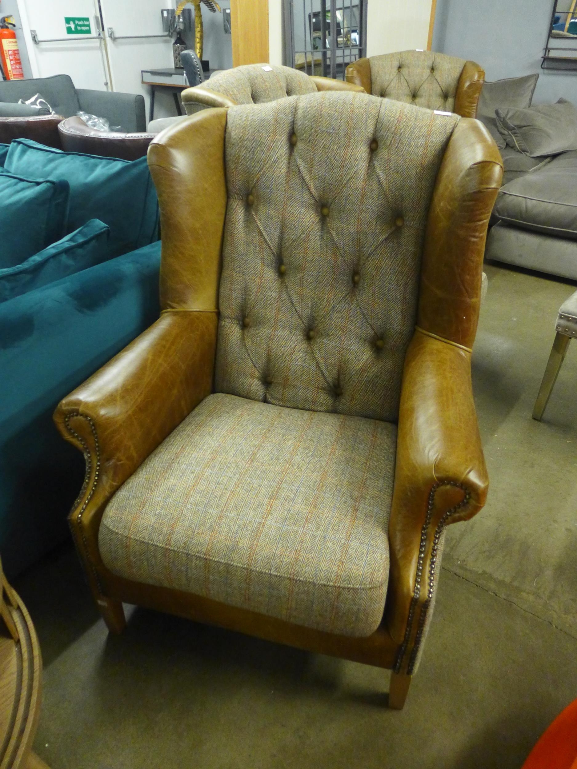 A Fast Track Kew hunting lodge Harris tweed and Cerato leather armchair