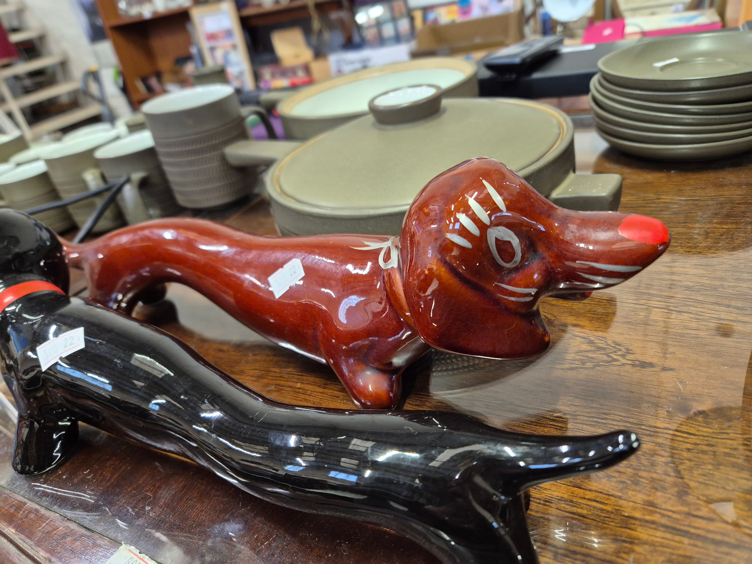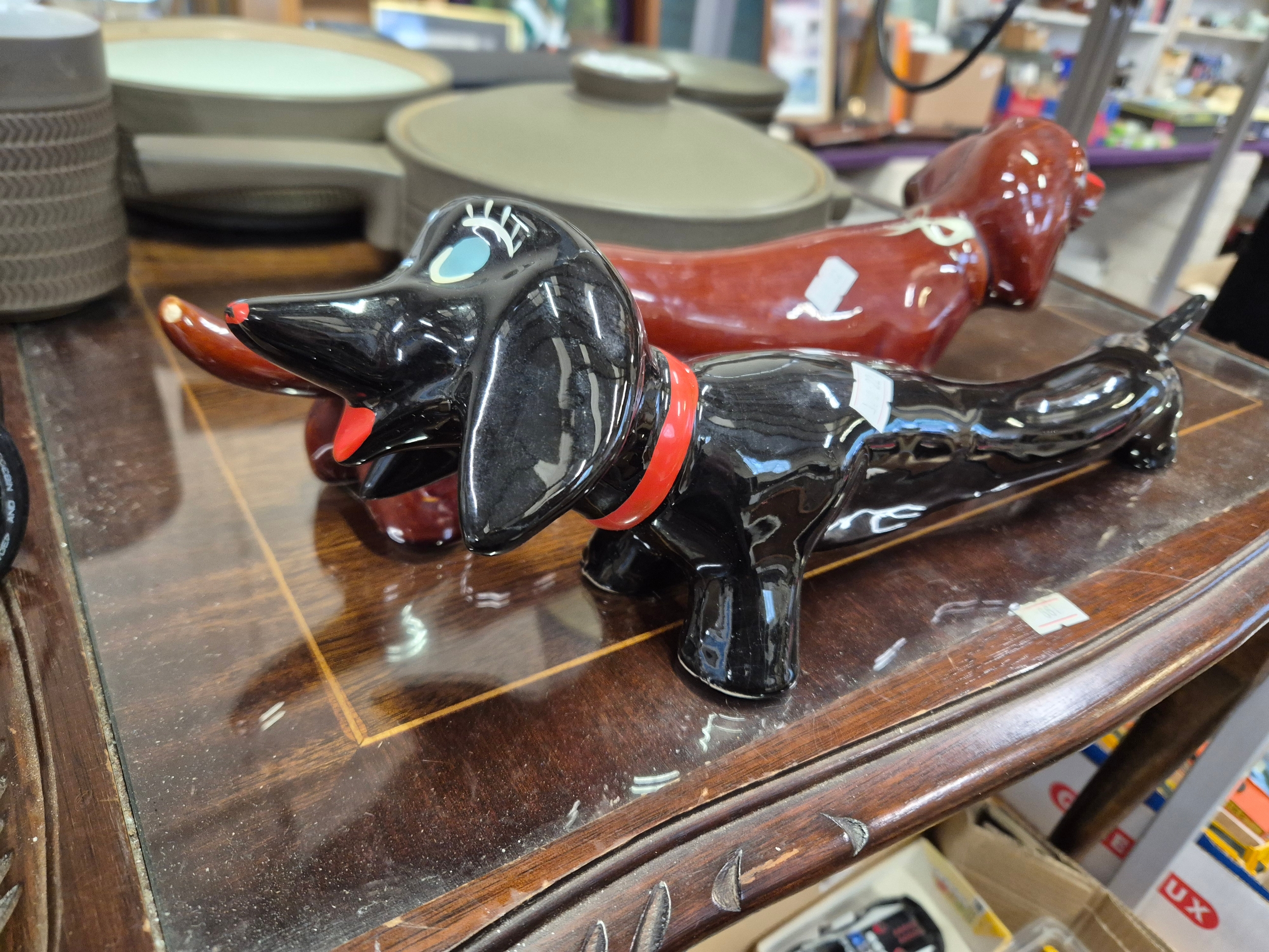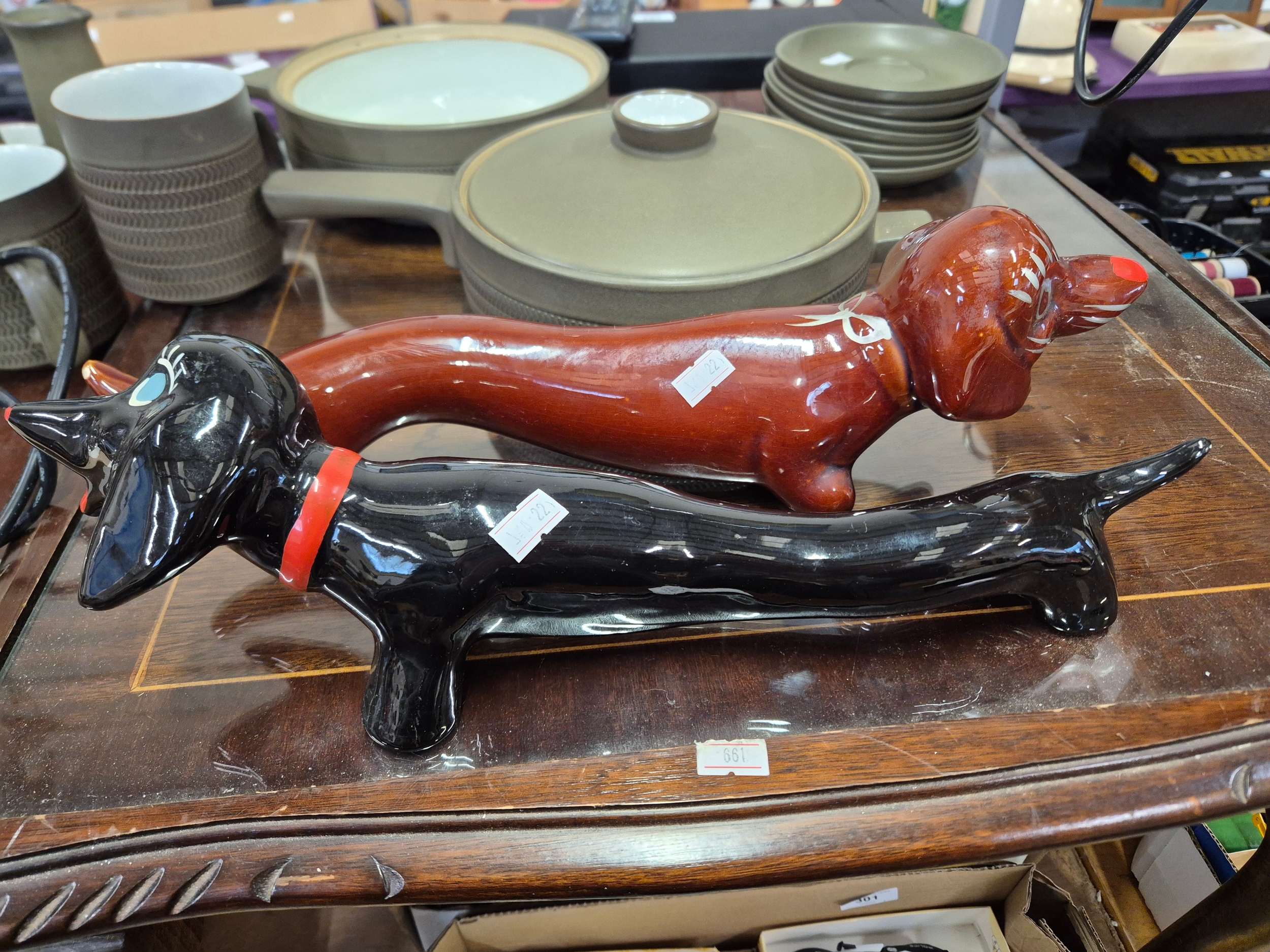 2 x 1960's hand painted dog ornaments