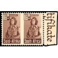1942-4 bantam War Effort 1½d marginal pair with roulette omitted (and missing shading at right), unmounted o.g., inconsequential bend.  SG 99b, £