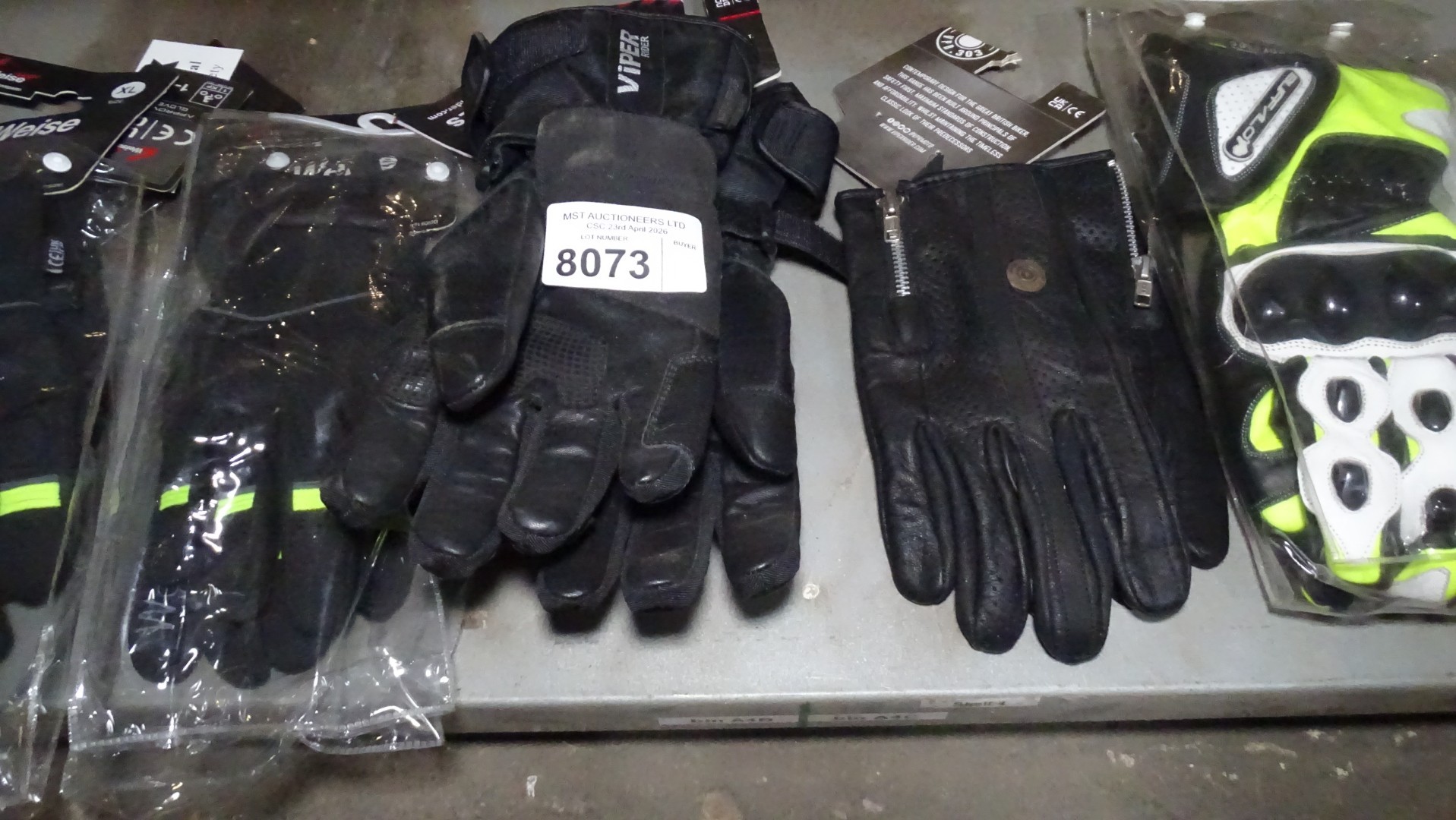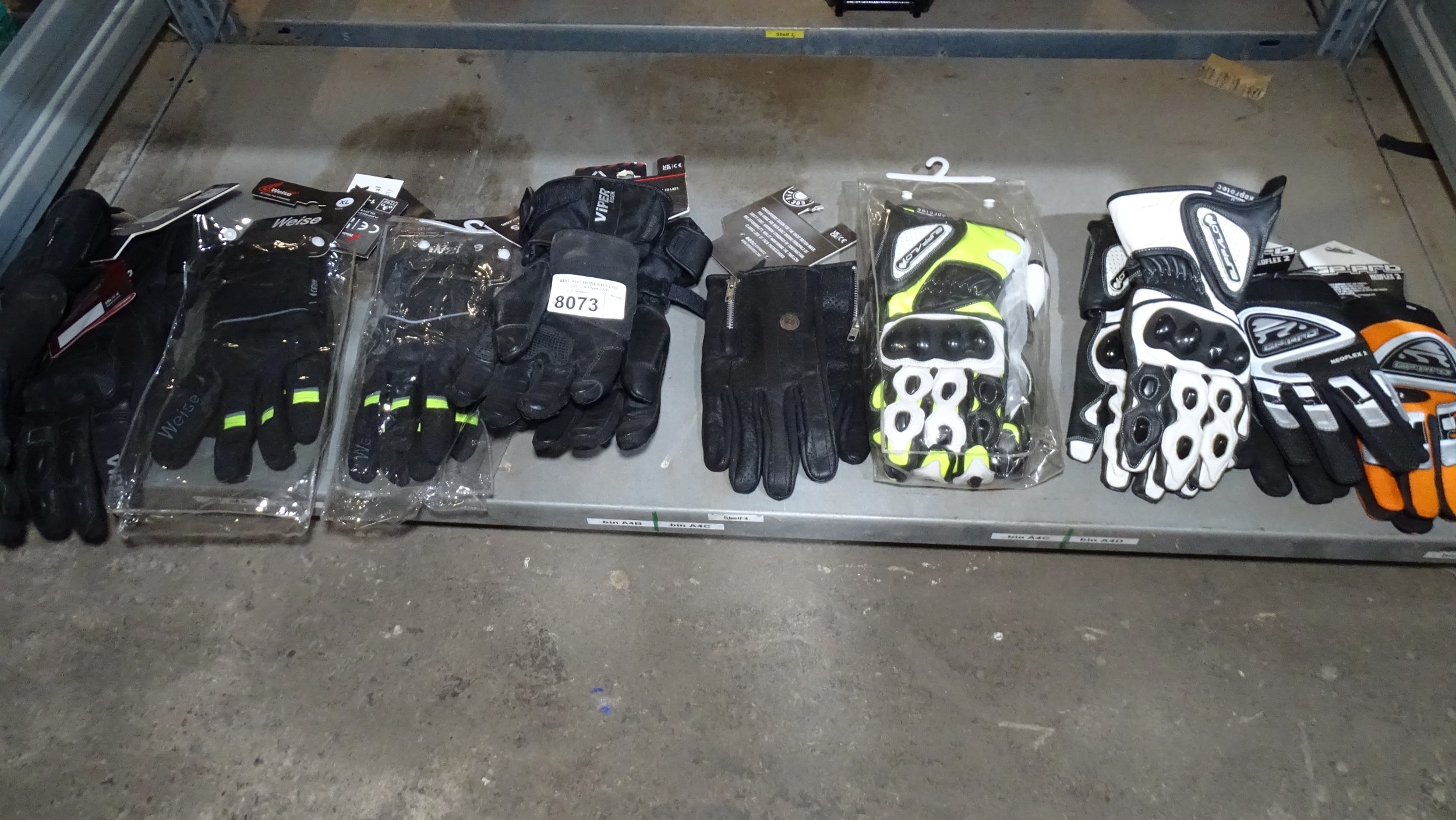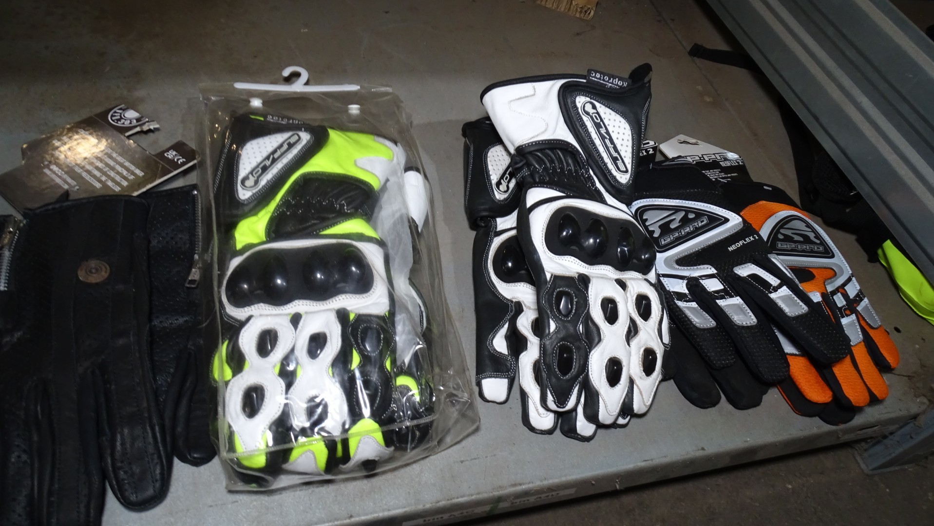 A quantity of various motorcycle gloves - Contents of 1 shelf