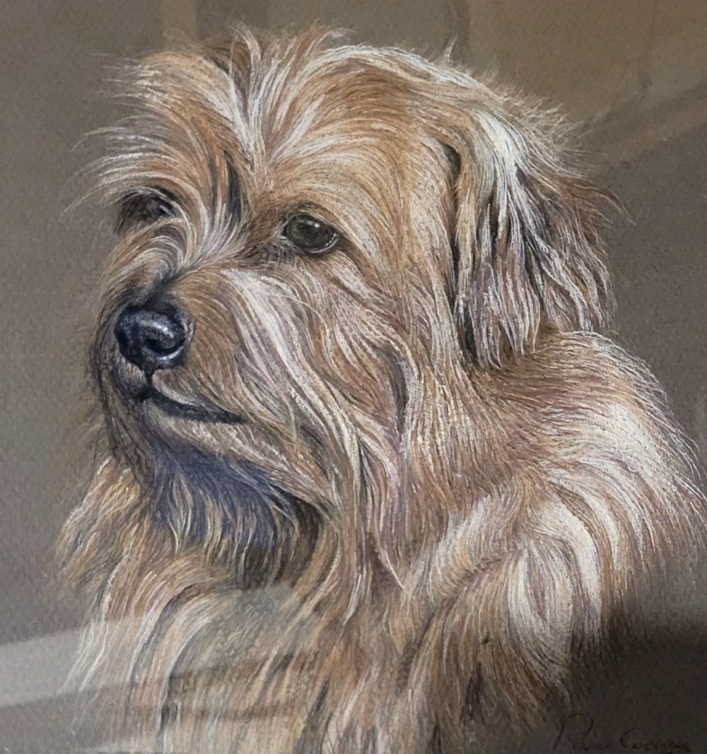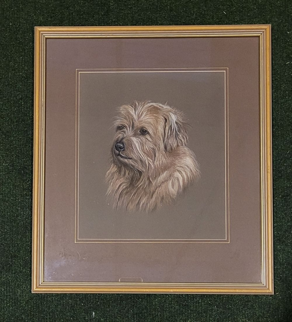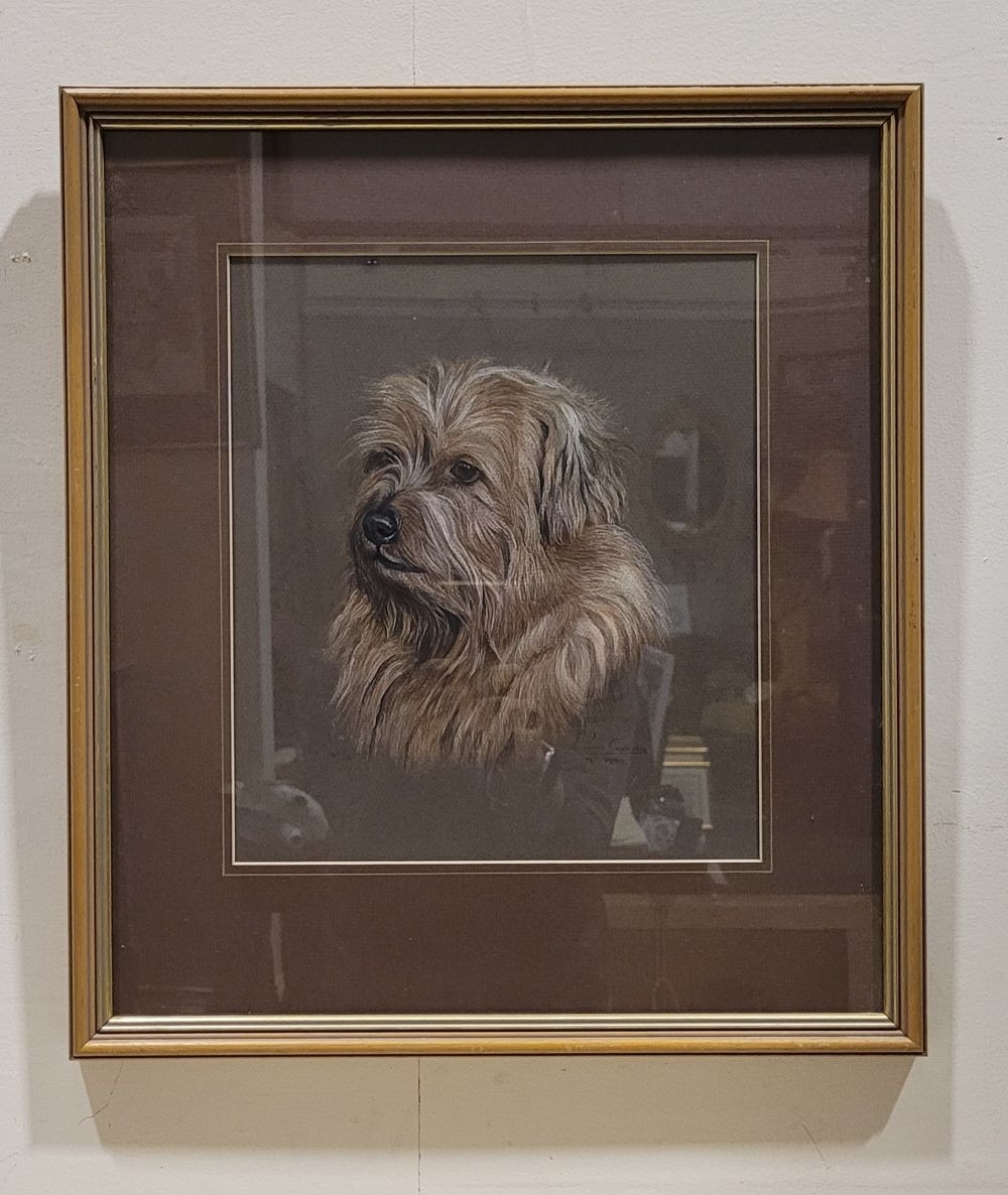 PAMELA COOMBES, (BRITISH, 20TH CENTURY), UNTITLED DOG PORTRAIT, pastel on paper, signed & dated lower right. Frame: 47 x 41.5cm, drawing: 30 x 26cm.