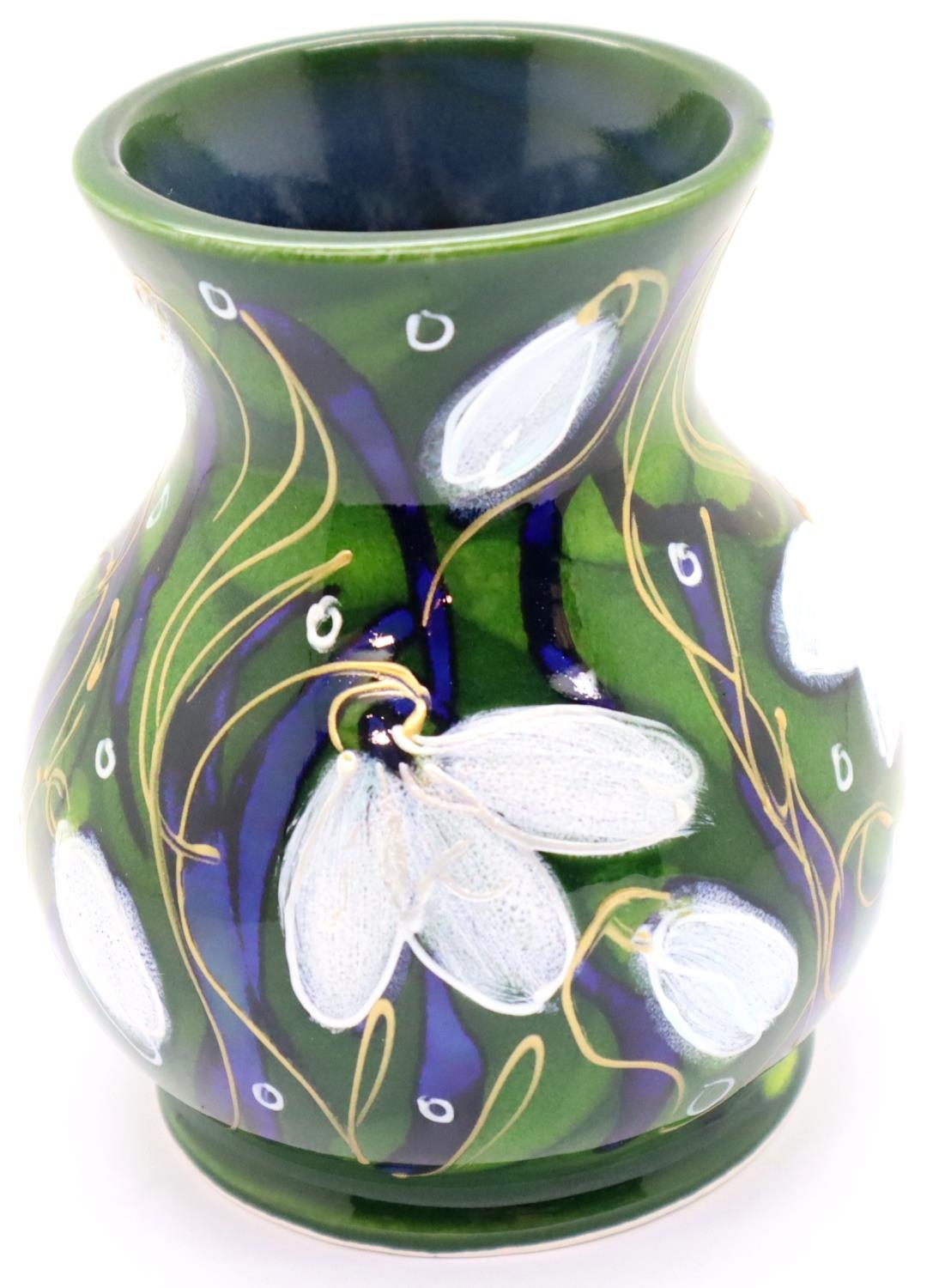 Anita Harris Snowdrop vase, H: 11 cm. P&P Group 2 (£18+VAT for the first lot and £3+VAT for subsequent lots). Condition report: No chips, cracks or visible restoration