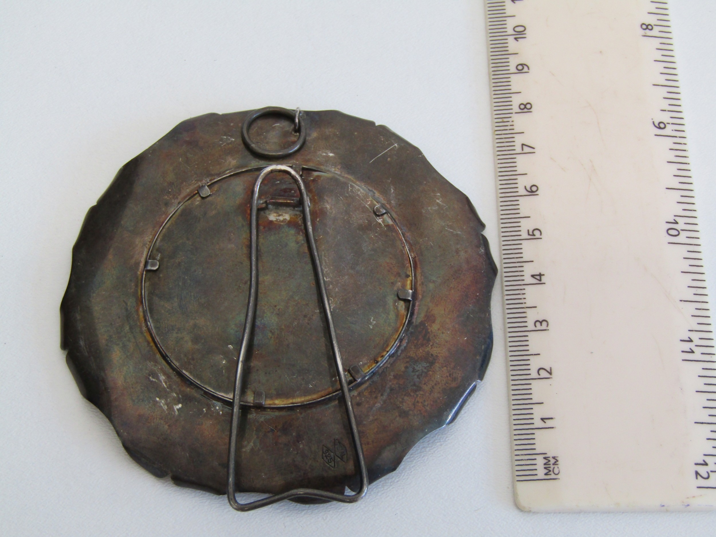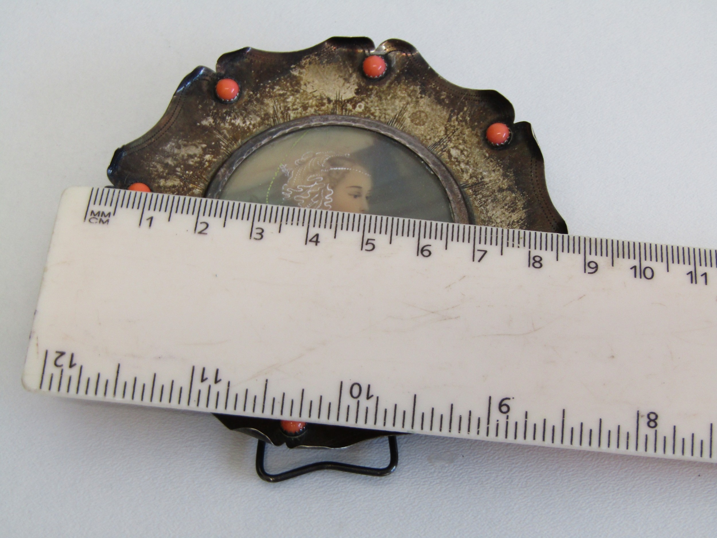 Antique sterling silver framed hand painted miniature religious Madonna portrait, 36.8g.