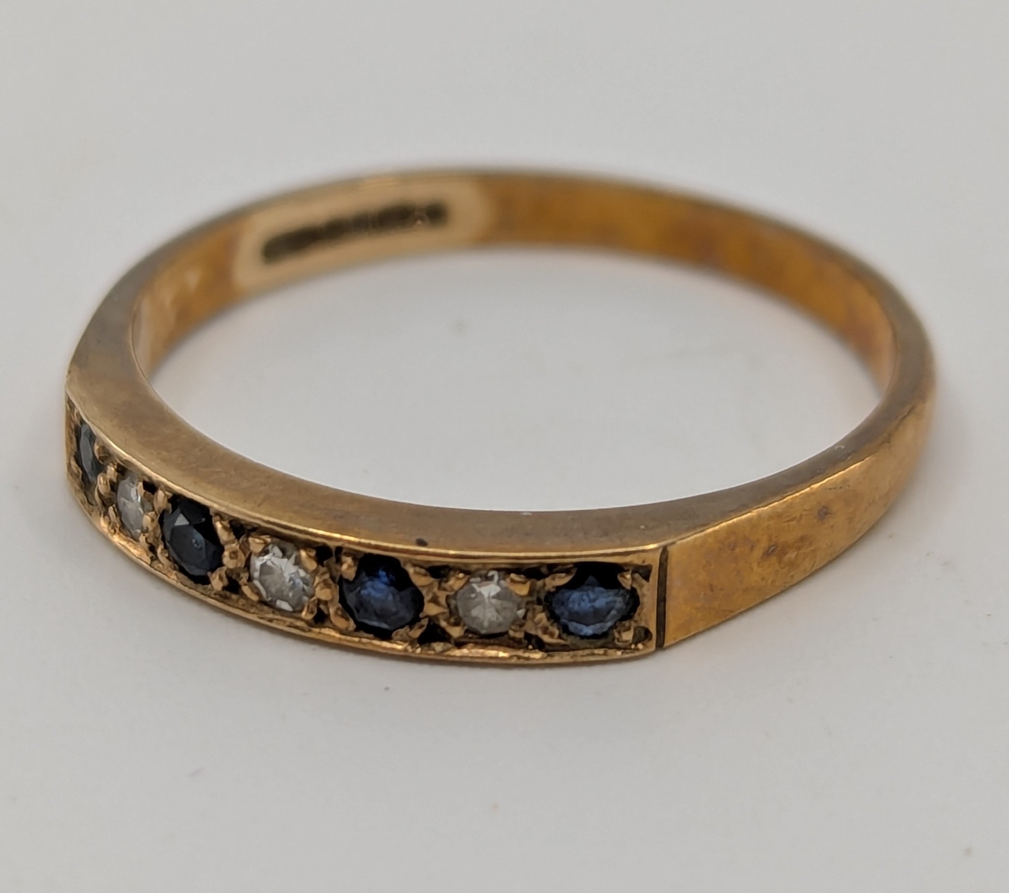 A 9ct gold seven stone sapphire and diamond eternity ring,