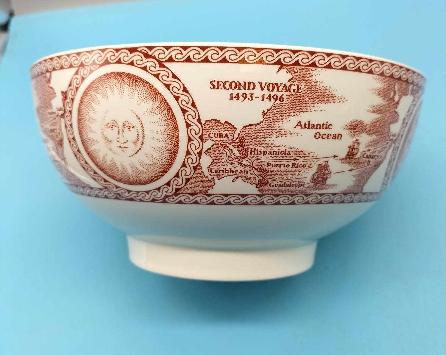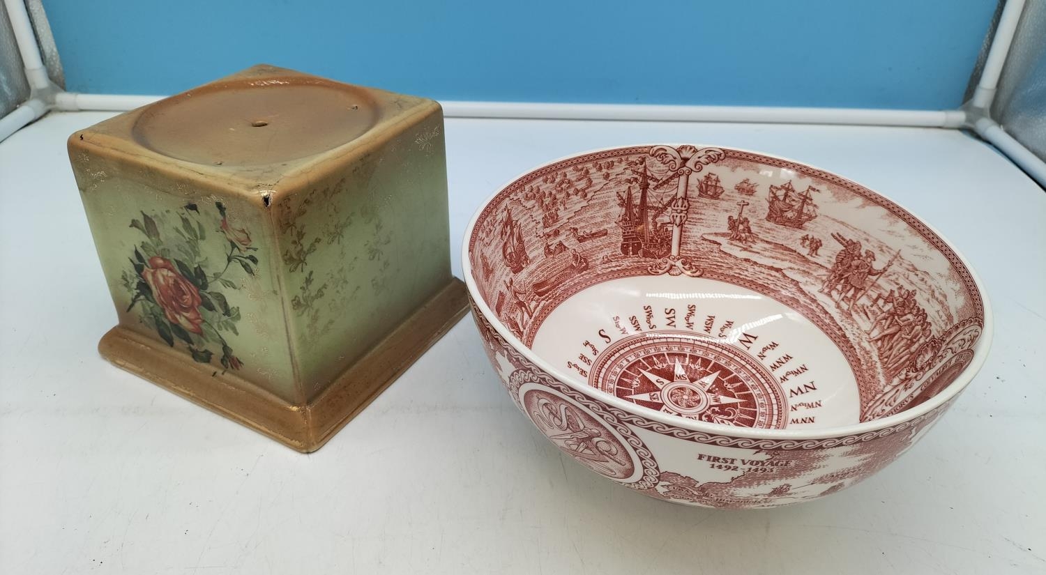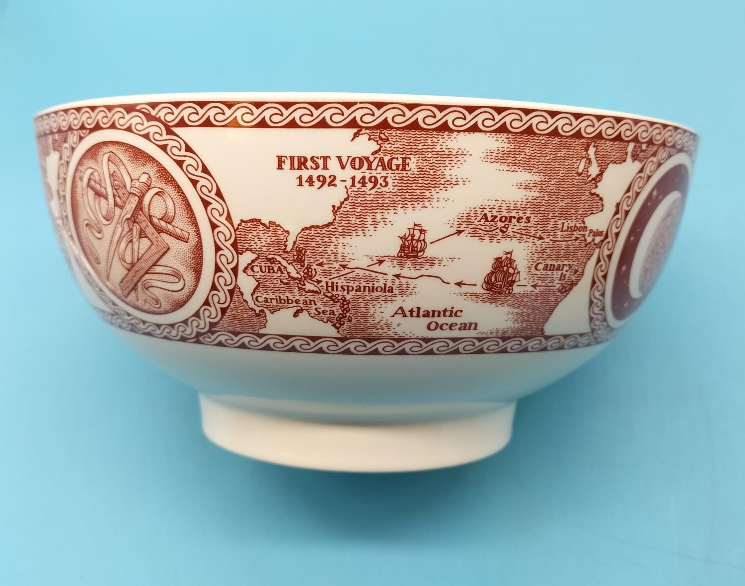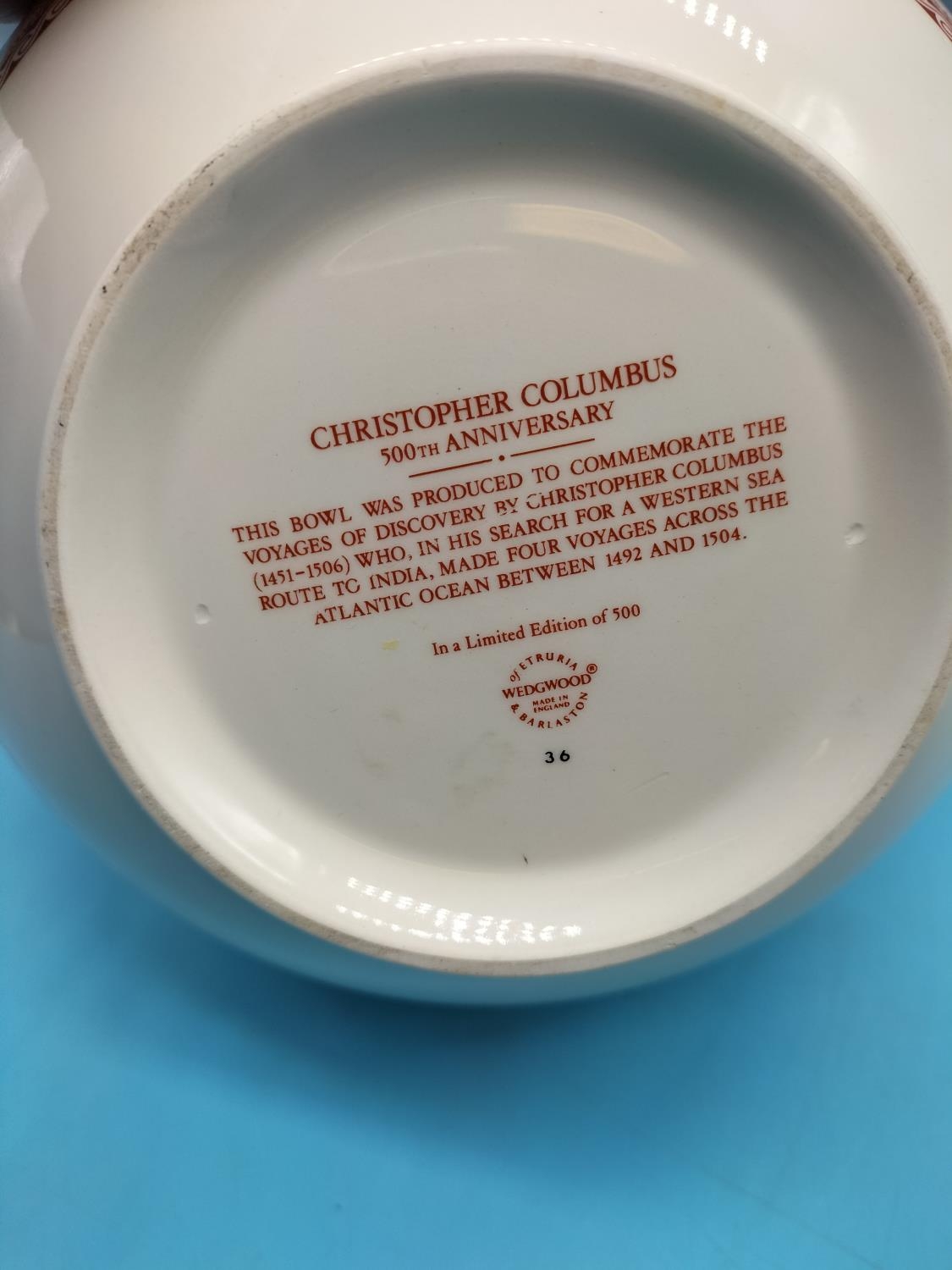 Wedgwood 'Christopher Columbus 500th Anniversary (2004) Commemorative Limited Edition Bowl (20cm Diameter) plus Late Victorian Ceramic Vase Stand/Base.
