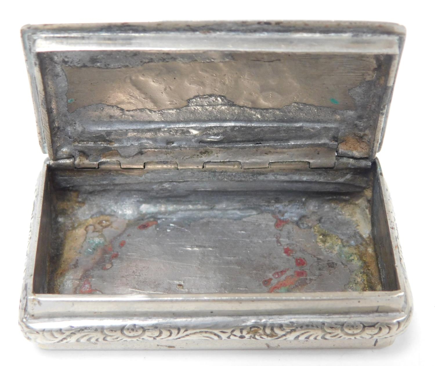 White metal (silver tested) snuff box