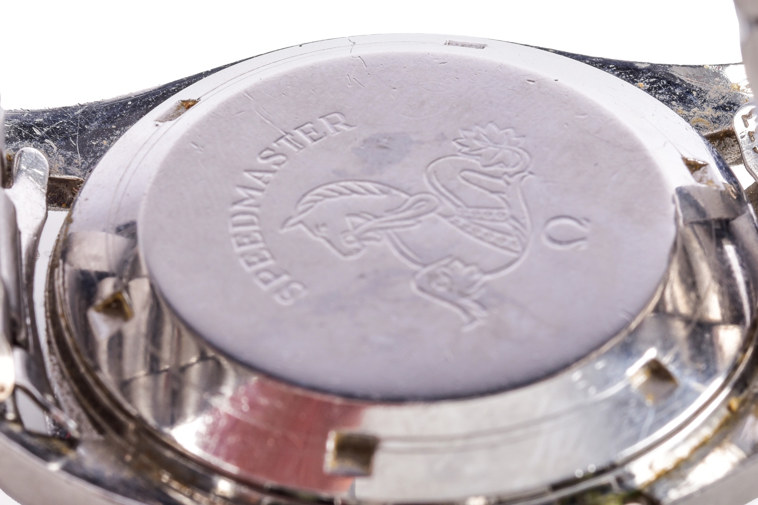 An Omega Speedmaster Professional reference 145022 - 68 ST stainless steel wristwatch circa 1968, transitional reference, with manual wind movement, black dial, triple subsidiary dials, luminous baton numerals, white luminous hands, black tachymeter, Calibre 861 17 jewel hand wound movement, on its original Omega Speedmaster bracelet, case size approx. 42mm, no box or paperwork. Serial number 27322175.