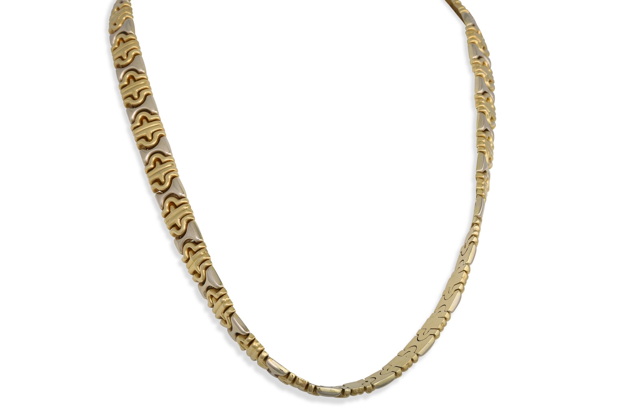 AN 18CT GOLD ITALIAN DESIGN NECKLACE, 47.4 g.