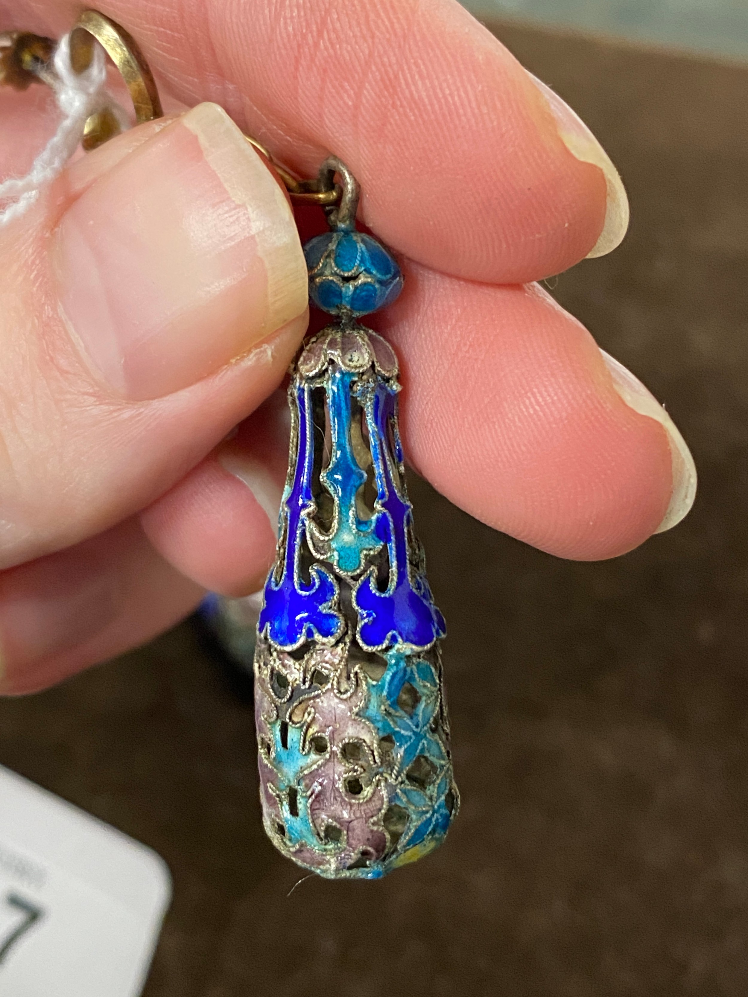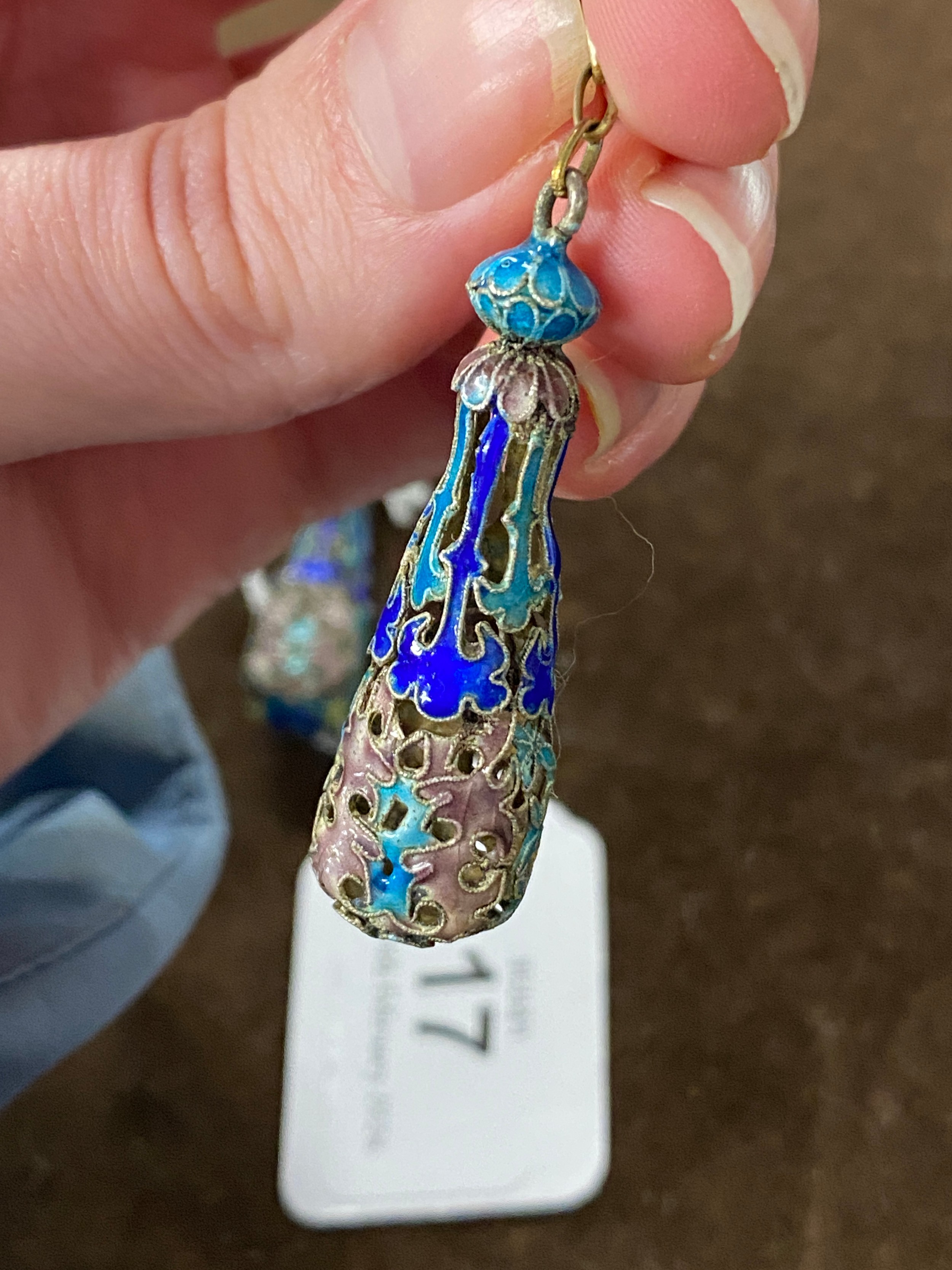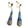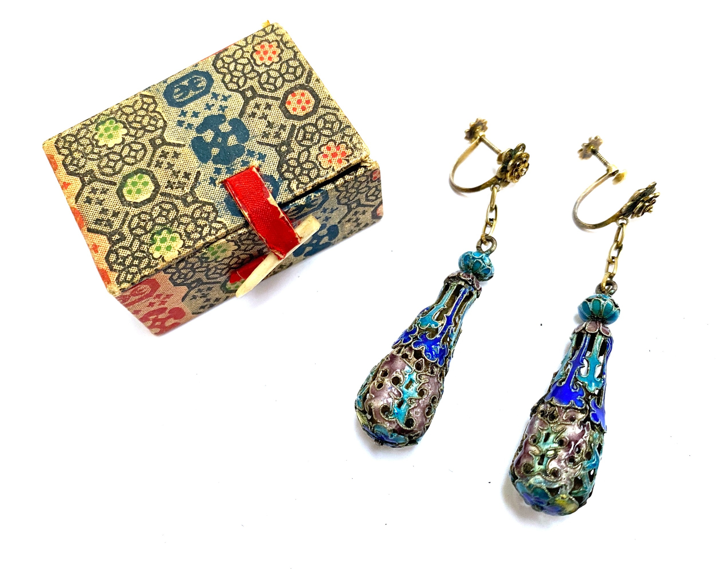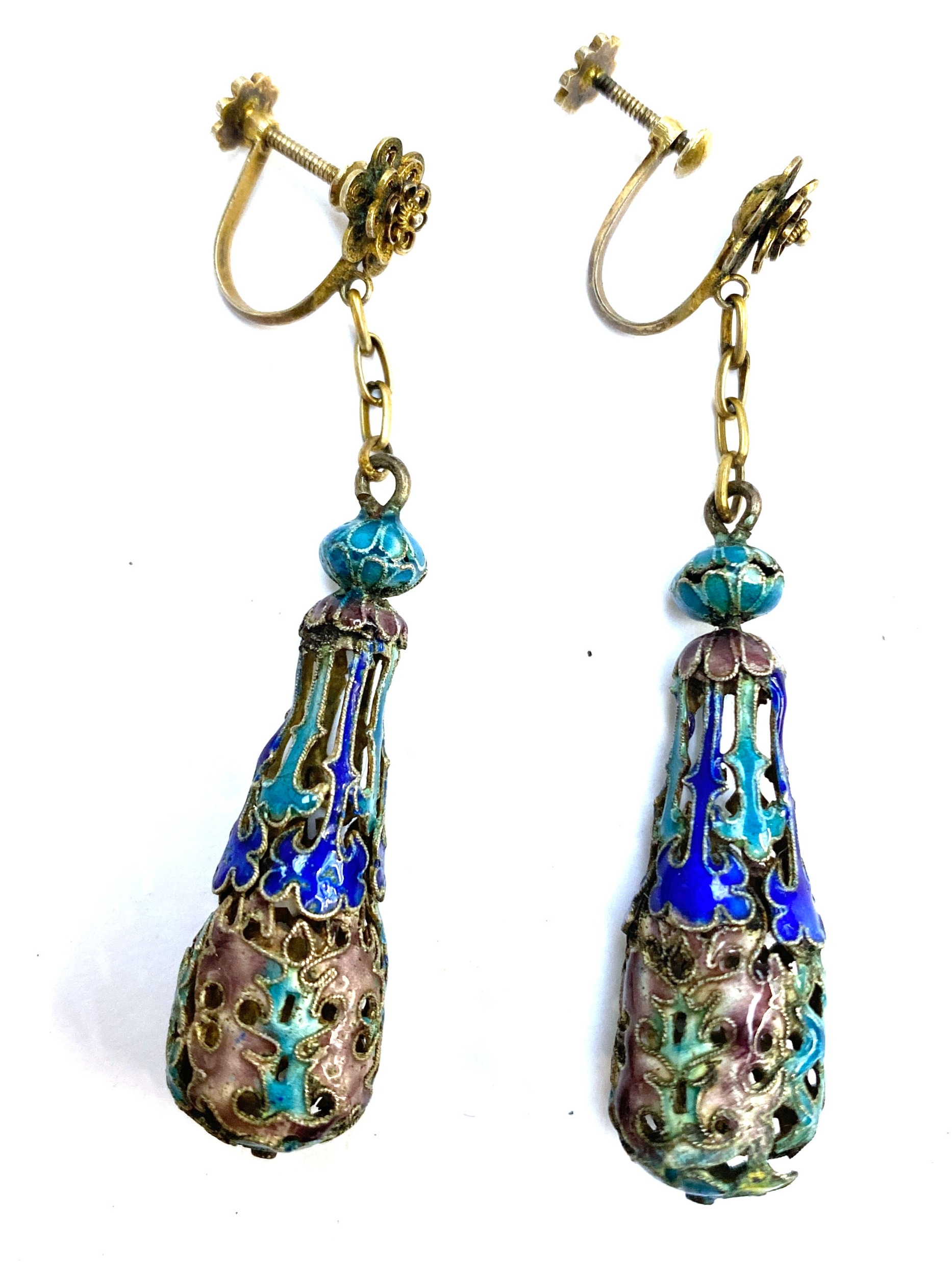 A pair of early 20th century Chinese export cloisonne enamel screw back earrings, 6.8cmL