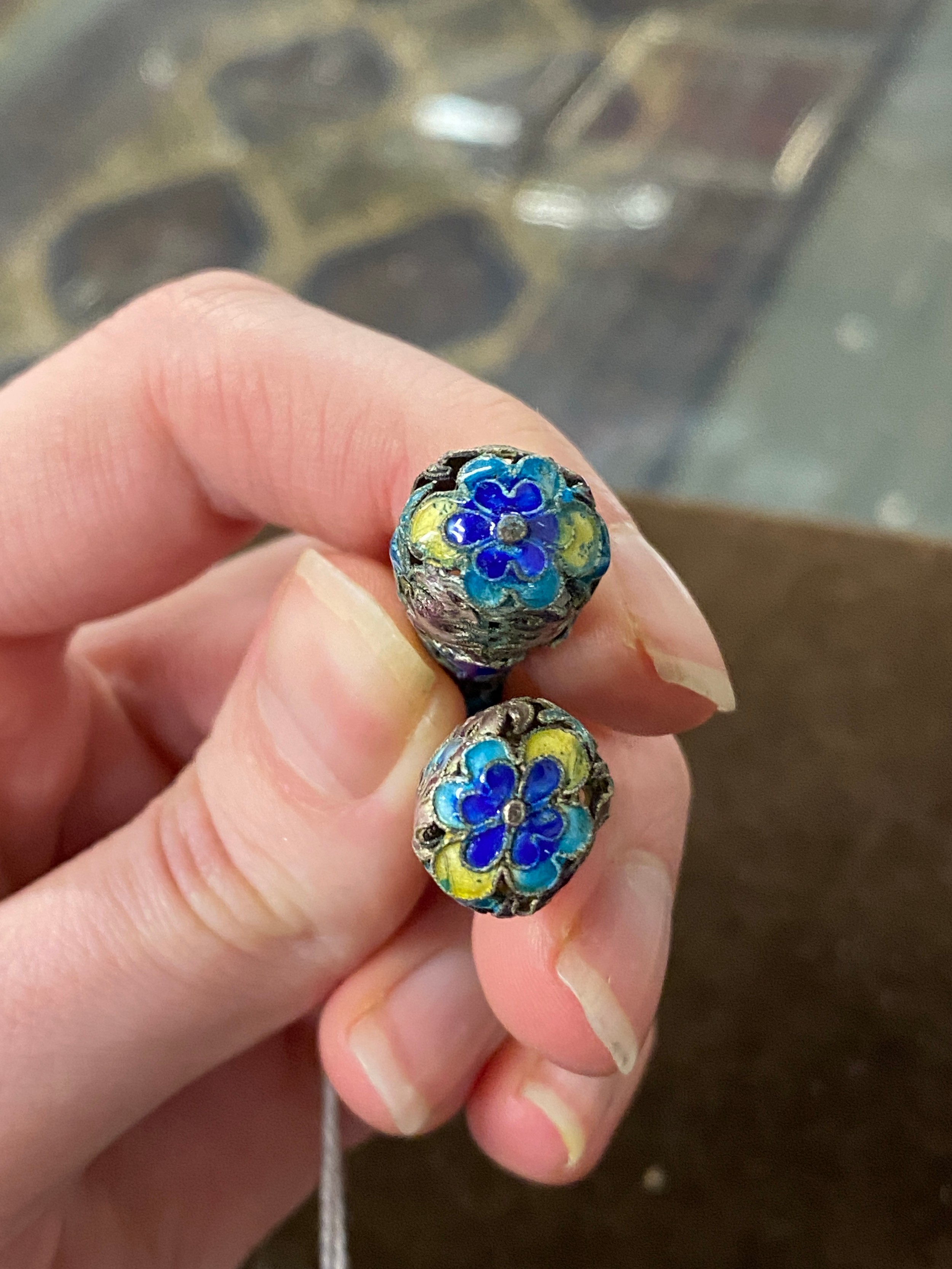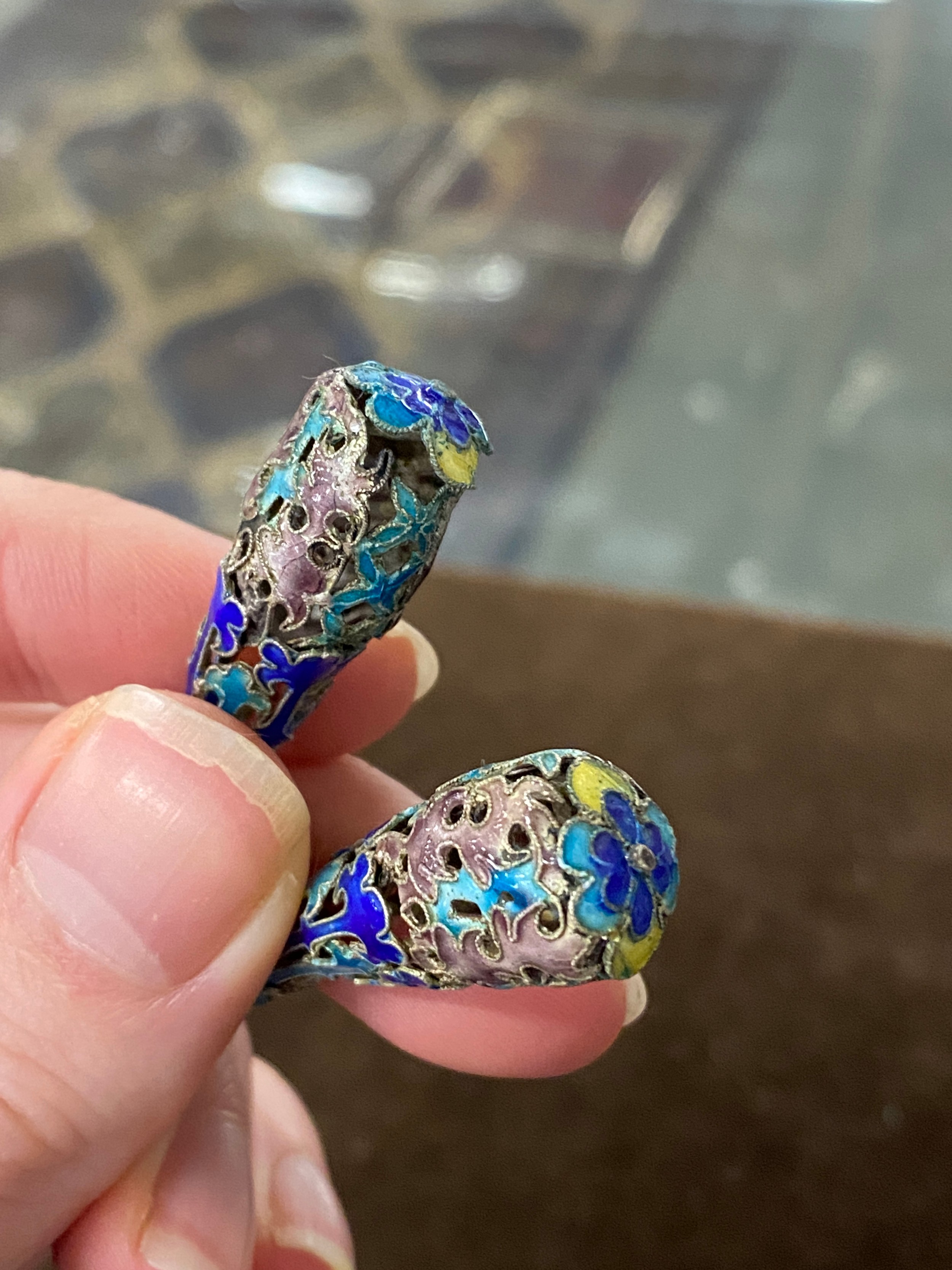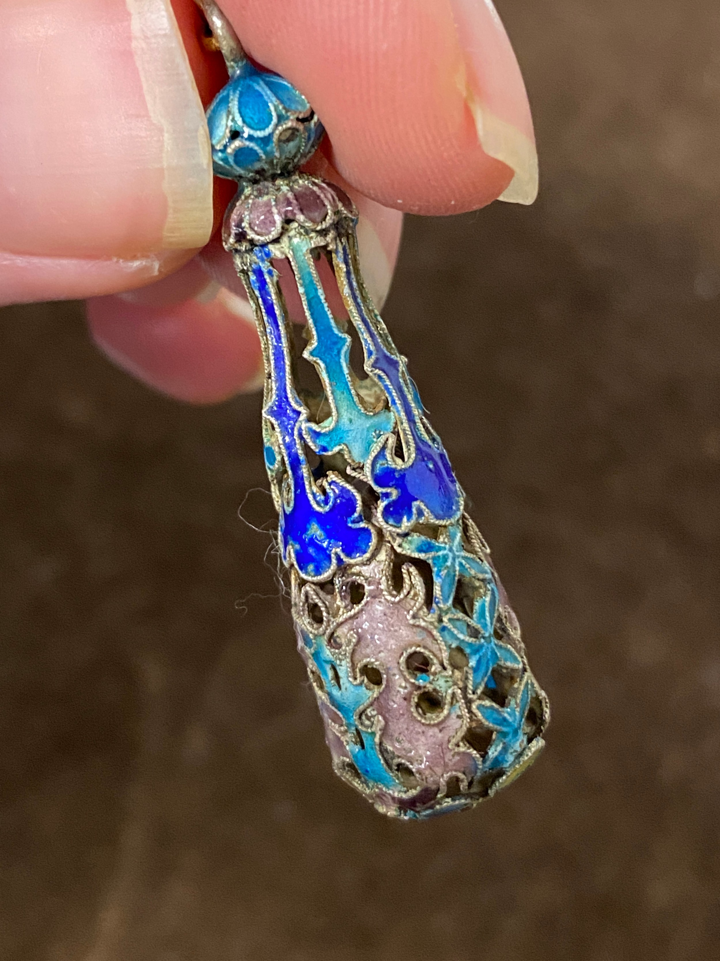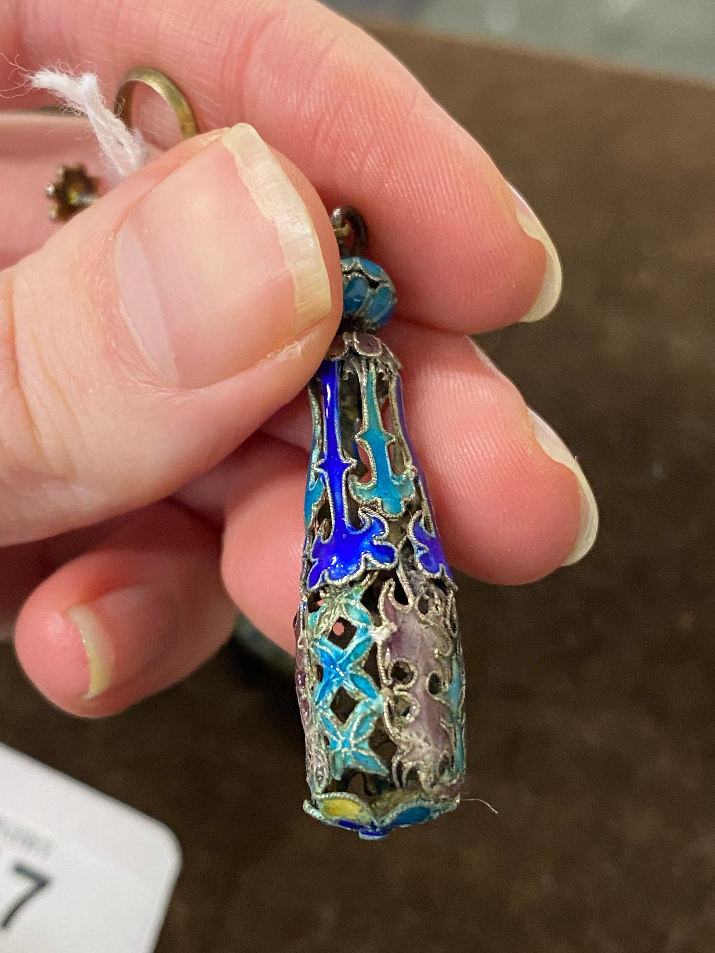 A pair of early 20th century Chinese export cloisonne enamel screw back earrings, 6.8cmL