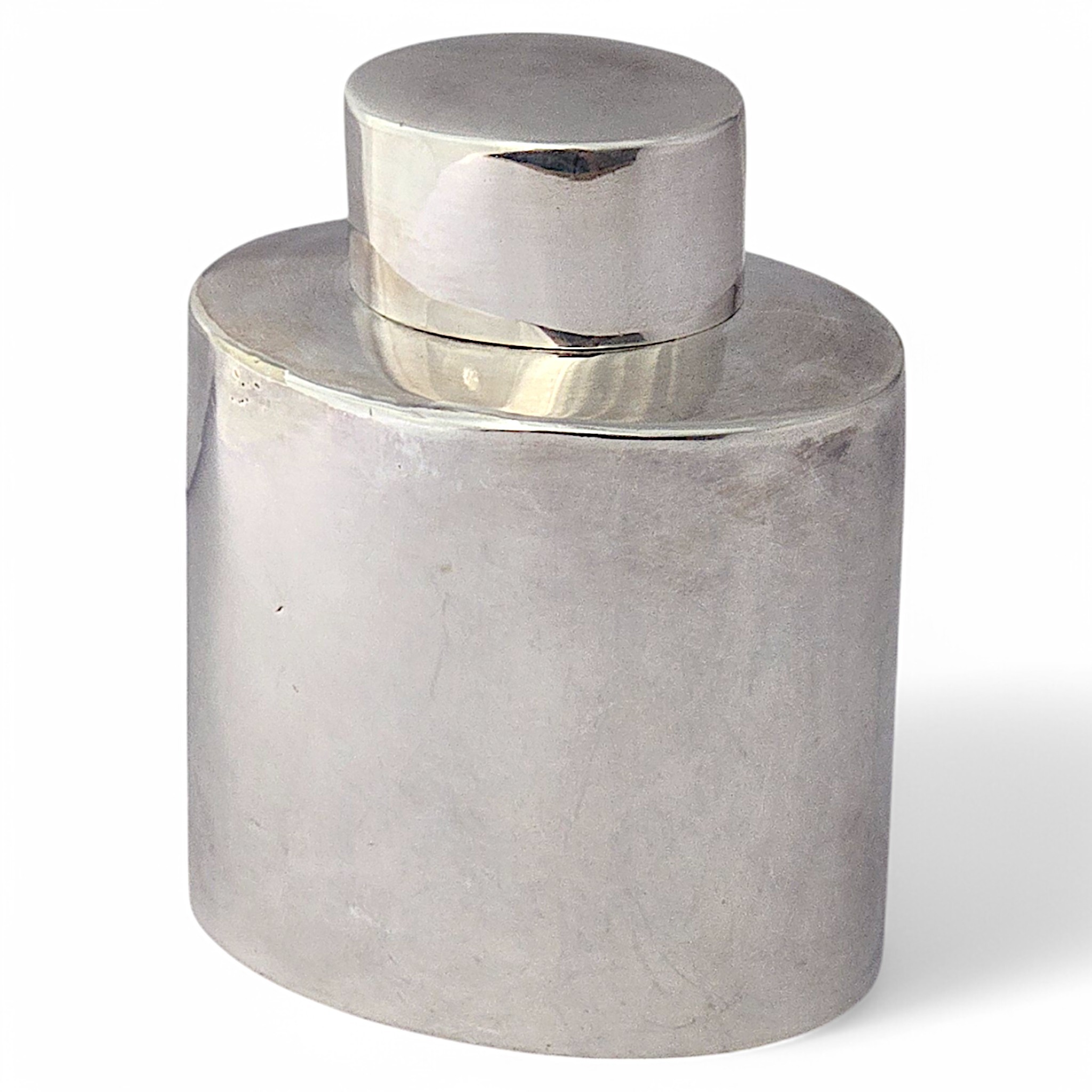 Small silver tea caddy of plain form, Sheffield assay. 61.9gms. Shipping group (A).