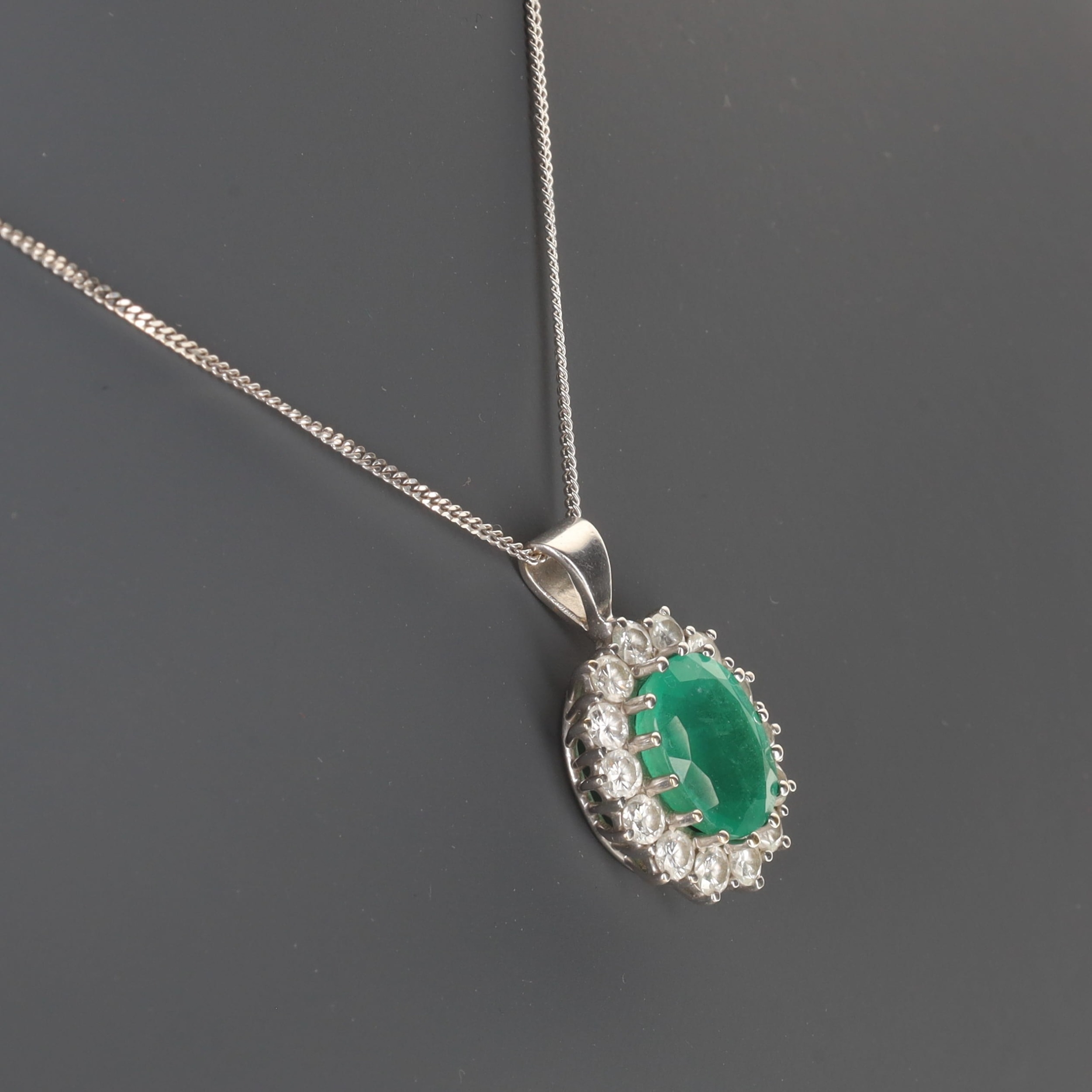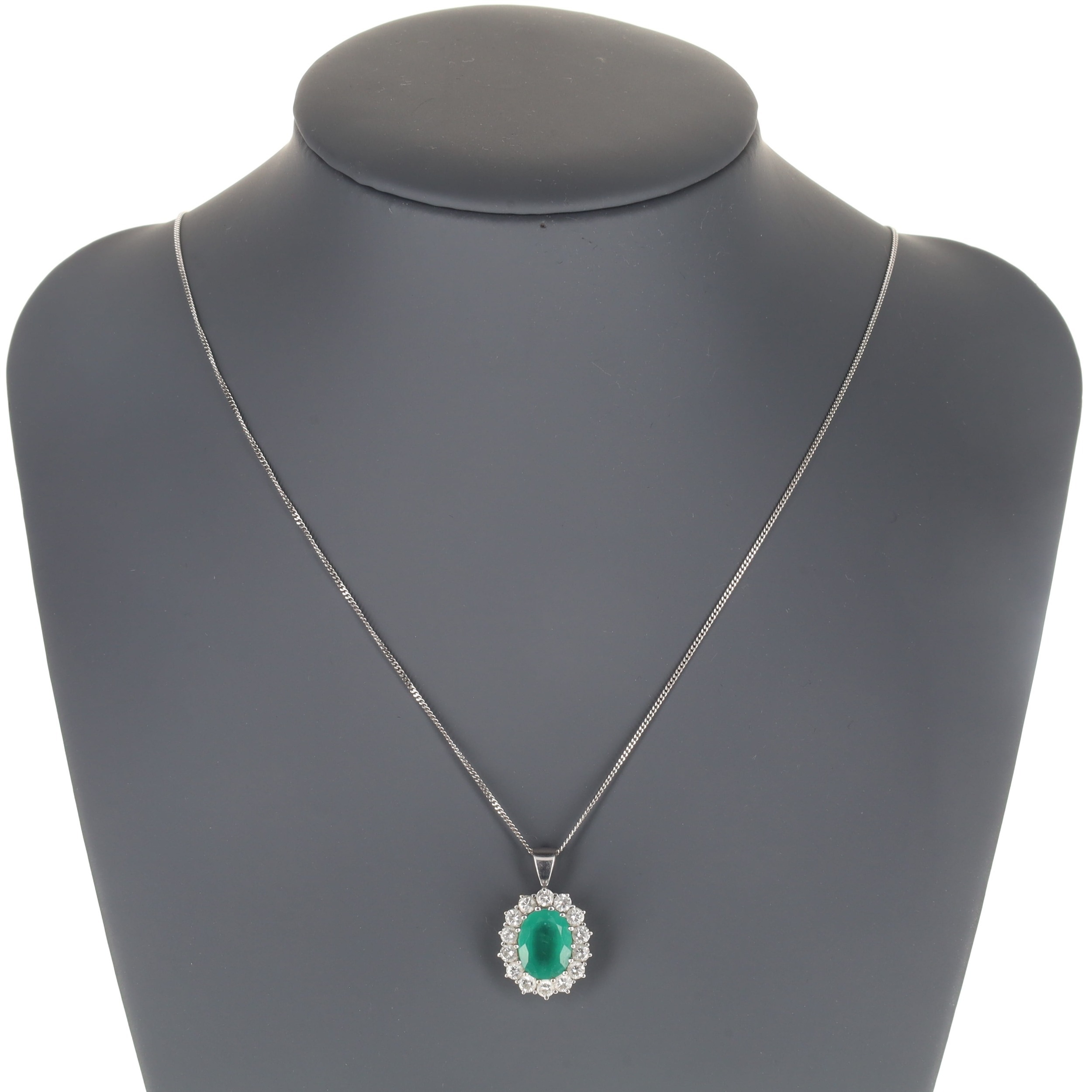 Emerald and Diamond Cluster Gold Pendant Necklace