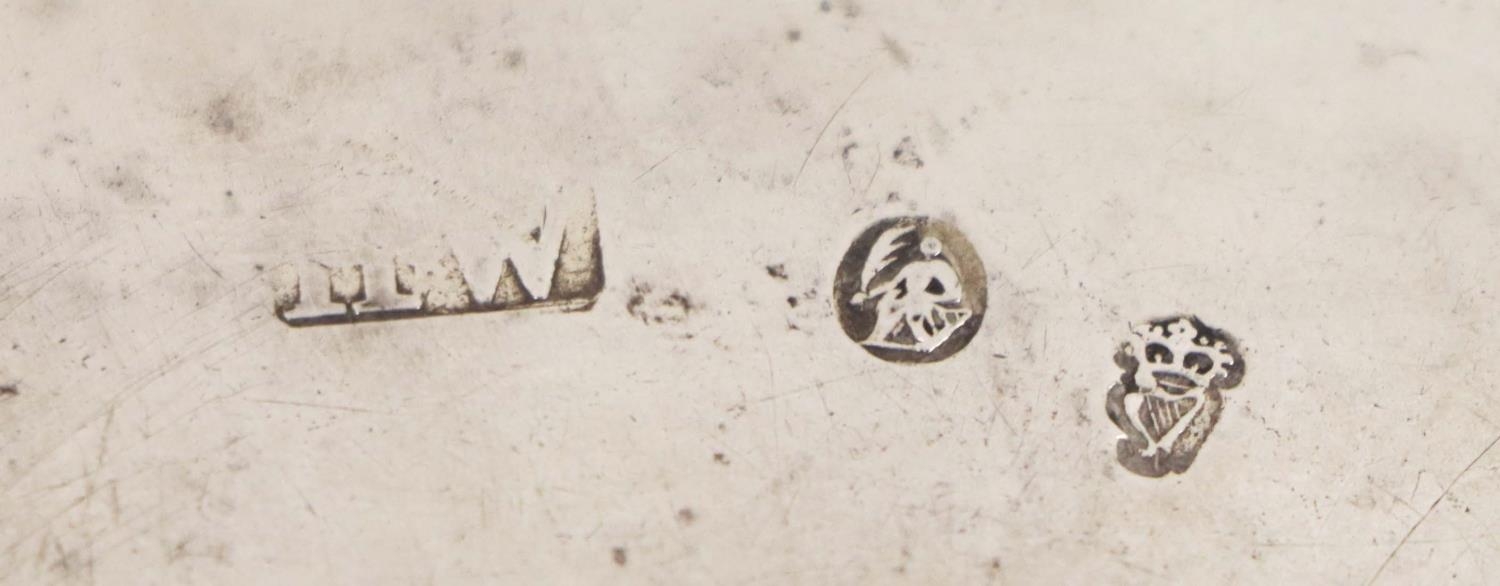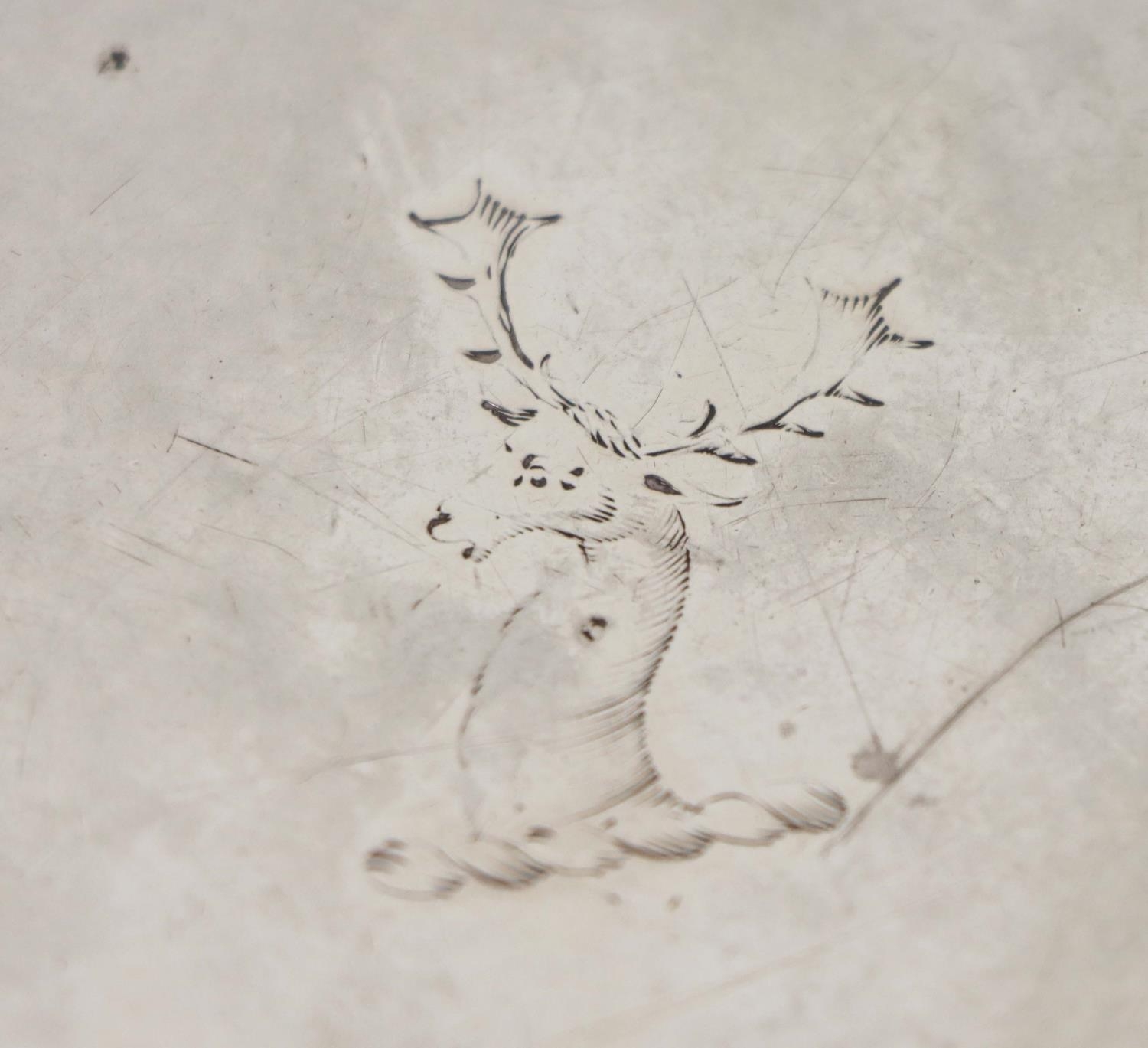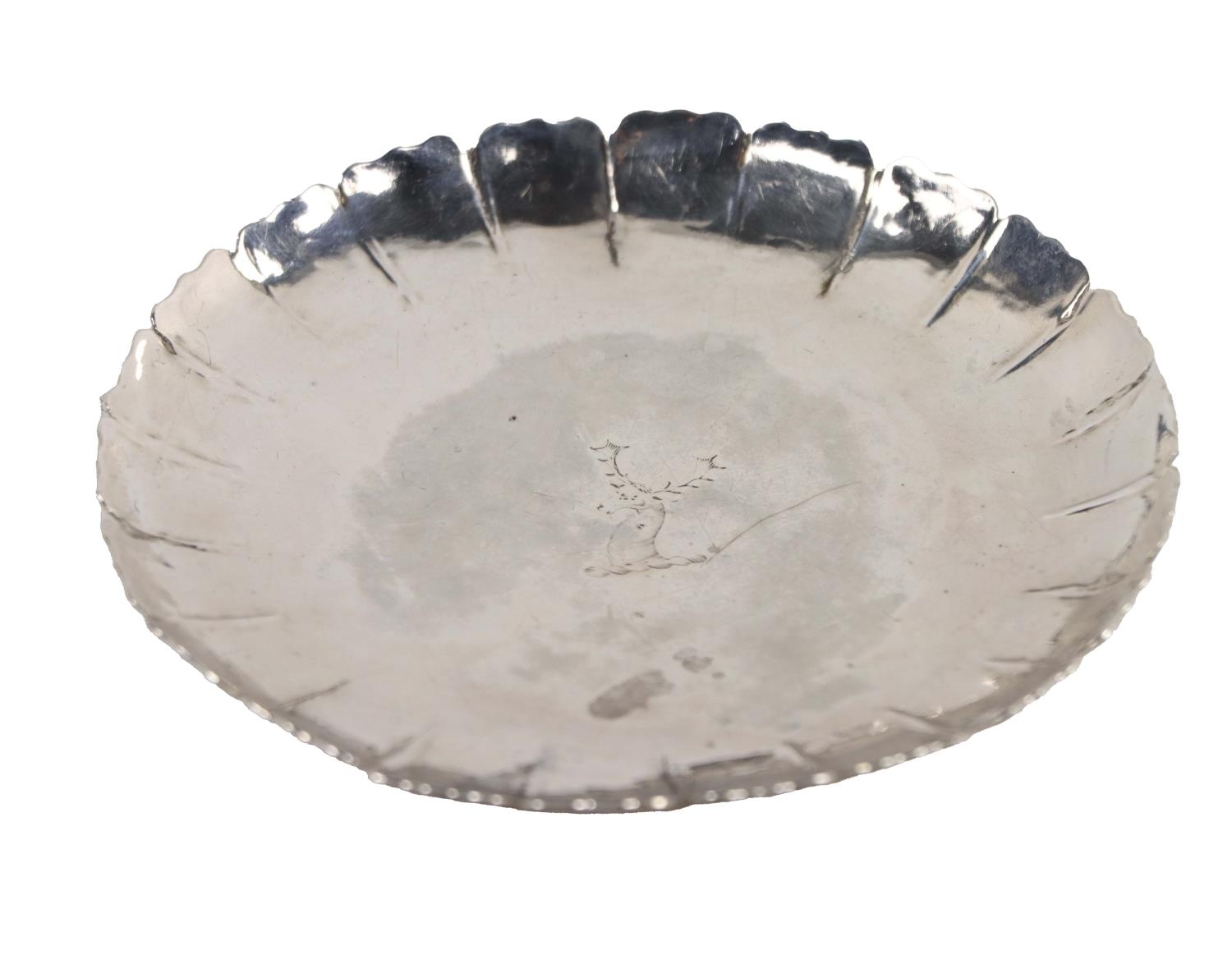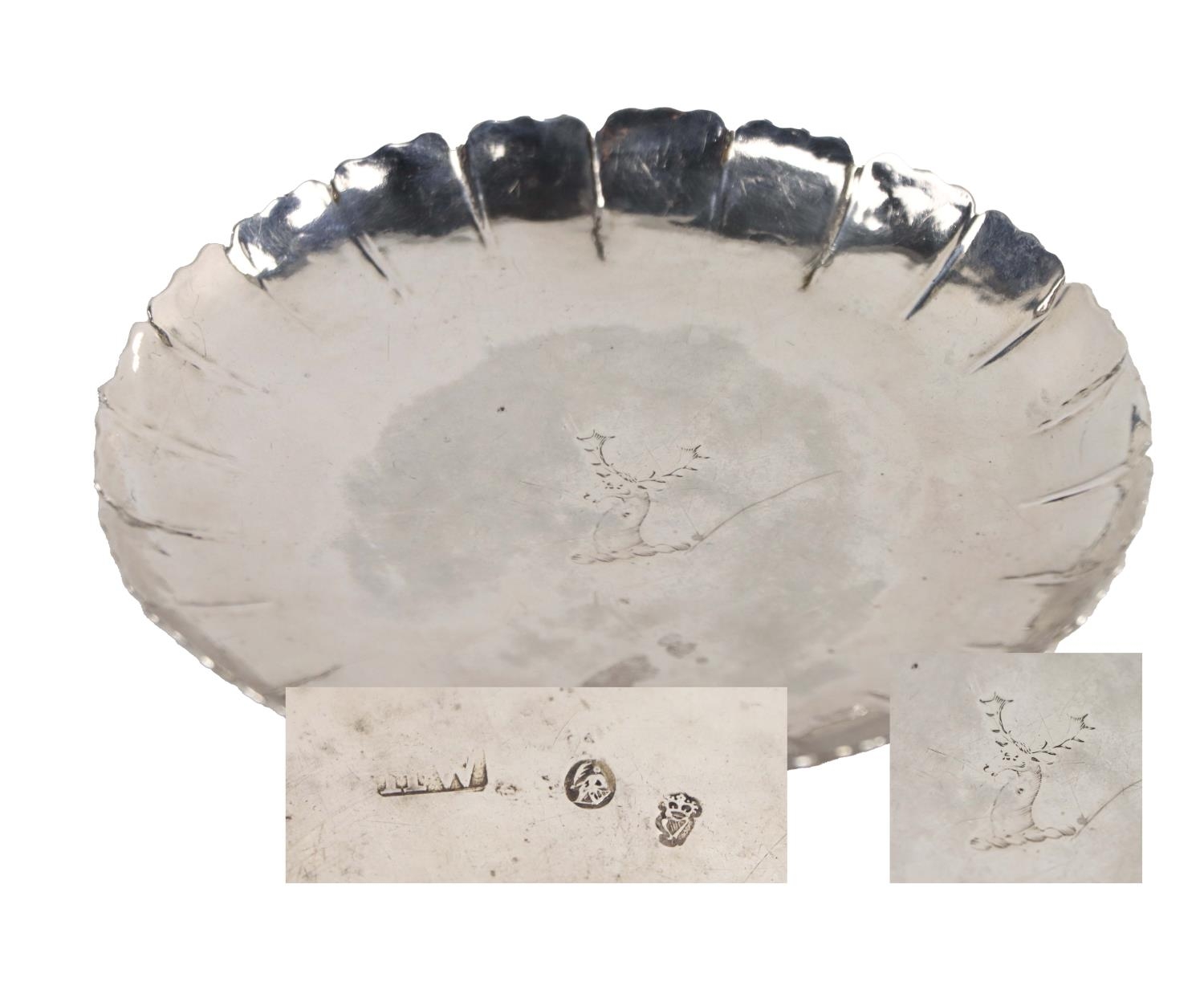 An Irish Georgian silver crested Strawberry Dish, with shaped border and engraved 'stags' head center, hallmarked Dublin, 'M. * W.,'(possibly Matthew West) approx. 13.5cms (5 1/4") diameter, 2.85 ounces. (1)
