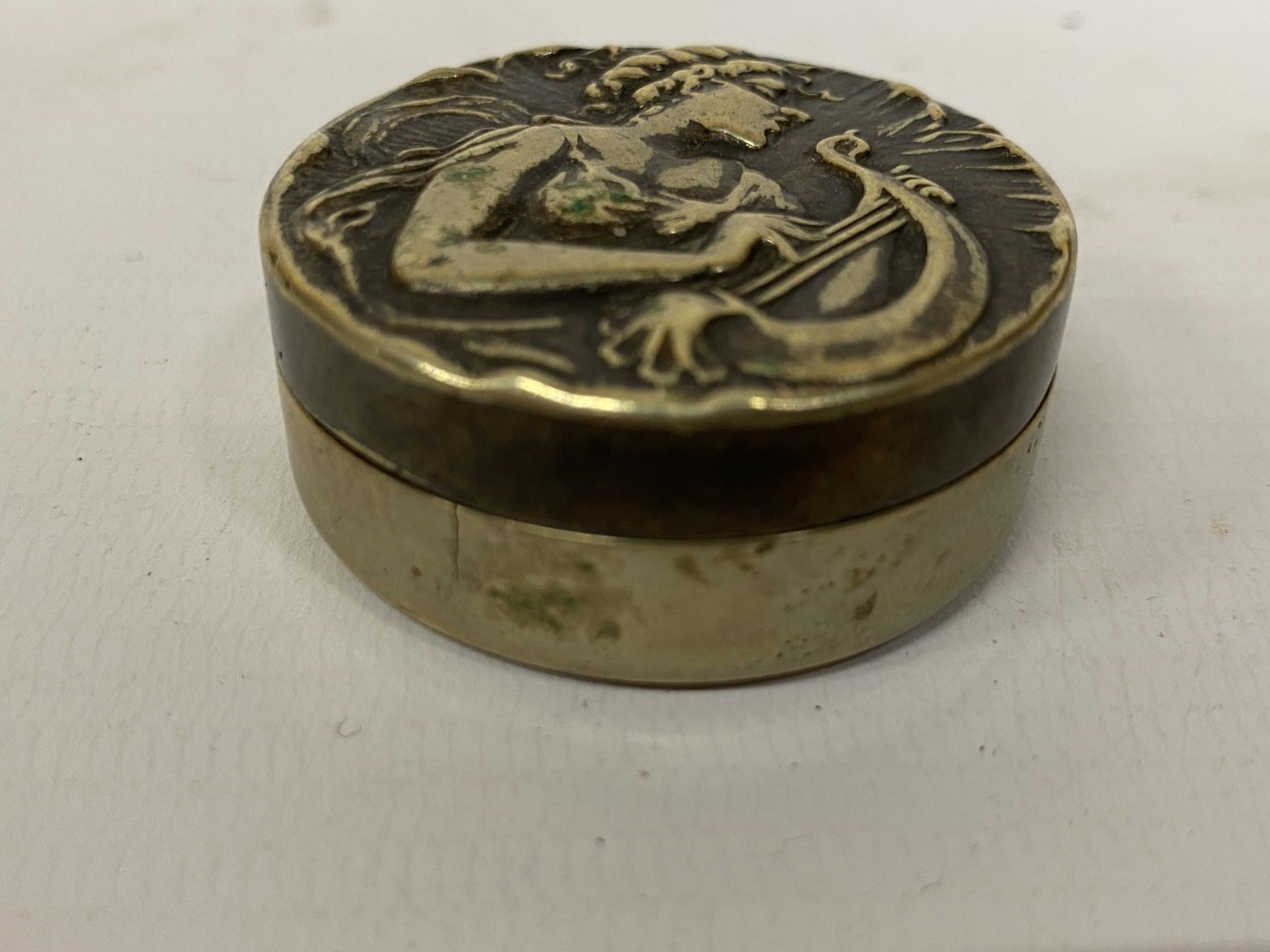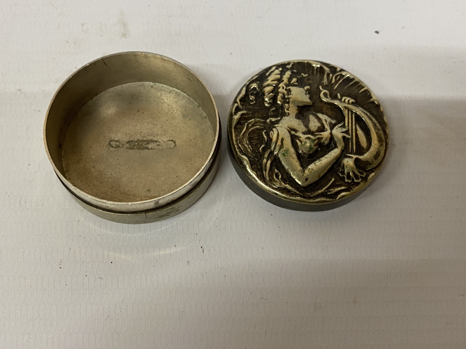 AN ANTIQUE ART NOUVEAU WHITE METAL PILL BOX