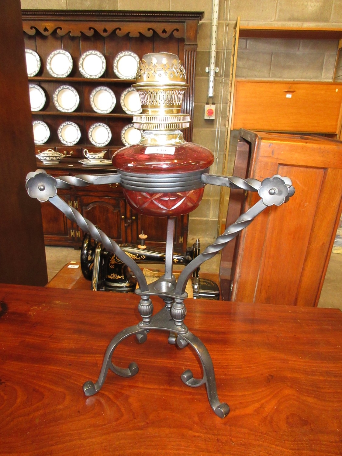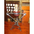 Aesthetic Design Ruby Glass and Blackened Brass Oil Lamp