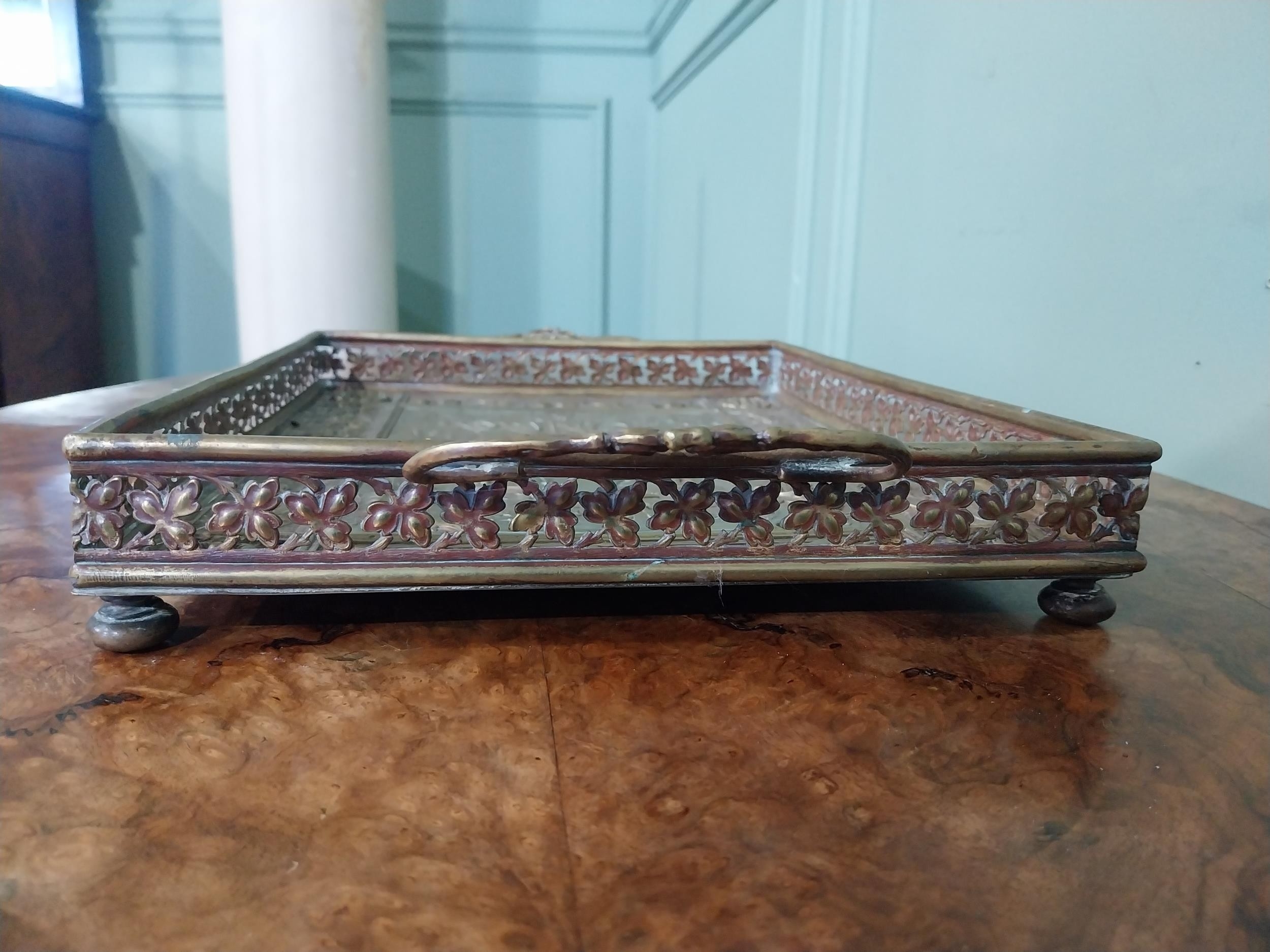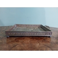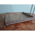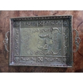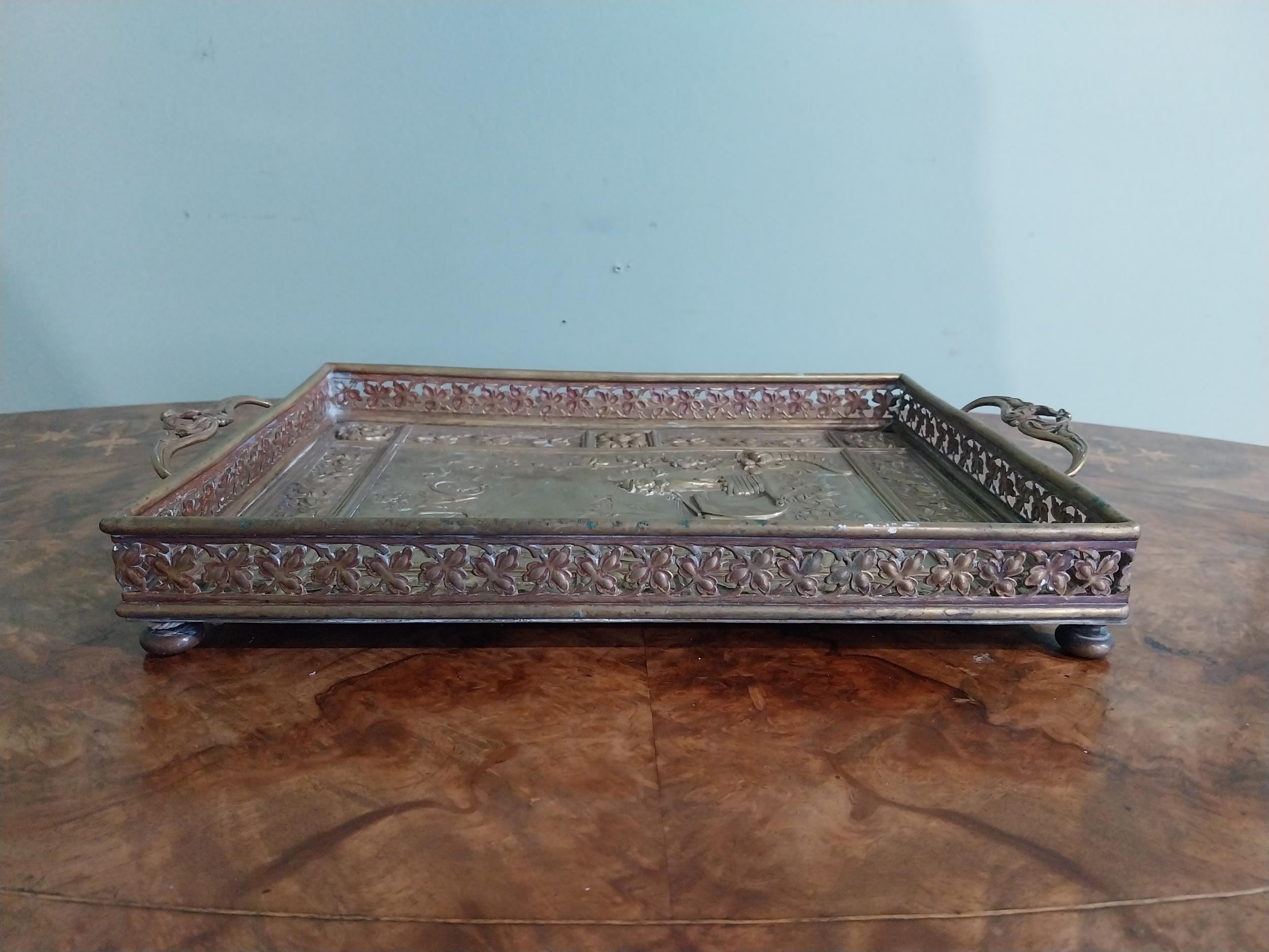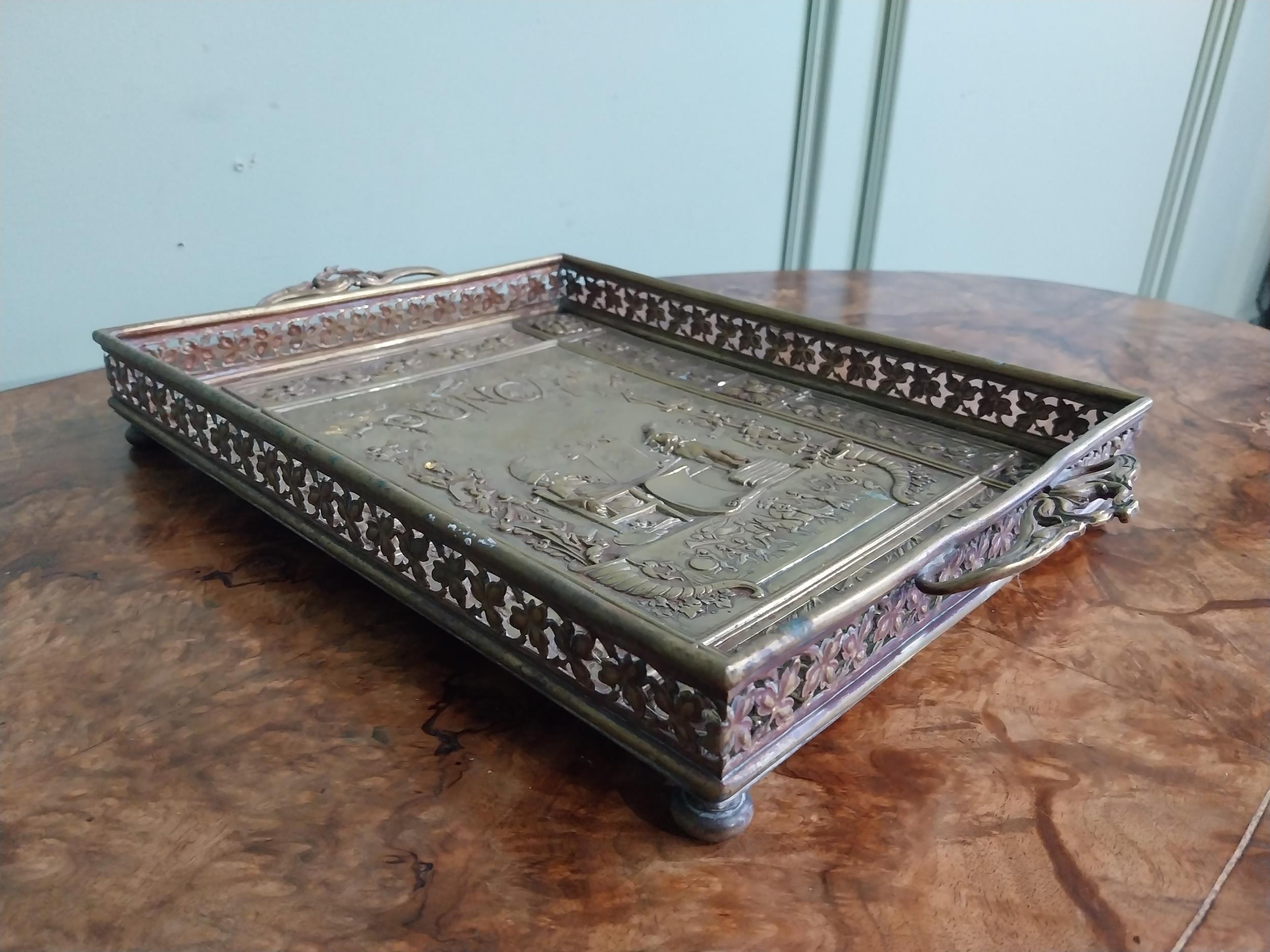 Edwardian embossed brass Punch and Judy serving tray. {5 cm H x 36 cm W x 23 cm D}.