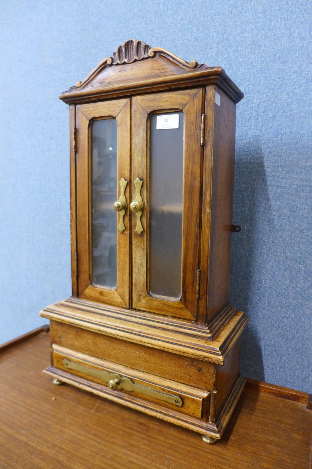 A miniature French fruitwood armoire, 63cms h