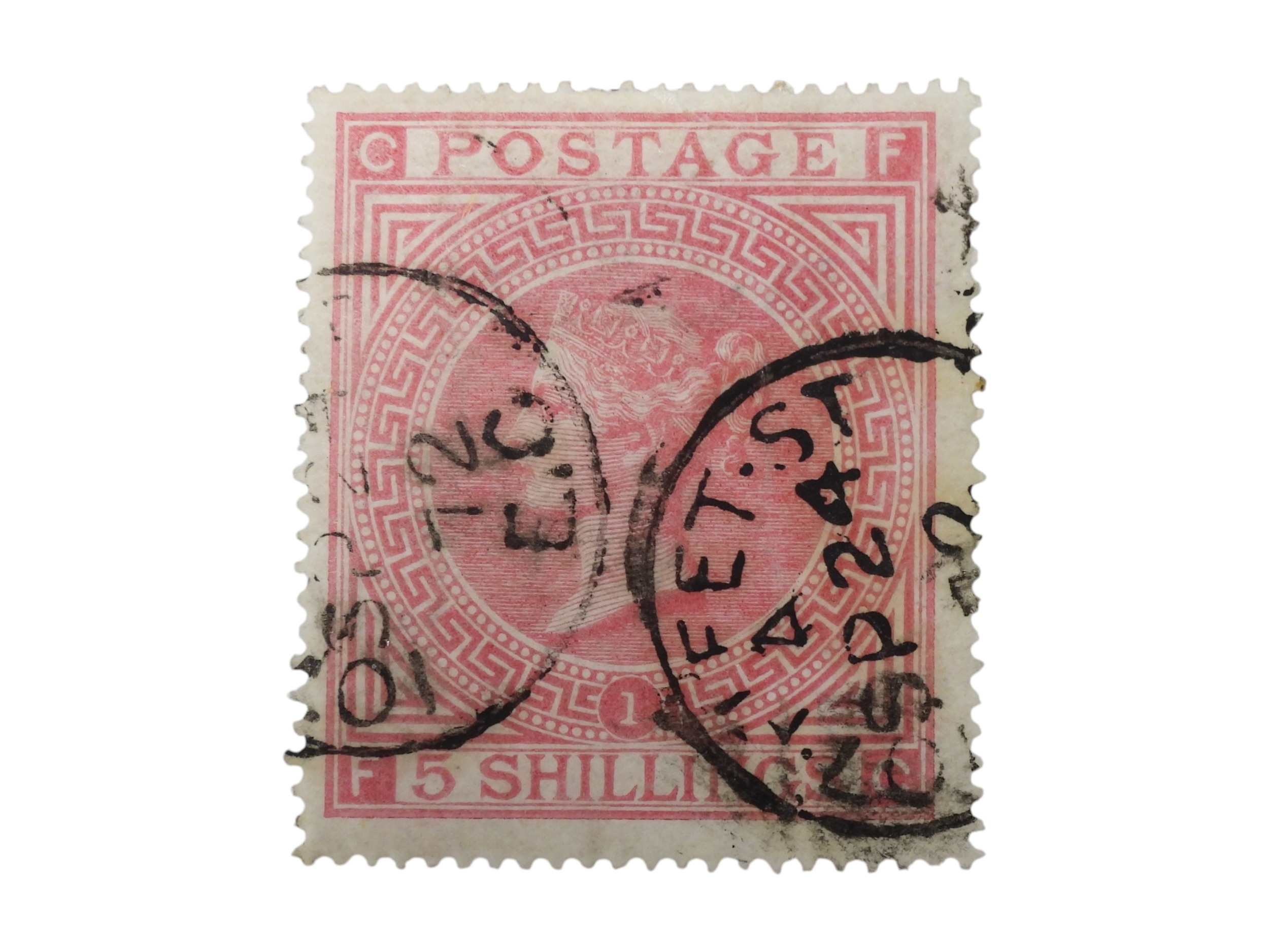 Great Britain 1867 SG 126 5/- Rose Plate 1 with 102 FLEET street CDS cancel Cat £500