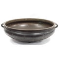 A Large XIX Century Indian or South Asian Bronze Twin Handled Circular Urli, 59cm diameter. N.B. A similar item sold at Christie's for £7500 on 20th June 2013.