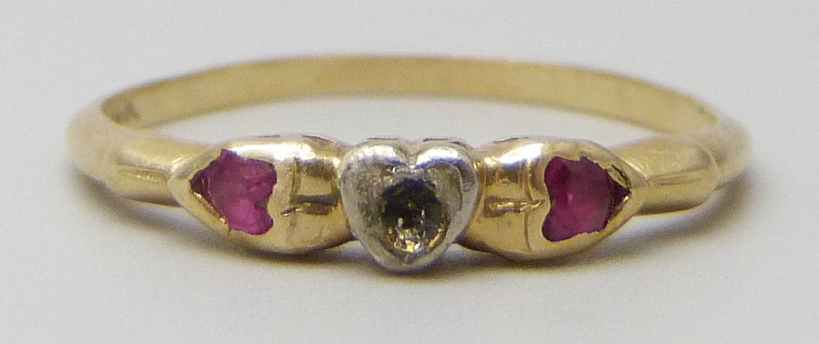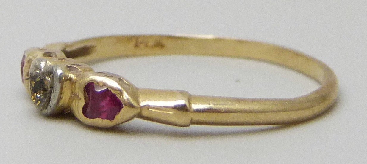 A 14k gold and ring, a/f central stone missing, 1g, N