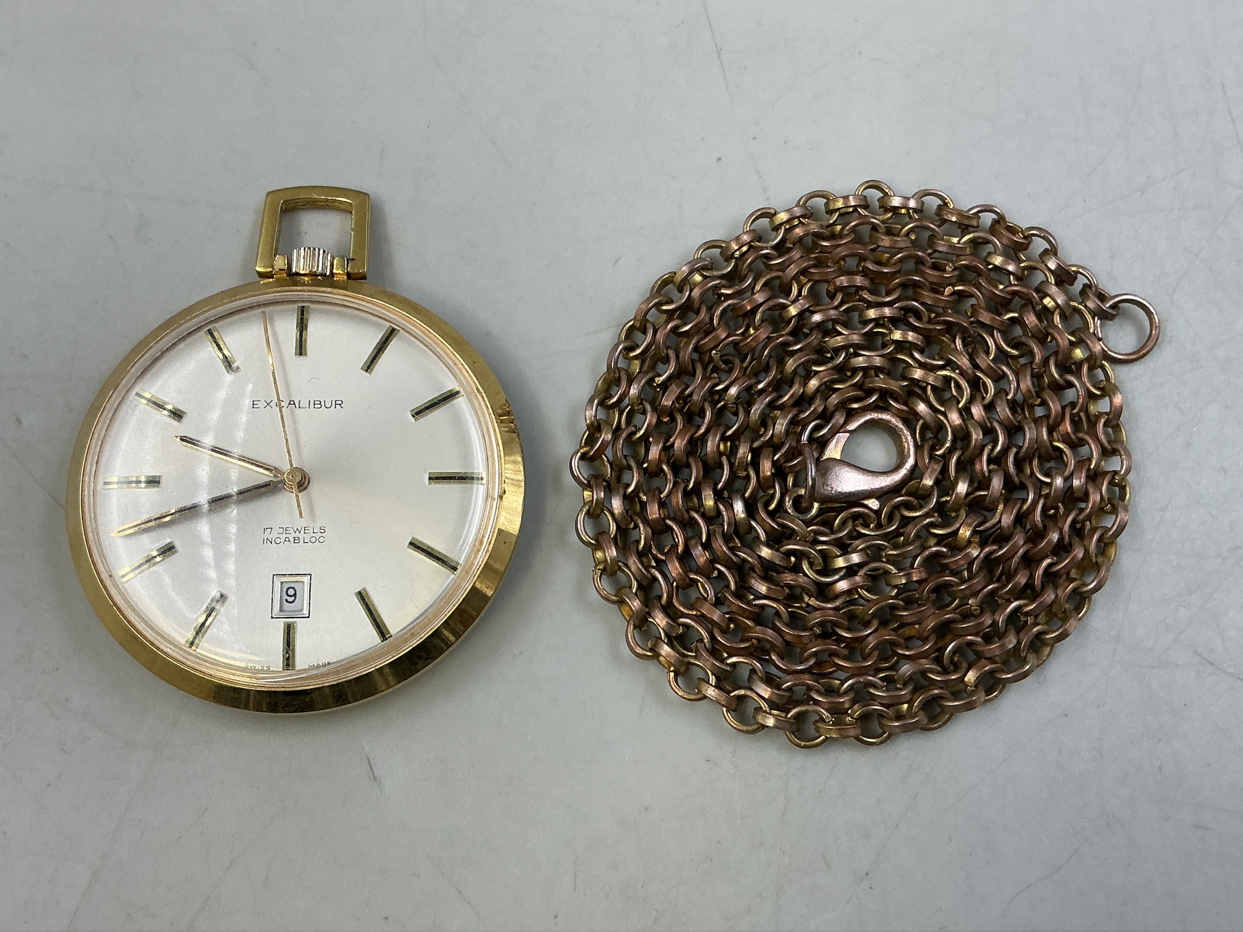 Excalibur 17 Jewels Incabloc Ladies Gold Plated Pendant Watch with Chain (Working)