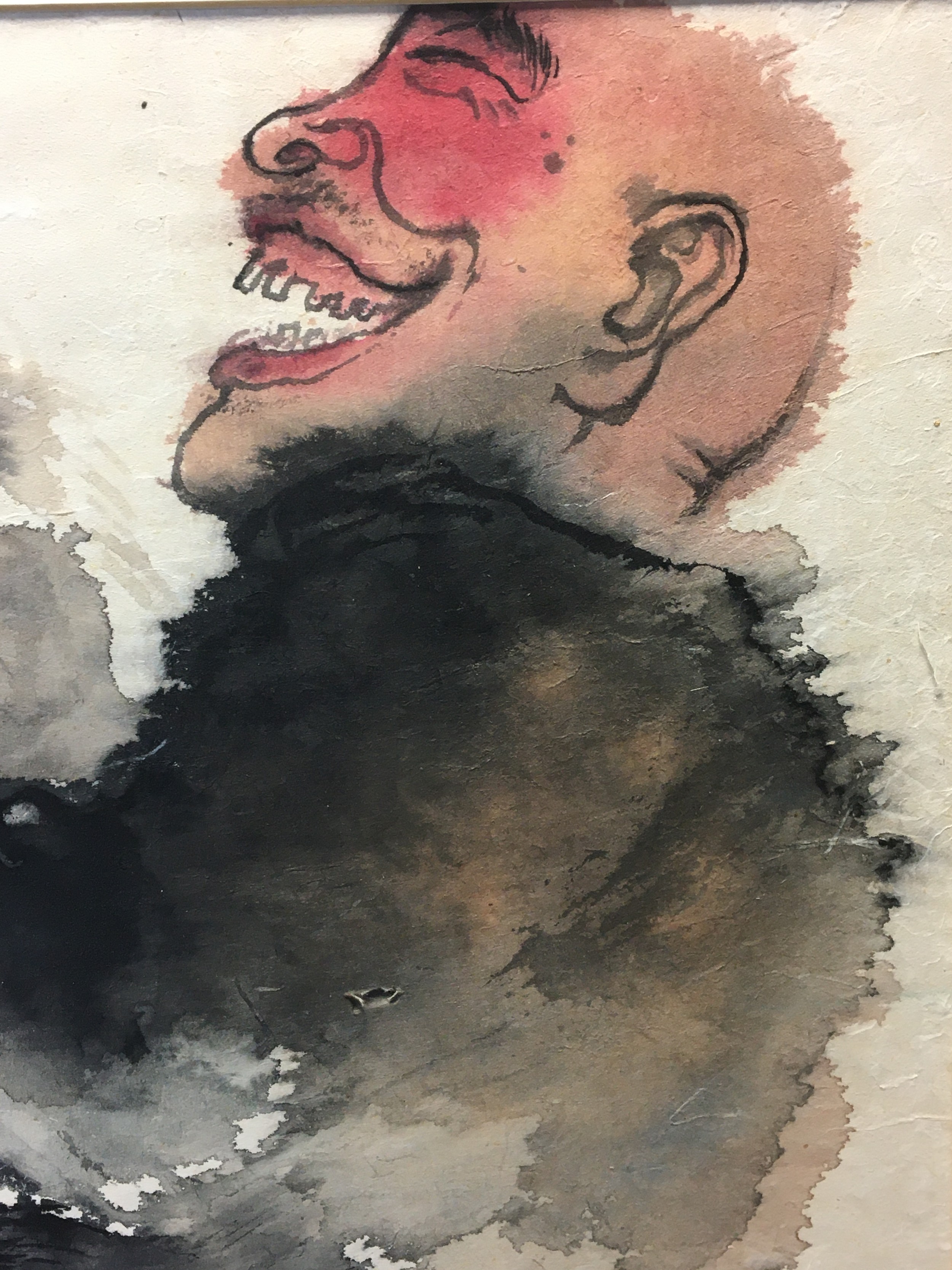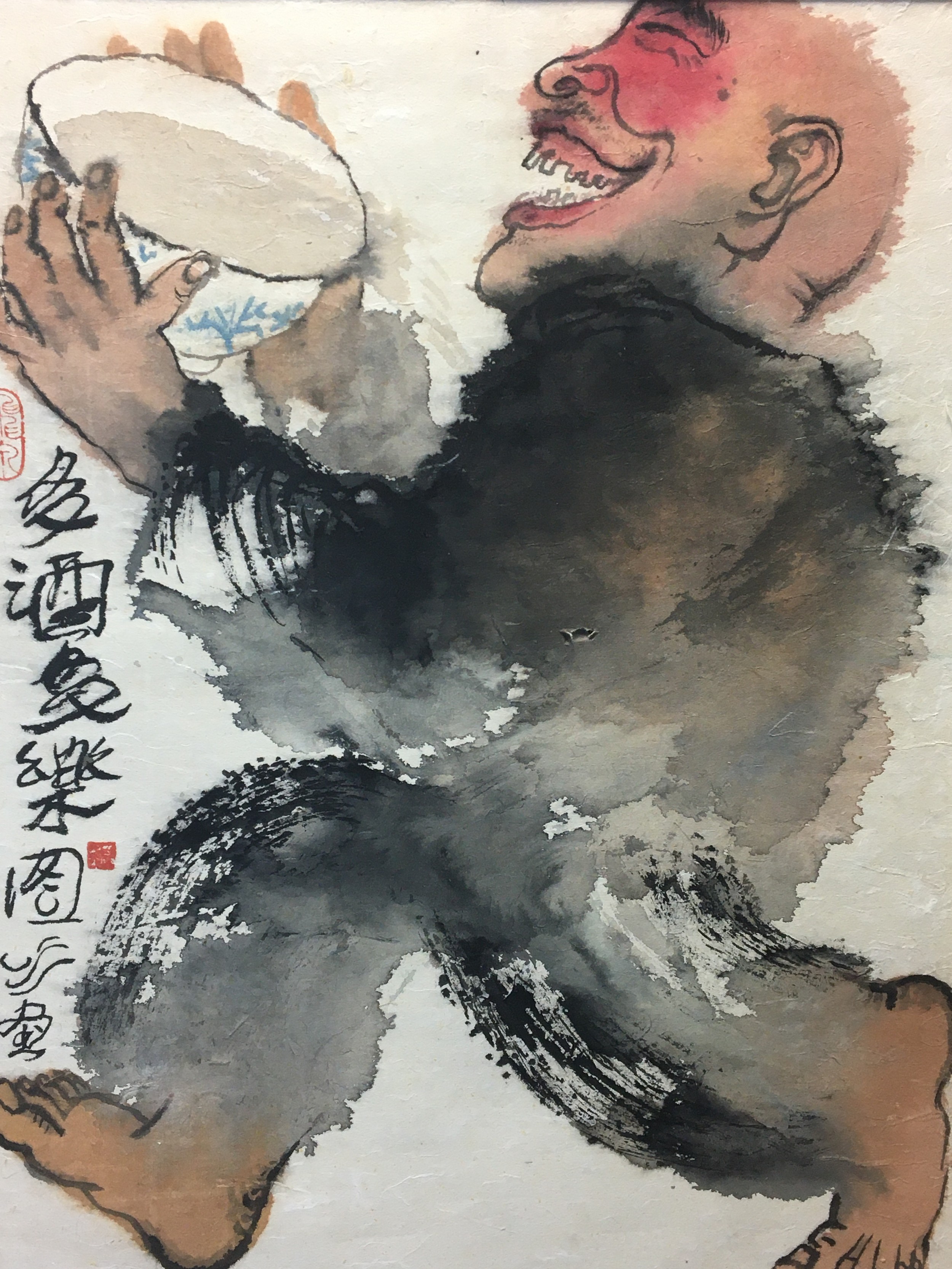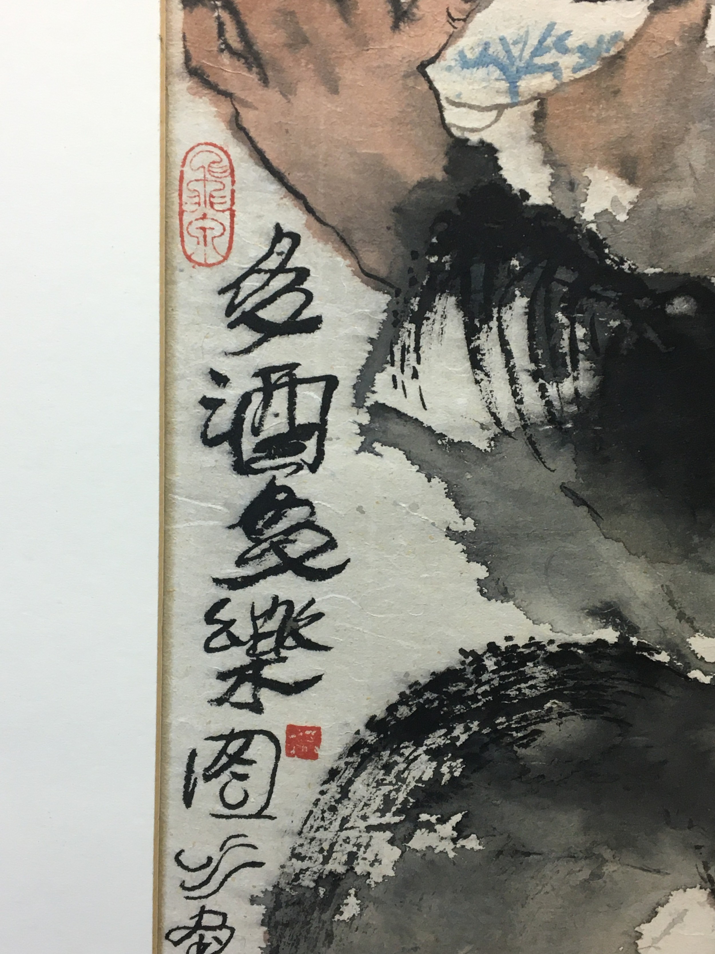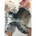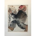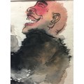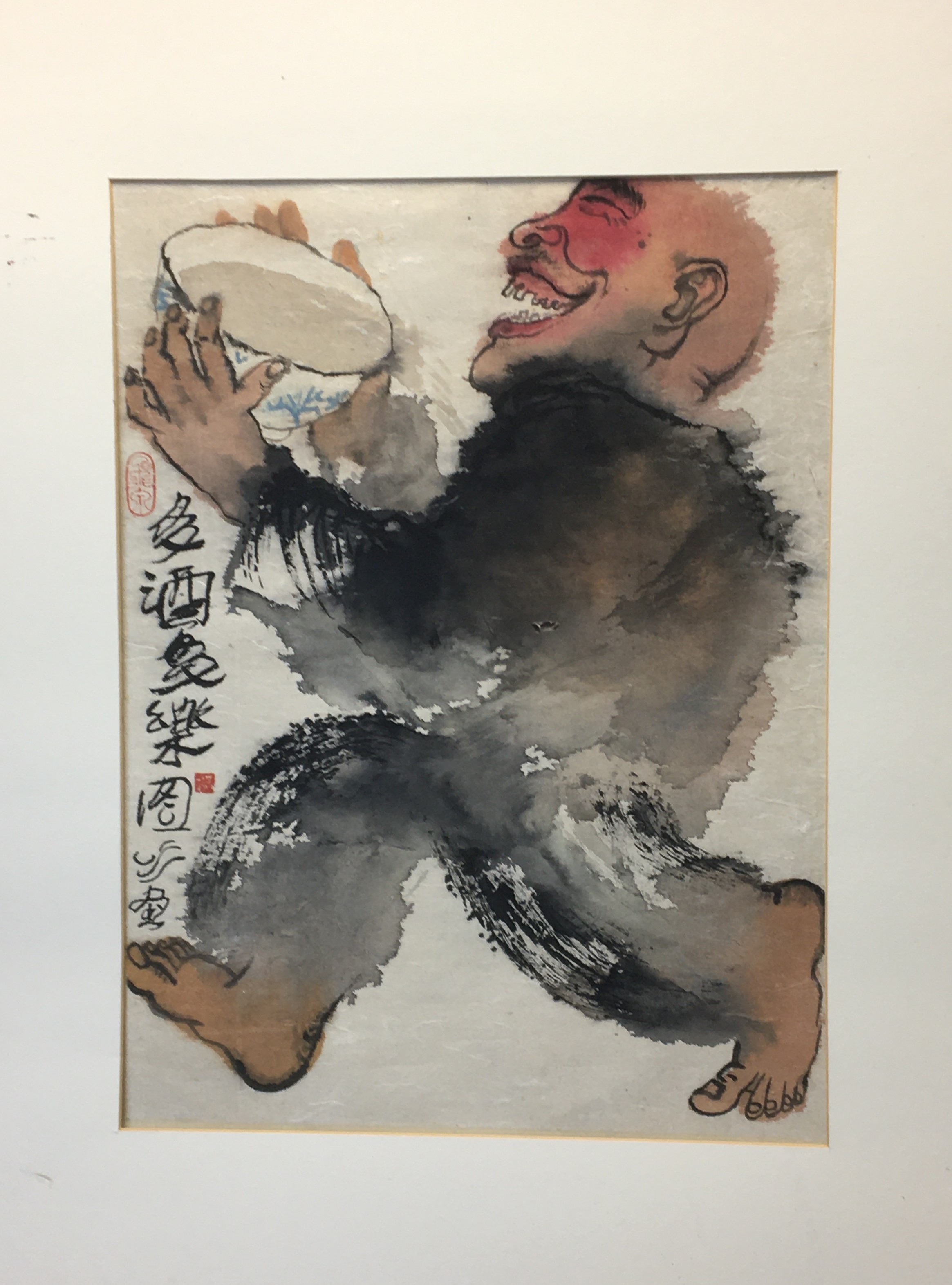 Large Japanese Watercolour on a thin Papyrus Type Paper signed and Marked Titled " More Wine More Happiness" Carded But unframed.
