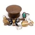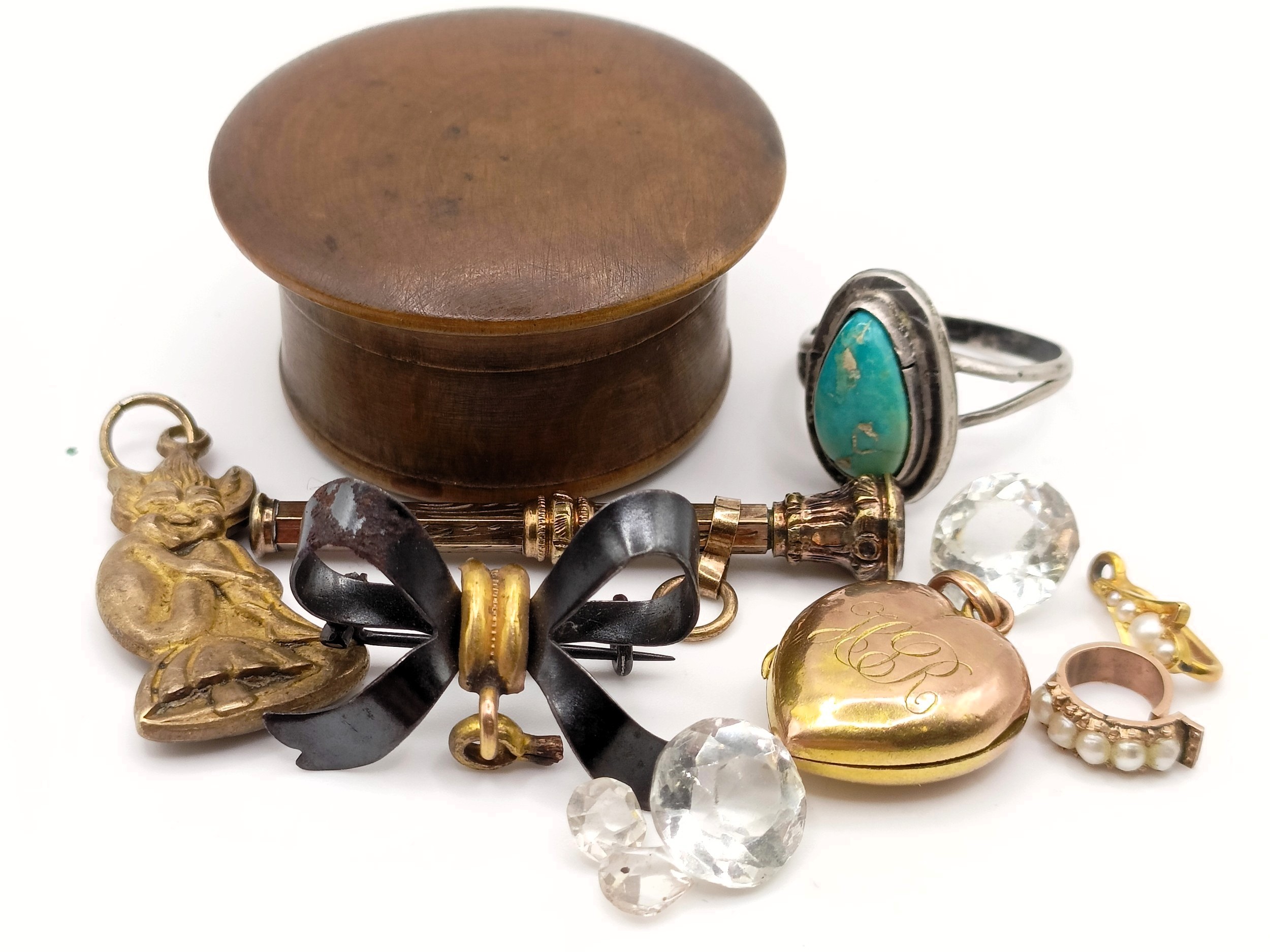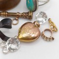 A heart shaped locket, two pendants, a gilt metal pencil, and assorted costume jewellery