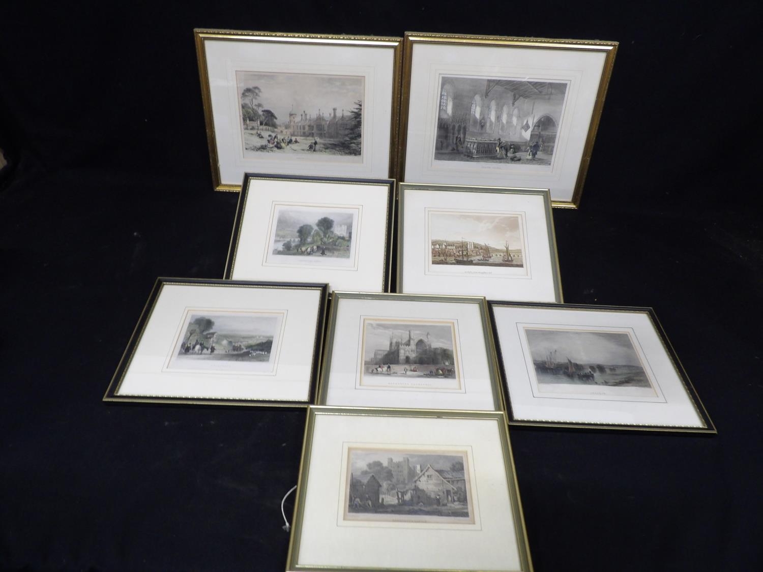 8 framed coloured engravings of Cobham and Rochester in Kent