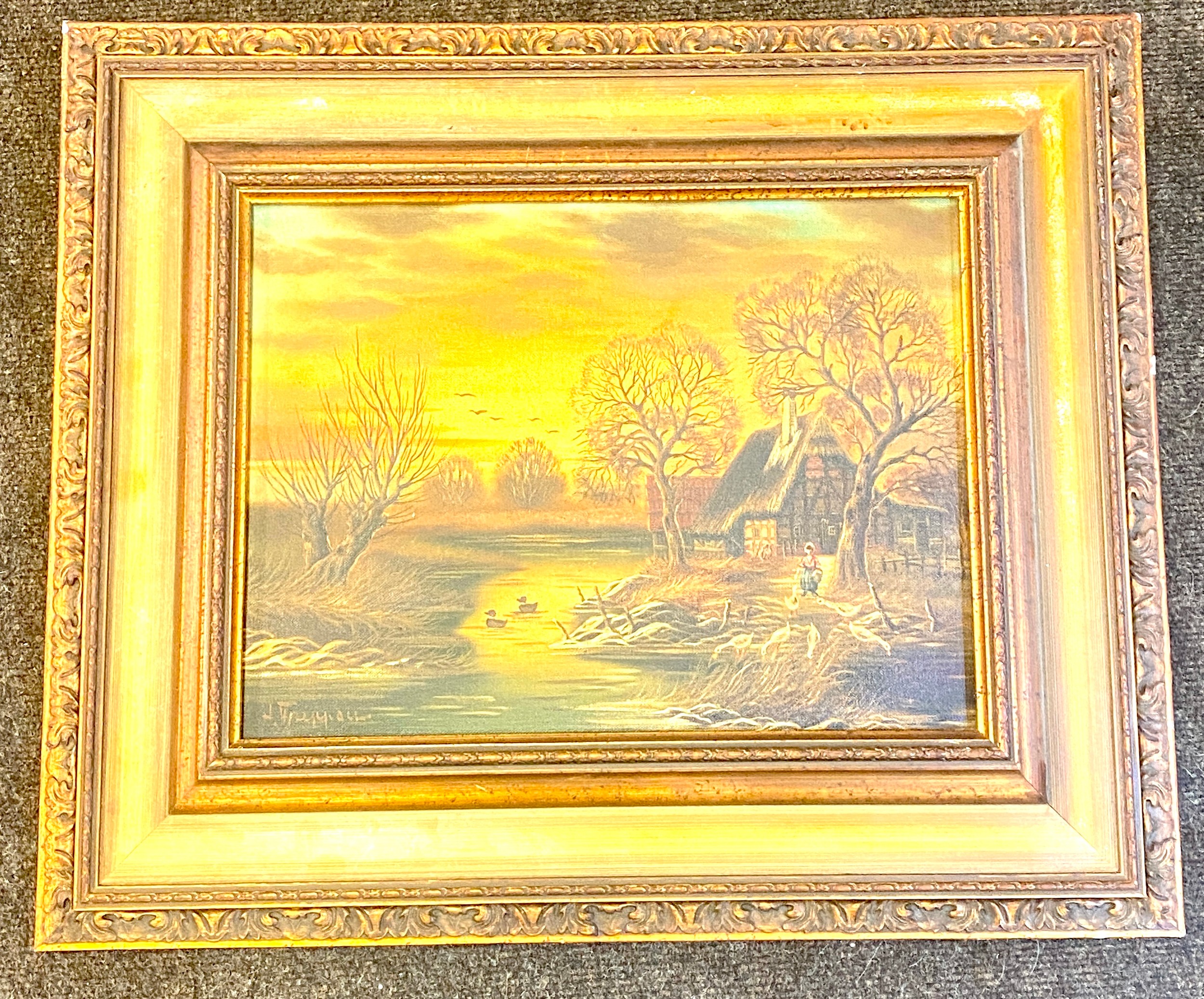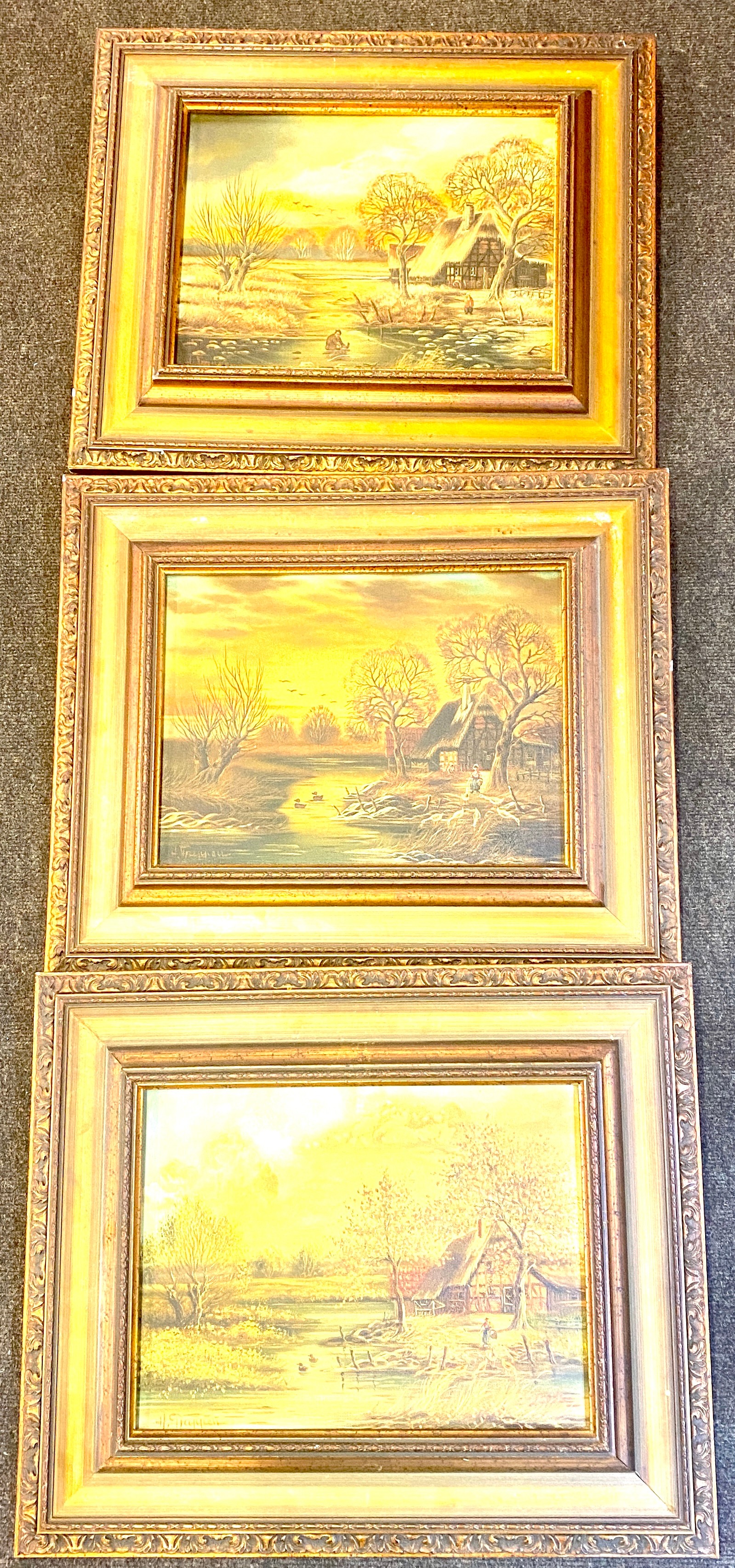 3 Signed wooden framed oil paintings on canvas, overall frame measurements: 23.5 by 19 inches