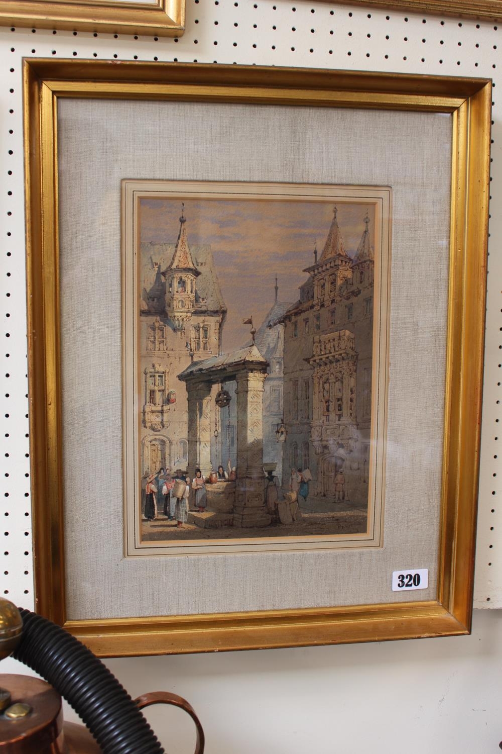 Samuel Prout 1783-1852; Watercolour 'Well at Nuremberg'. 22 x 31cm