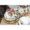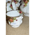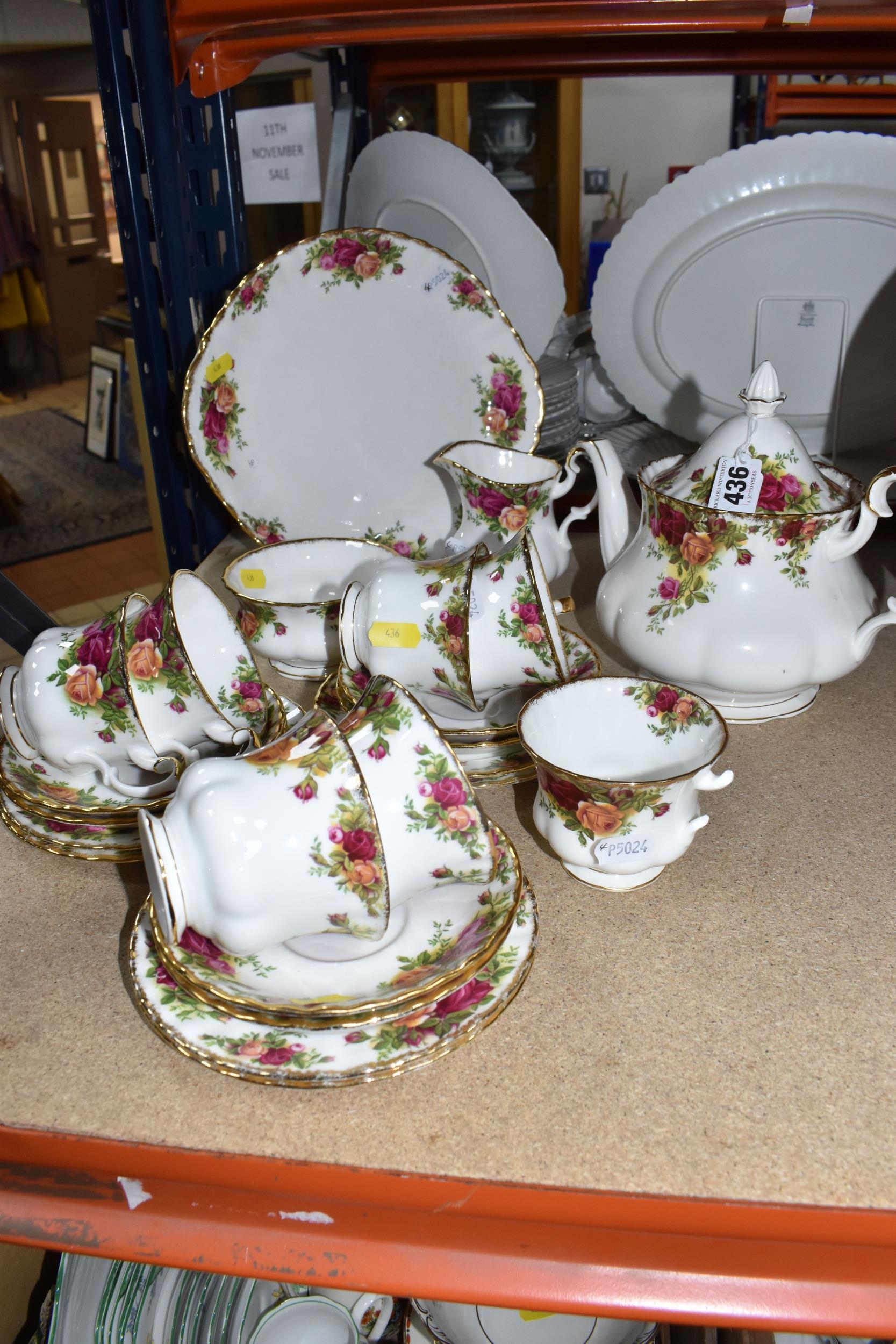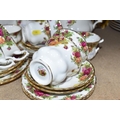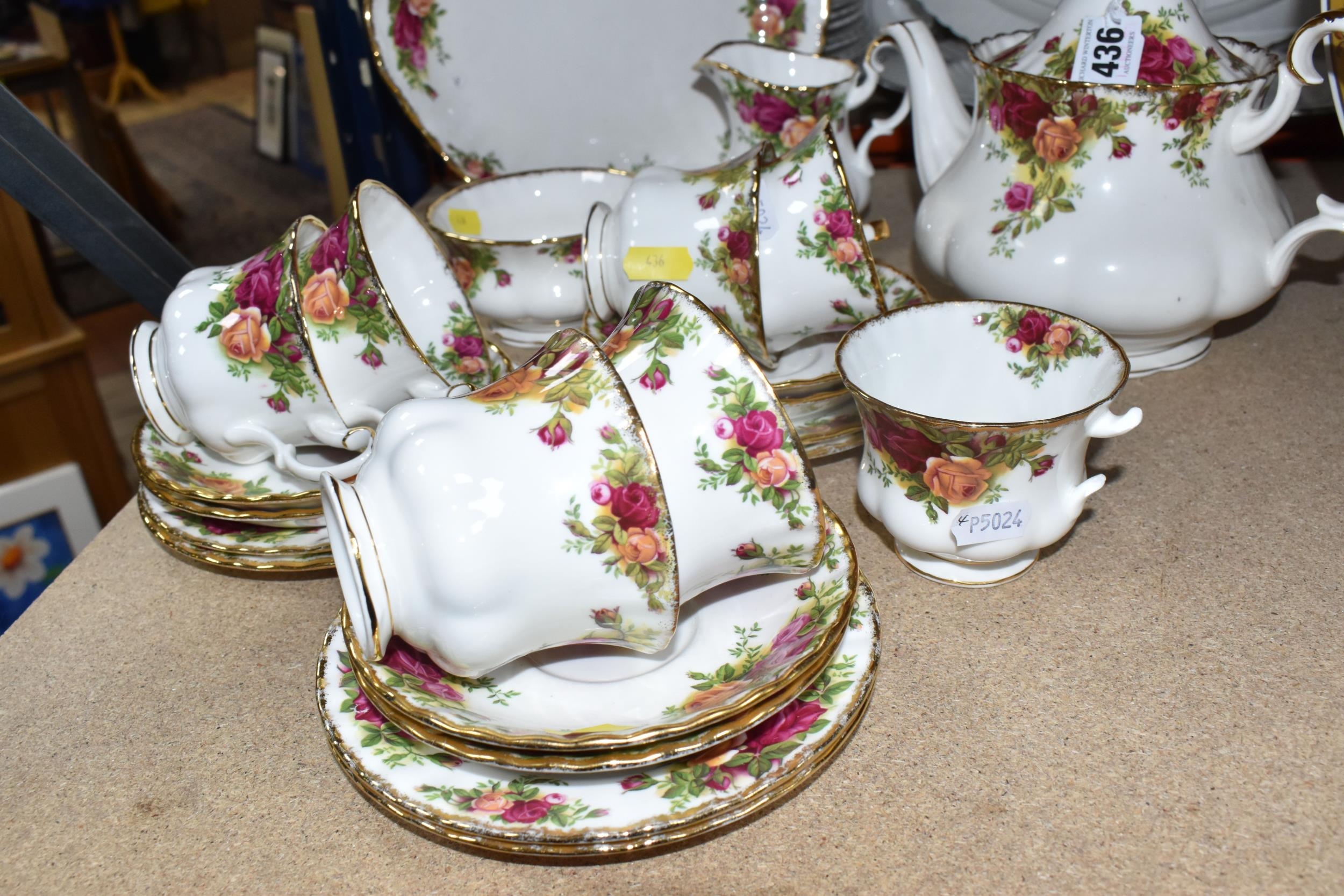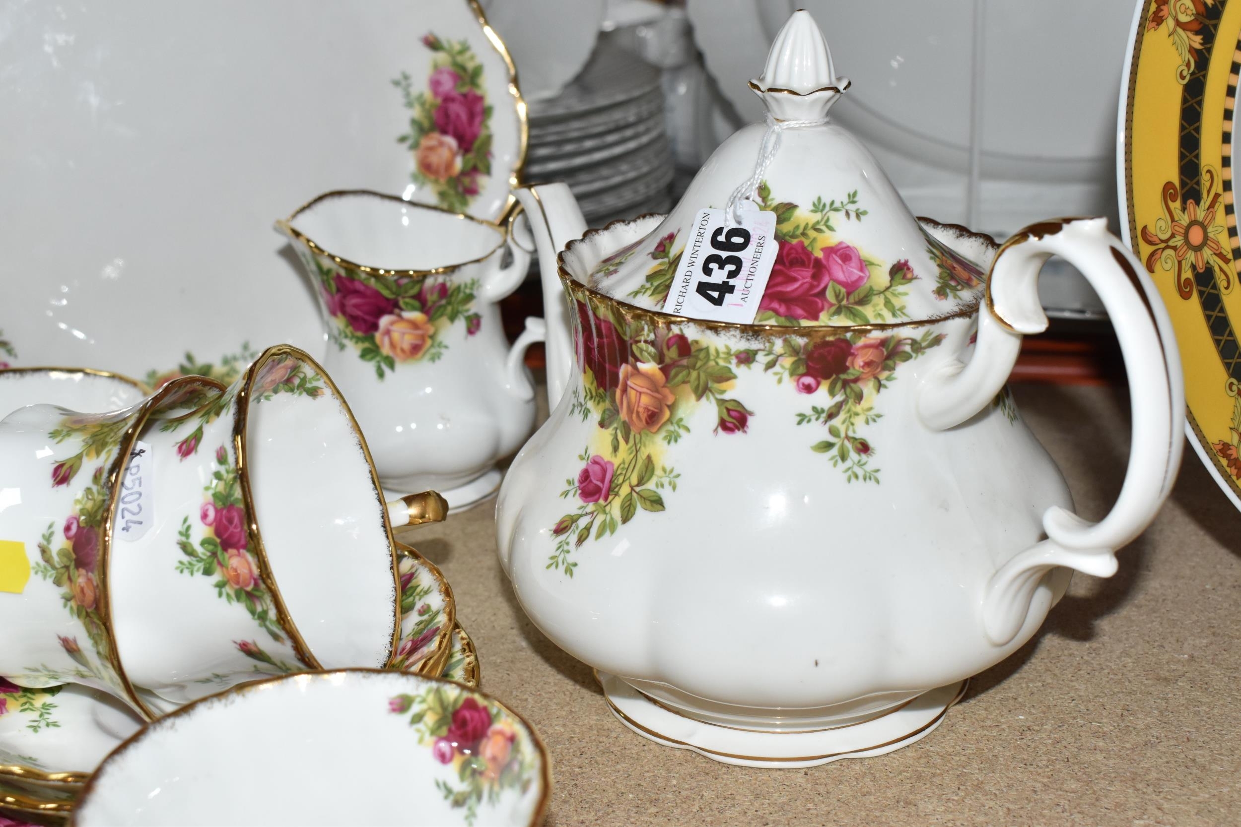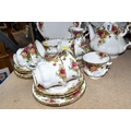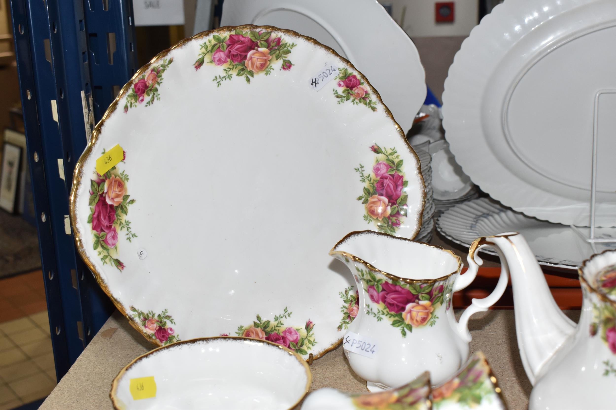 A SMALL COLLECTION OF ROYAL ALBERT 'OLD COUNTRY ROSES' TEAWARE, comprising of, a cake plate, teapot, milk creamer, sugar bowl, six biscuit plates, seven cups, six saucers, (one cup the handle is broken off but present), (Condition Report: in ok condition signs of light use, would benefit from a clean), (23)